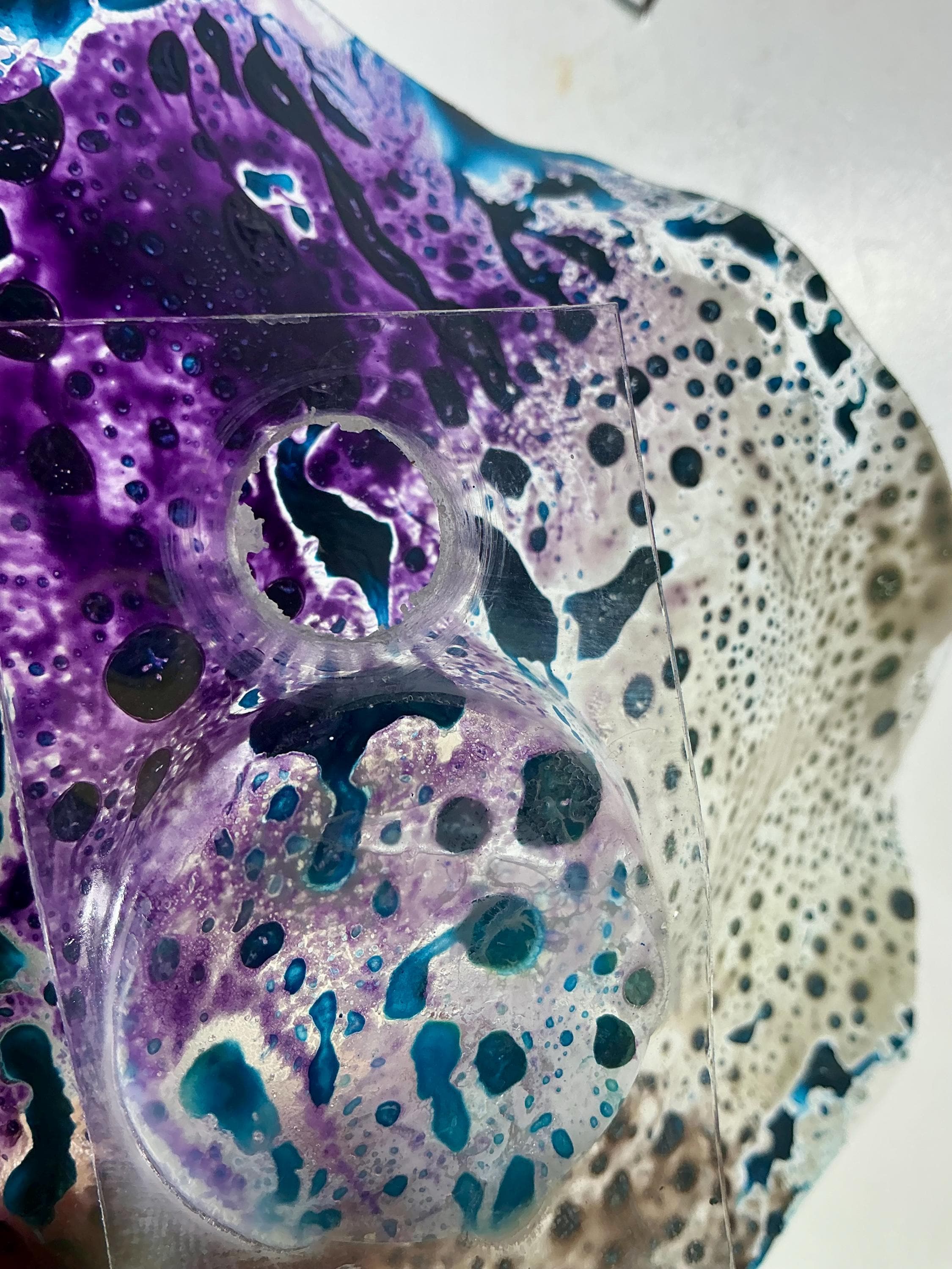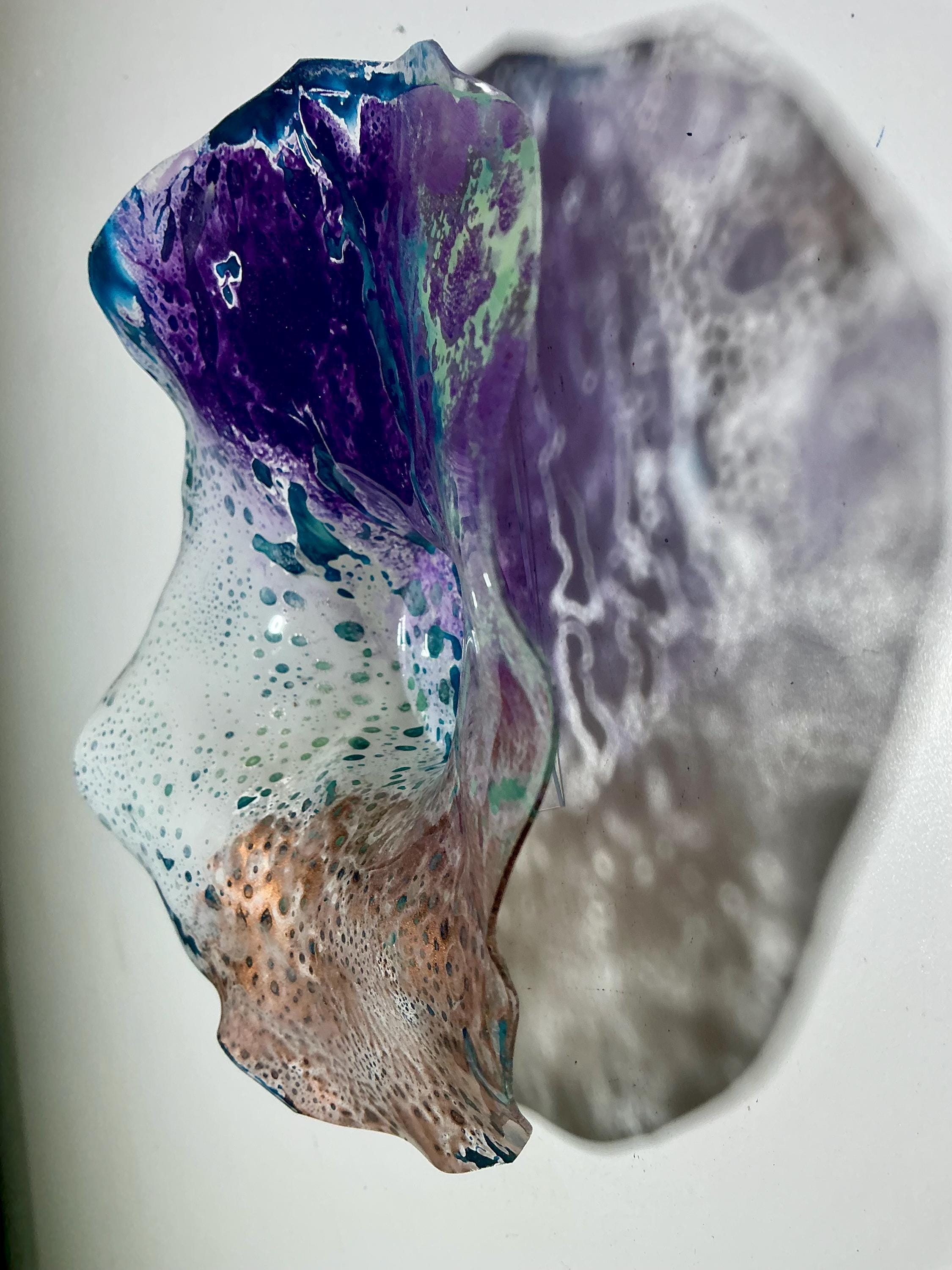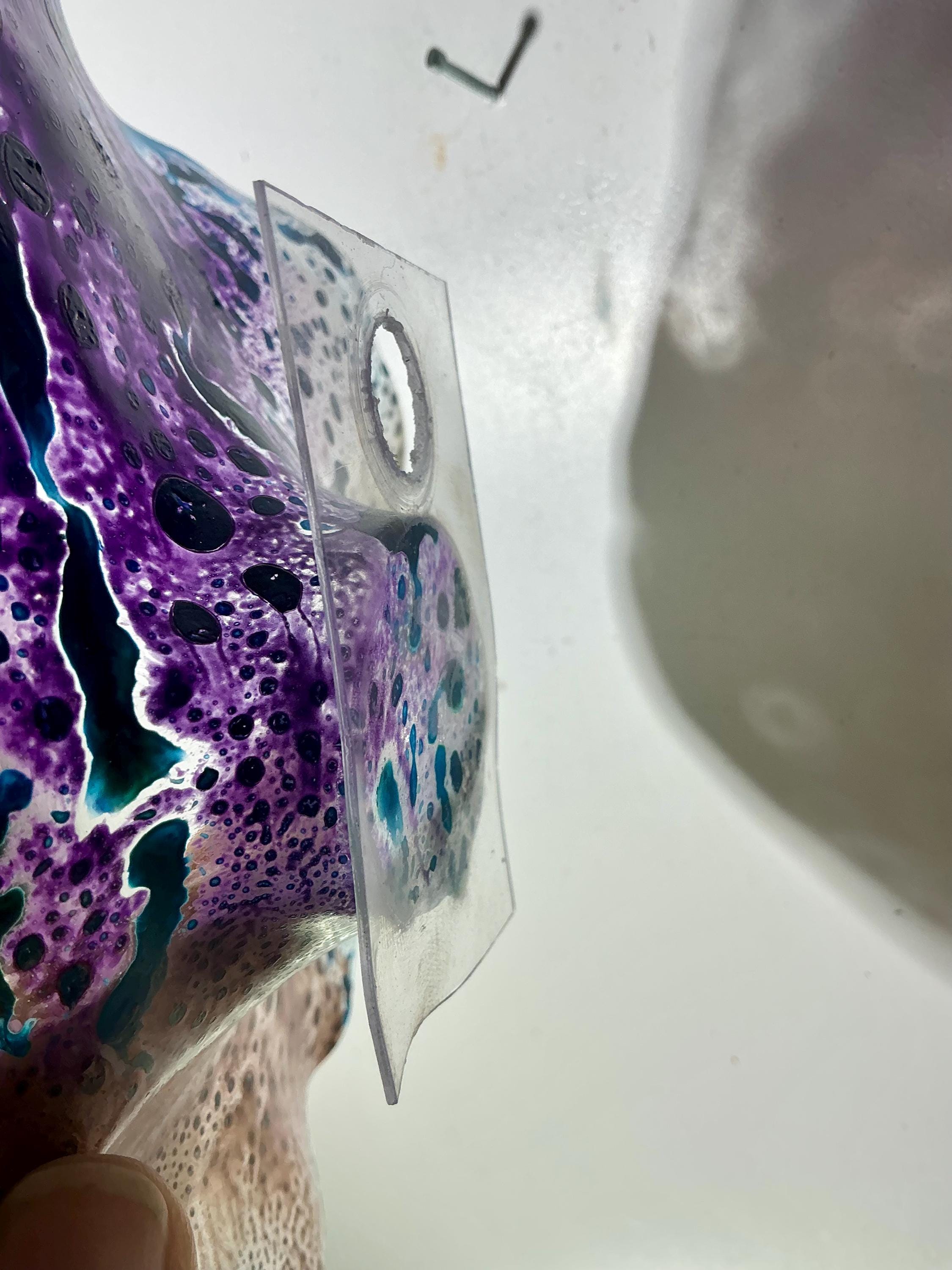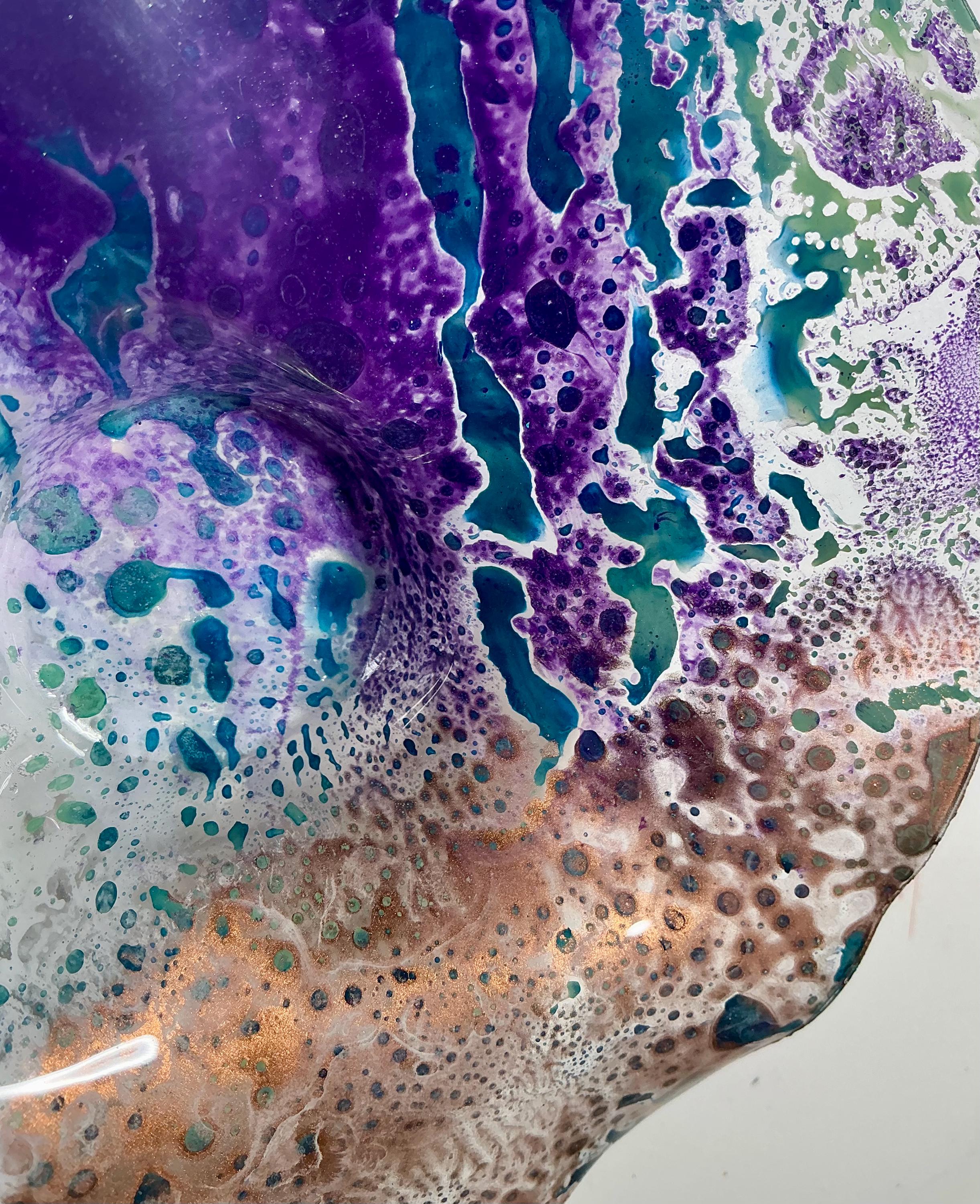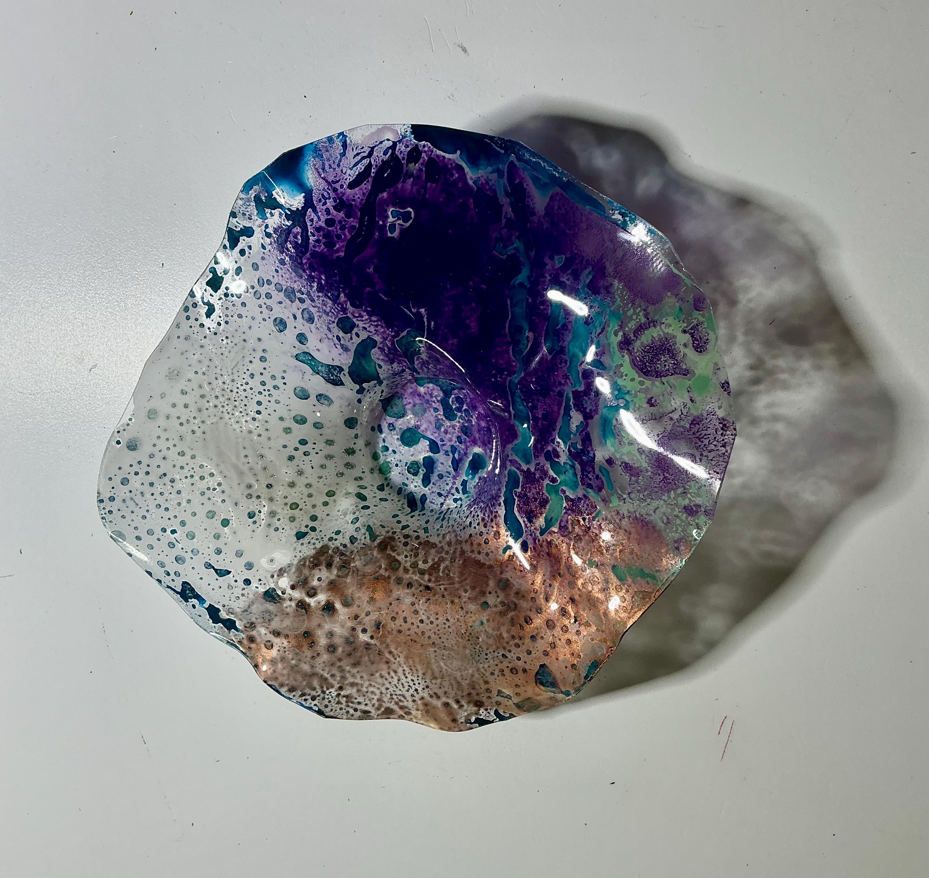 5 Inch Wall Hanging: Handmade sustainable plastic copper, purple & white with Glass Effect