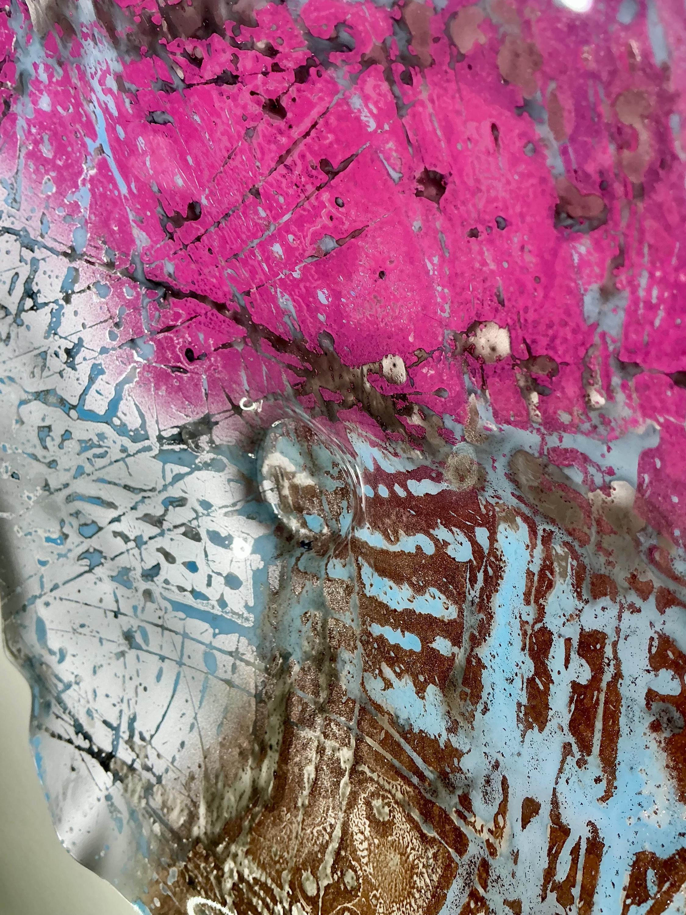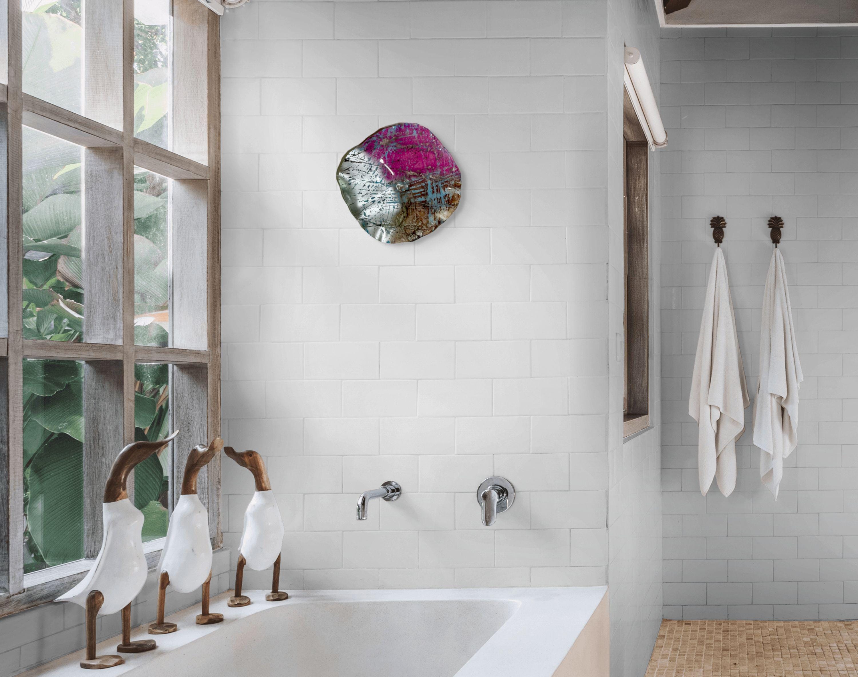 Elevate your home decor with this stunning pink, brown, and silver medium-sized wallflower! Handmade from recycled plastic, this one-of-a-kind piece mimics the elegance of glass while promoting sustainability. Perfect as wall art, it adds a unique touch to any space. Each handcrafted flower is a true masterpiece, ensuring you won't find another like it. Transform your walls and showcase your eco-friendly style with this beautiful wallflower today!