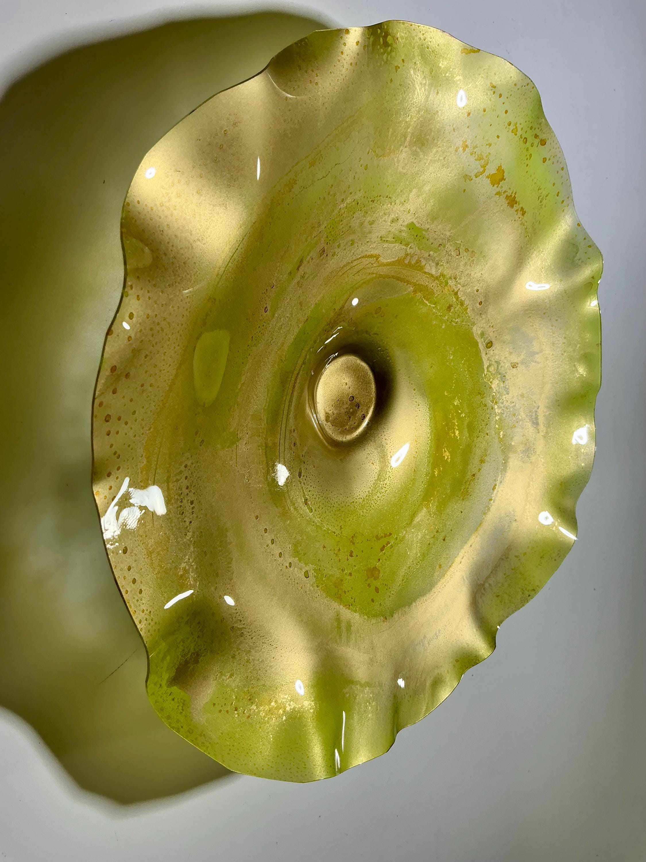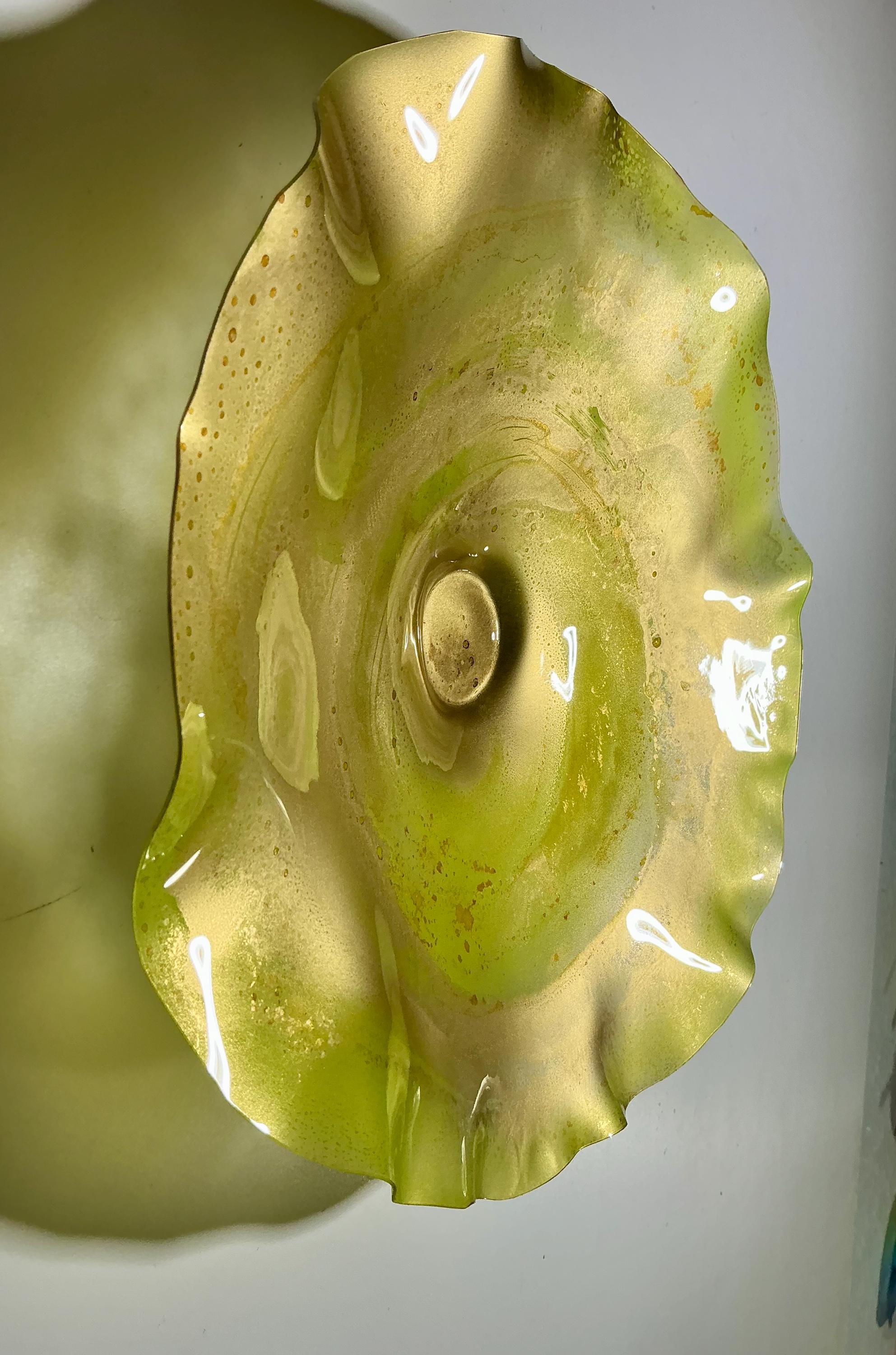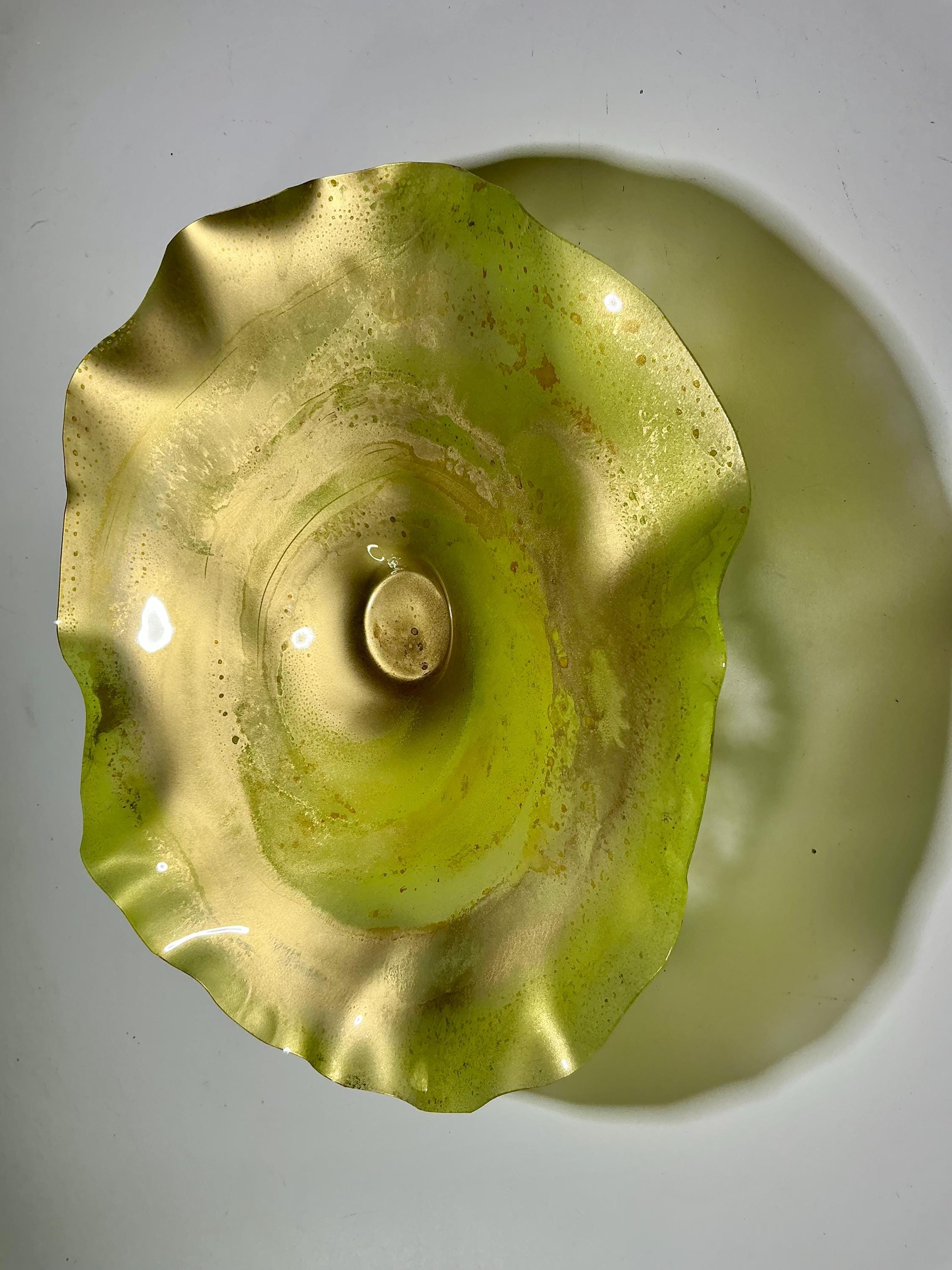 Recycled Water Bottle Wall Flower: Chartreuse and gold Eco Art-glass like look
