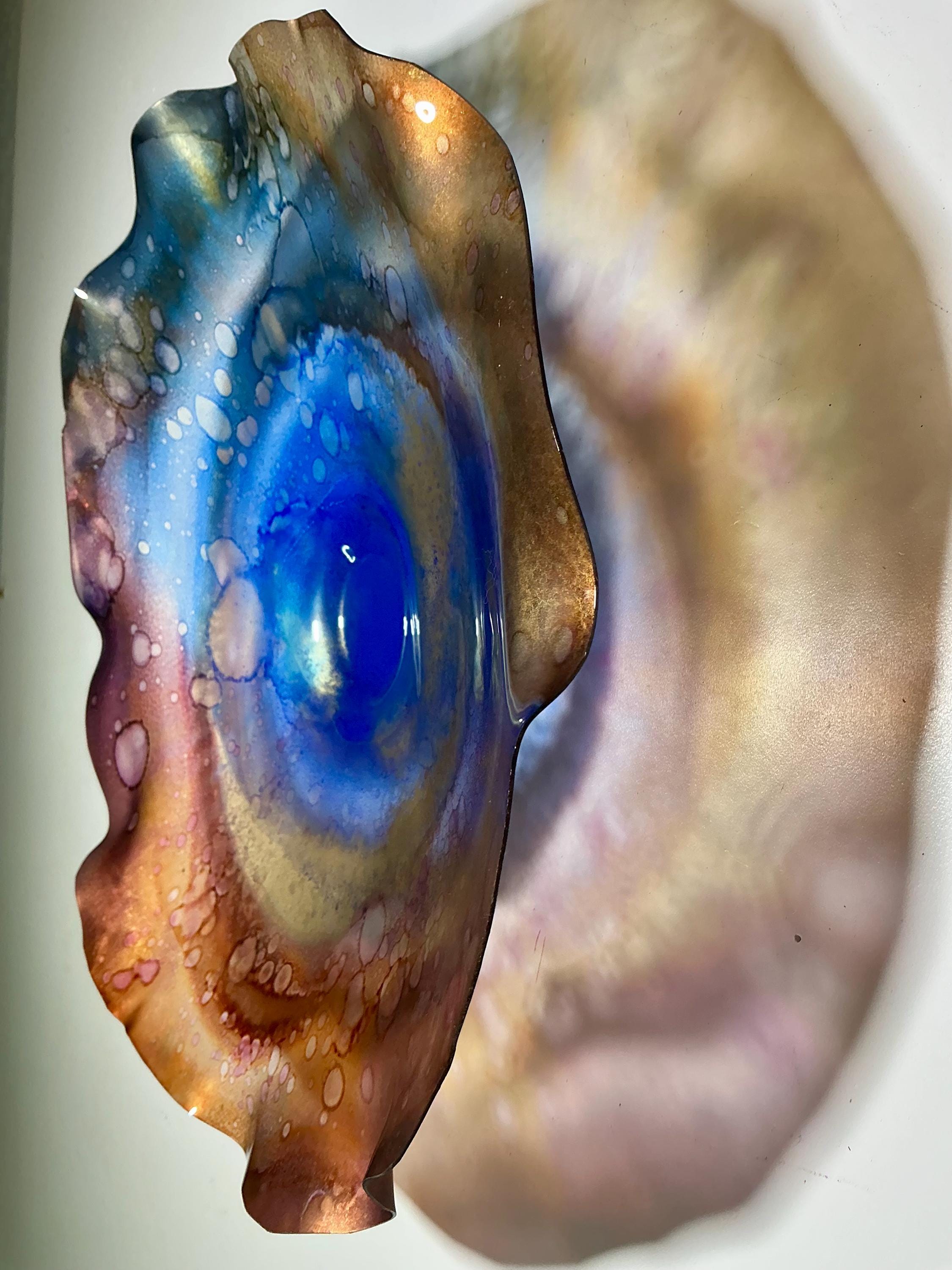 Discover our beautifully handcrafted wallflower, a stunning piece made from sustainable recycled plastic in a striking blue, copper, and gold color scheme. This gorgeous 12-inch decor effortlessly mimics the look of glass, adding a touch of elegance to any space. Perfect for both commercial and personal settings, it’s an eco-friendly choice that combines artistry with sustainability. Elevate your interior decor with this unique wallflower, designed to captivate and inspire. Transform your walls today!