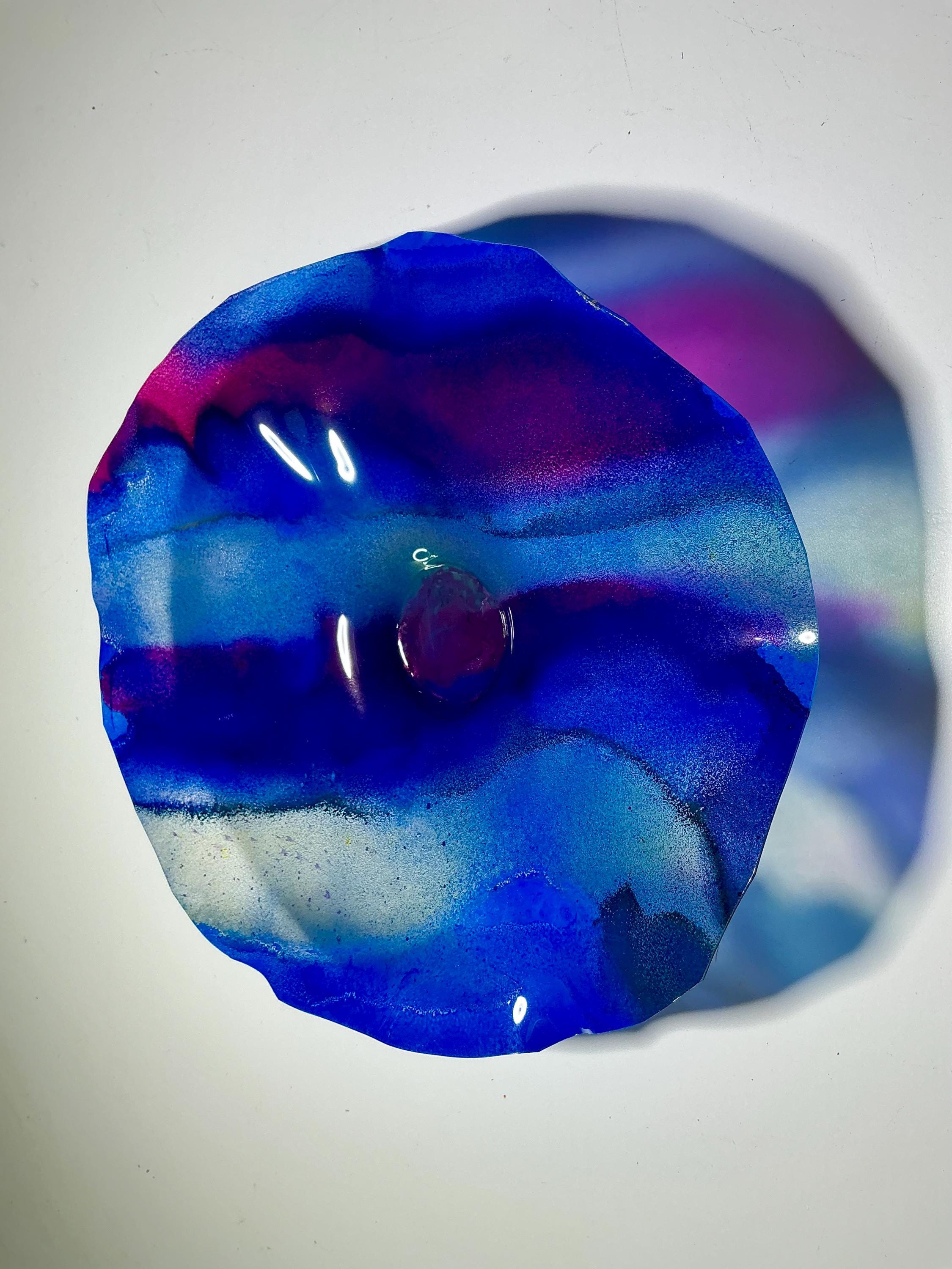 Unique Small Wall Hanging Art 9” - Recycled Plastic Platter in blue, burgundy and gold- looks like glass