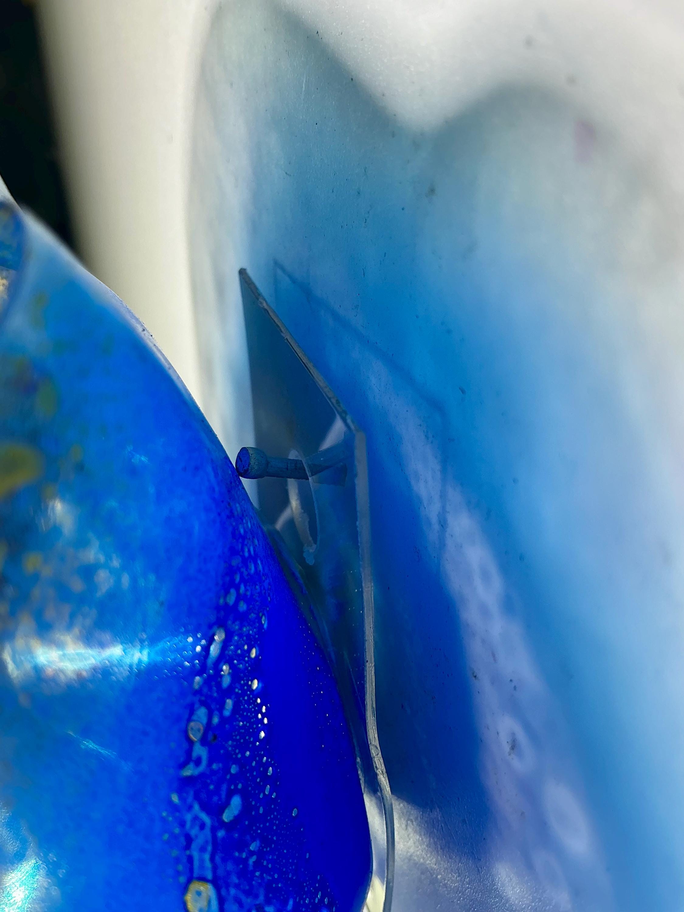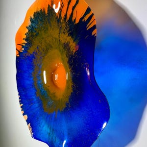 Each collectible piece is unique, no two are alike. This permanent, colorful, eye catching art looks and feels like glass. It shimmers in the light resembling water. They are very DURABLE AND LIGHTWEIGHT. This flower is easy to hang all weather and UV resistant. Great for indoor or outdoor decorating.