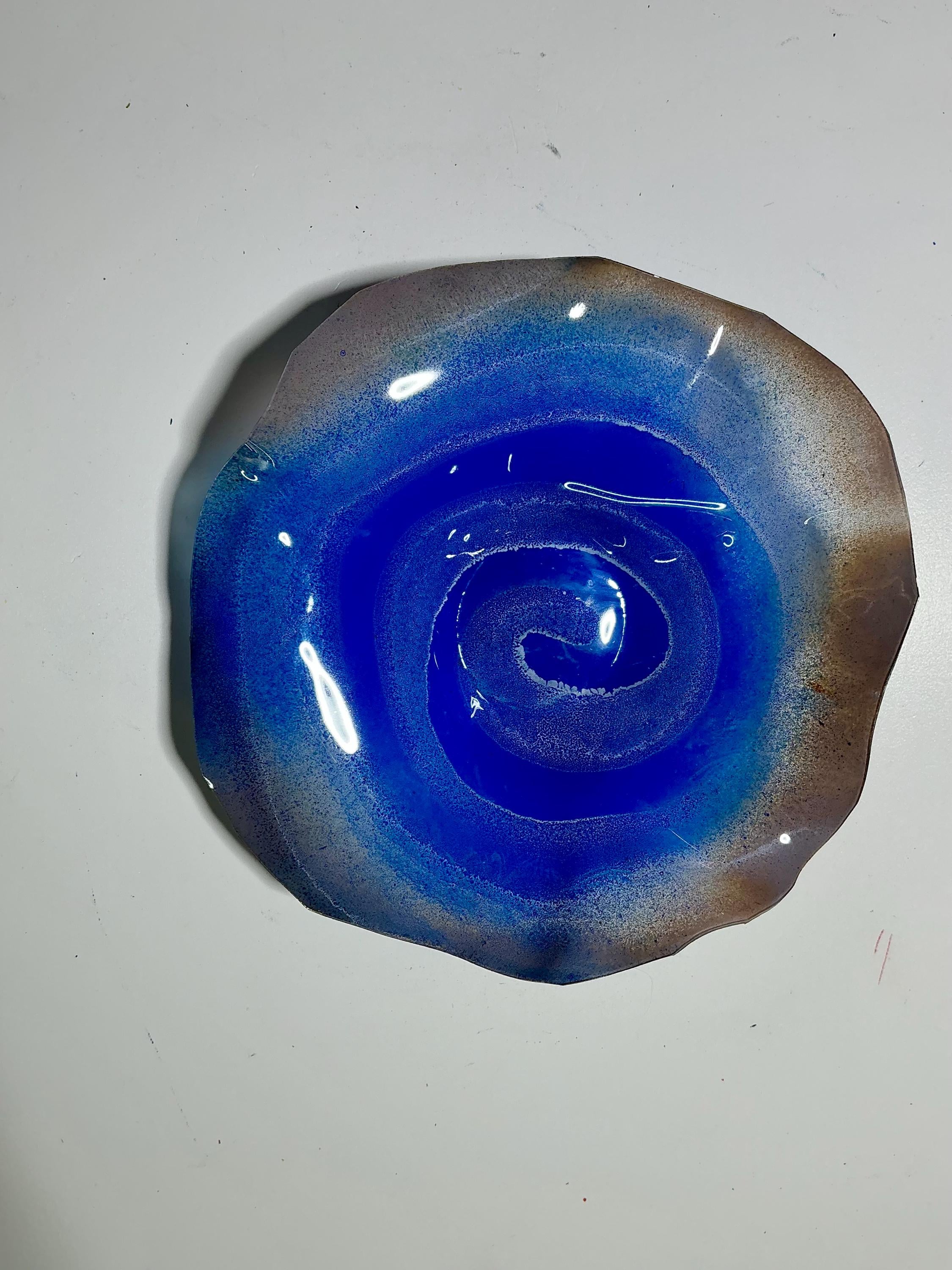 Up cycled plastic wall art blue/brown Handmade round Wall flower hanging home decor x-small 5” looks like glass/outdoor lanai art