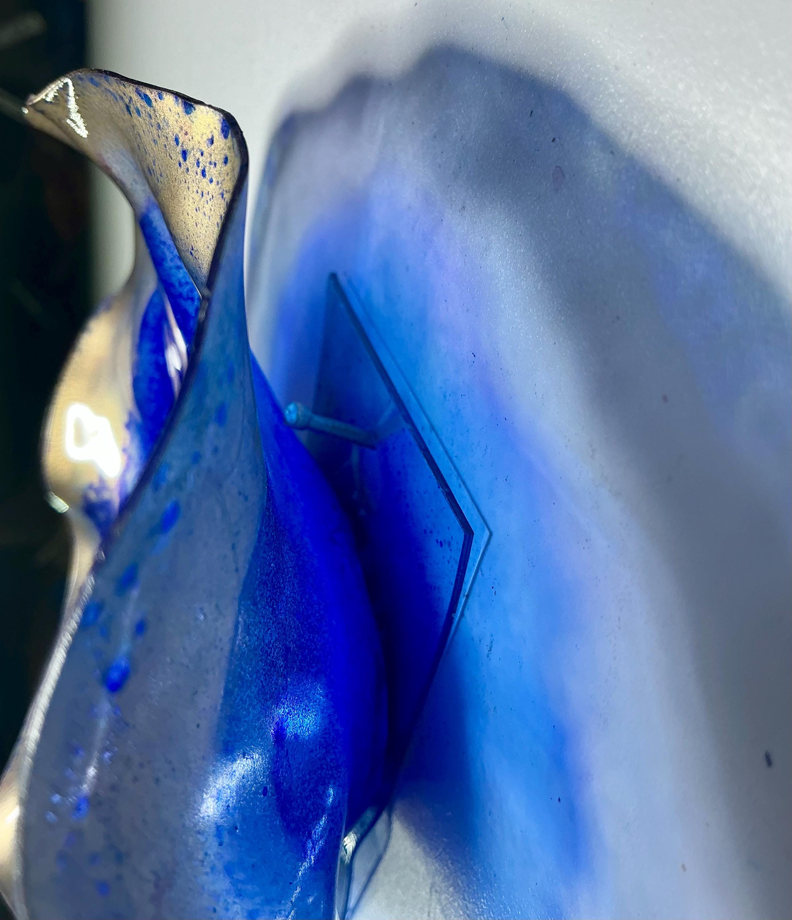 Each collectible piece is unique, no two are alike. This permanent, colorful, eye catching art looks and feels like glass. It shimmers in the light resembling water. They are very DURABLE AND LIGHTWEIGHT. These flowers are easy to hang, are all weather and UV resistant. Great for indoor or outdoor decorating.