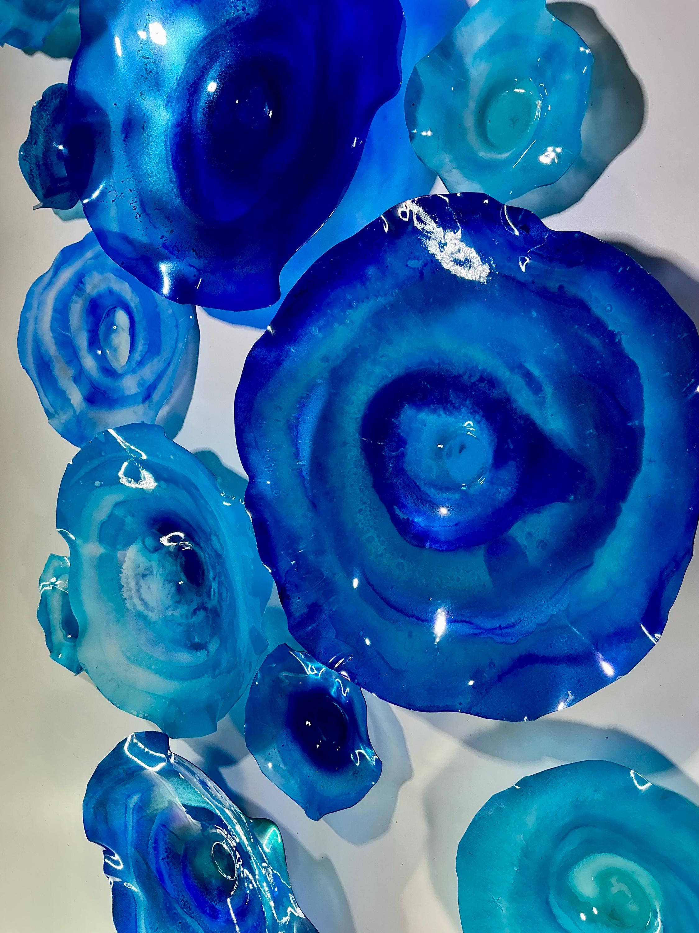 Our wall flowers are made from sustainable recycled PET as in a water bottle. Each piece contains at least 50% recycled polyethylene terphalate (rPET)