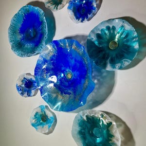 From the wall, they look like glass. The bonuses are that these flowers are light, unbreakable, environmentally friendly, easy to hang, and have no damage to the wall due to drilling for would-be-heavy traditional glass flowers.