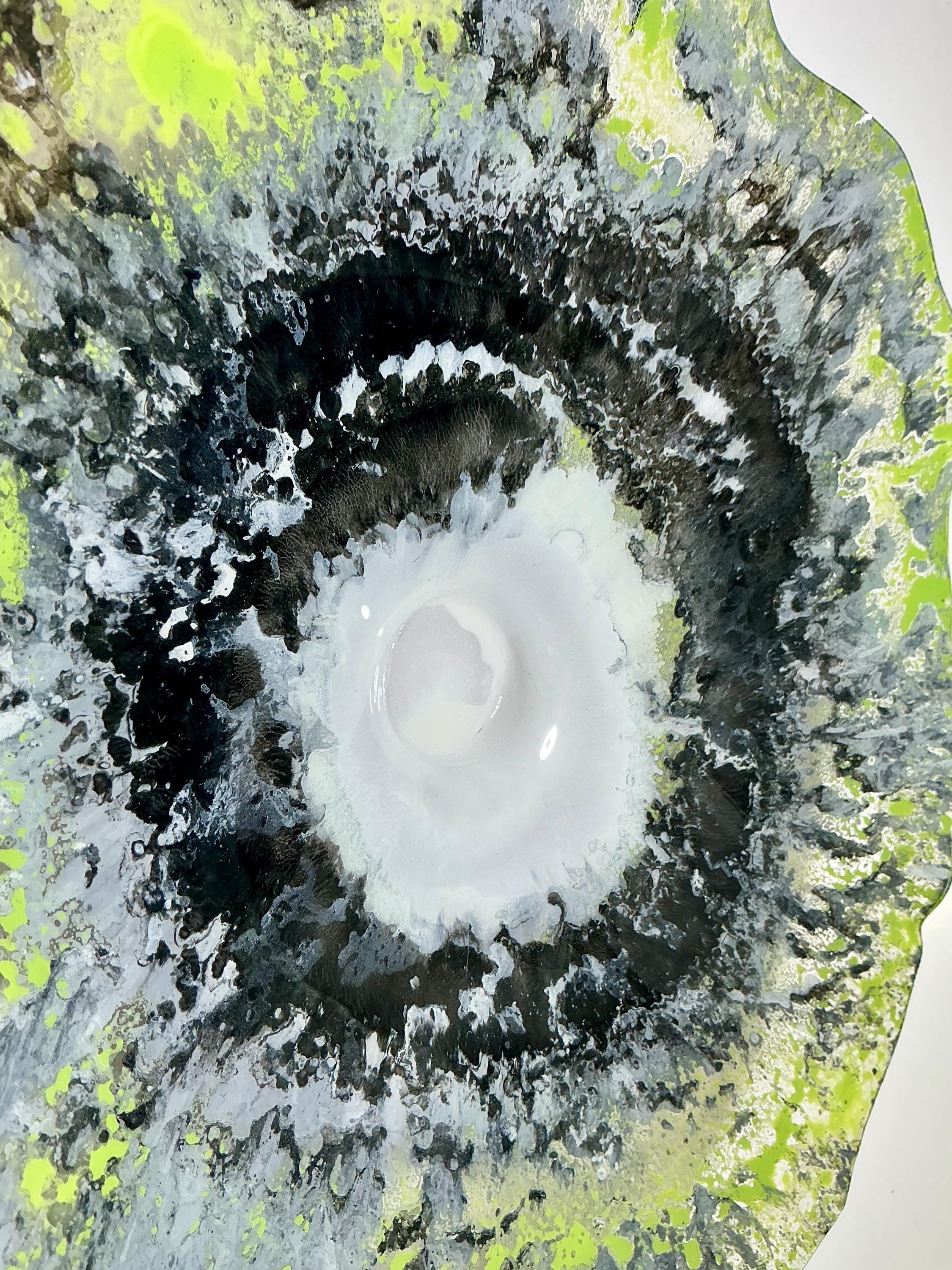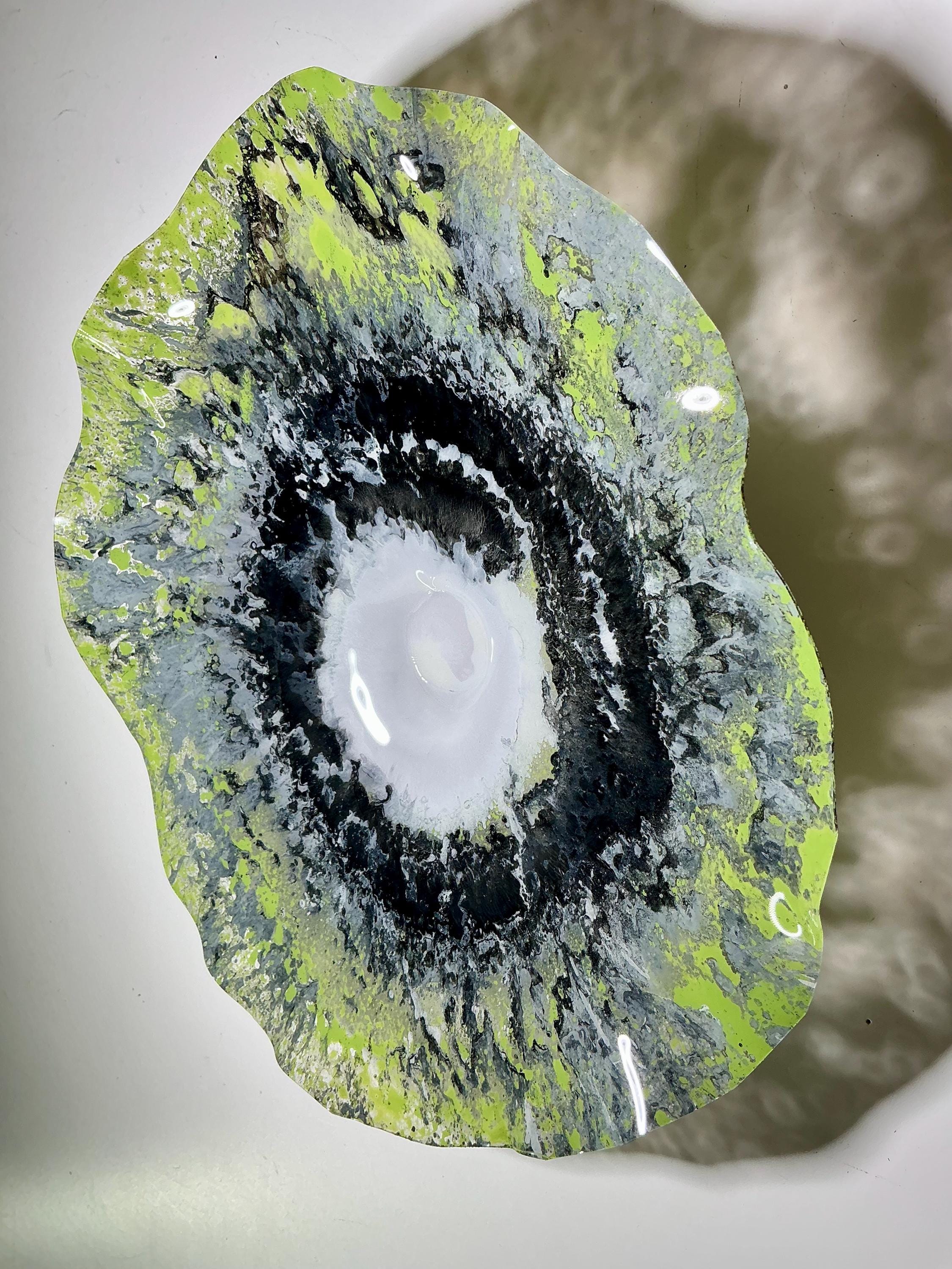 Unique 12” Green, Gray & White Wall Hanging Platter - Handmade Eco Art from Recycled Plastic