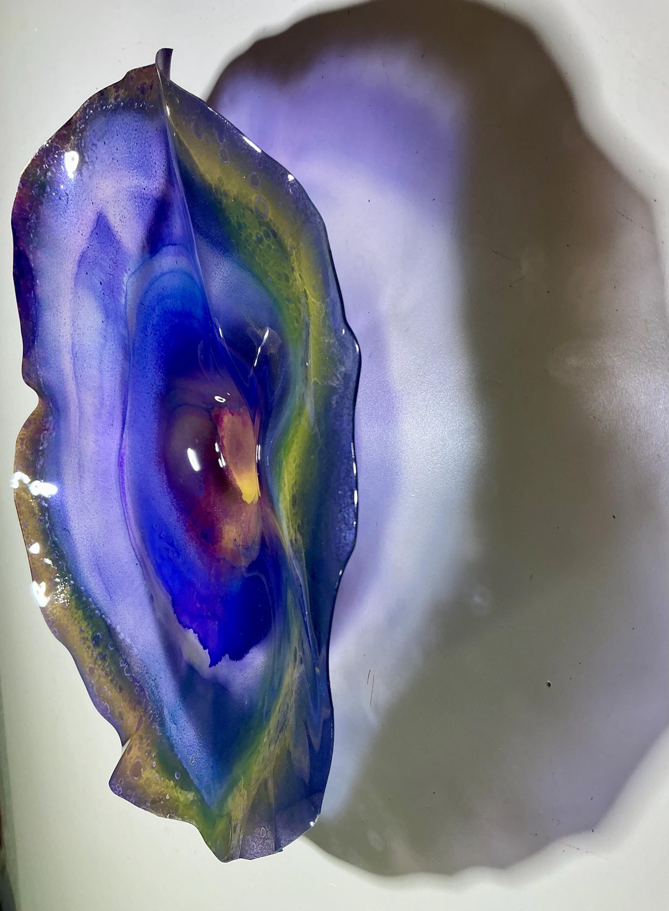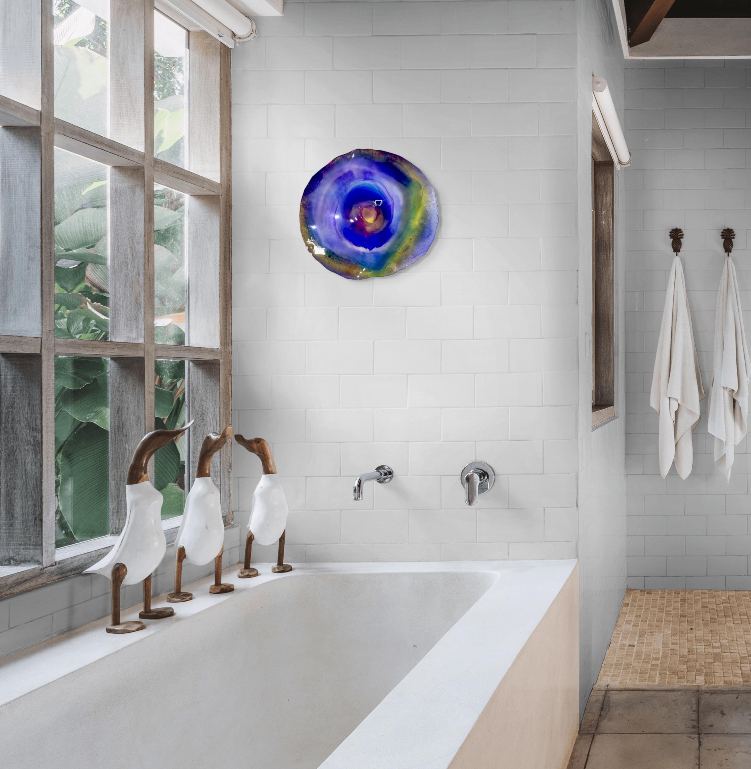 Elevate your space with our stunning periwinkle with greens and yellow Wall Hanging Platter, a unique piece of home decor designed with eco-consciousness in mind! Measuring 12 inches, this handmade art from CoralREEFlections is crafted from recycled plastic and mimics the elegance of glass, all while promoting sustainability. Perfect for adding a touch of eco art to any room, this wall hanging is a conversation starter and a beautiful addition to your decor collection. Embrace art that cares for the planet!