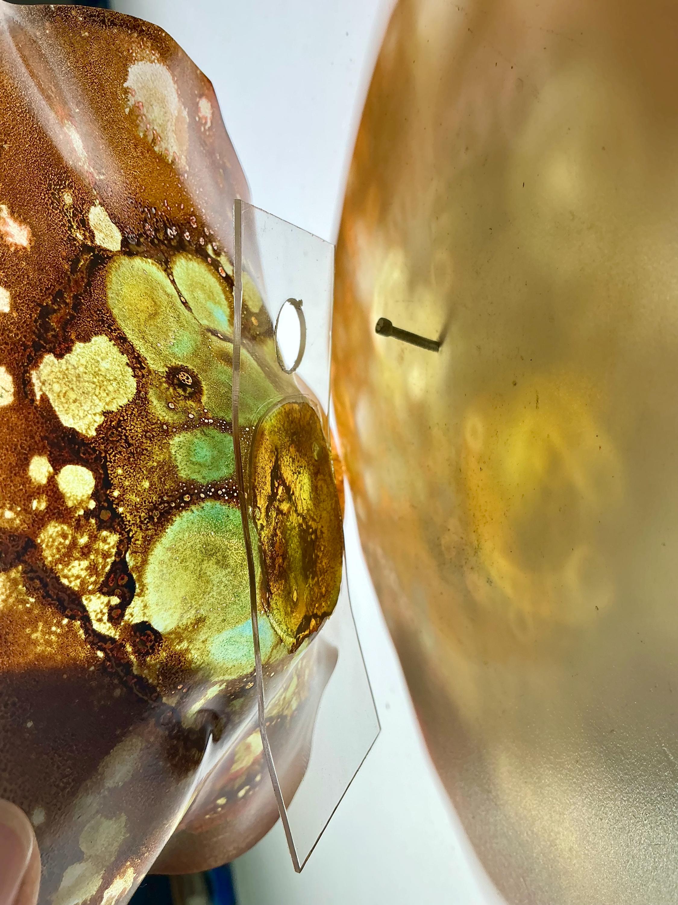 Each collectible piece is unique, no two are alike. This permanent, colorful, eye catching art looks and feels like glass. It shimmers in the light resembling water. They are very DURABLE AND LIGHTWEIGHT. This flower is easy to hang all weather and UV resistant. Great for indoor or outdoor decorating.