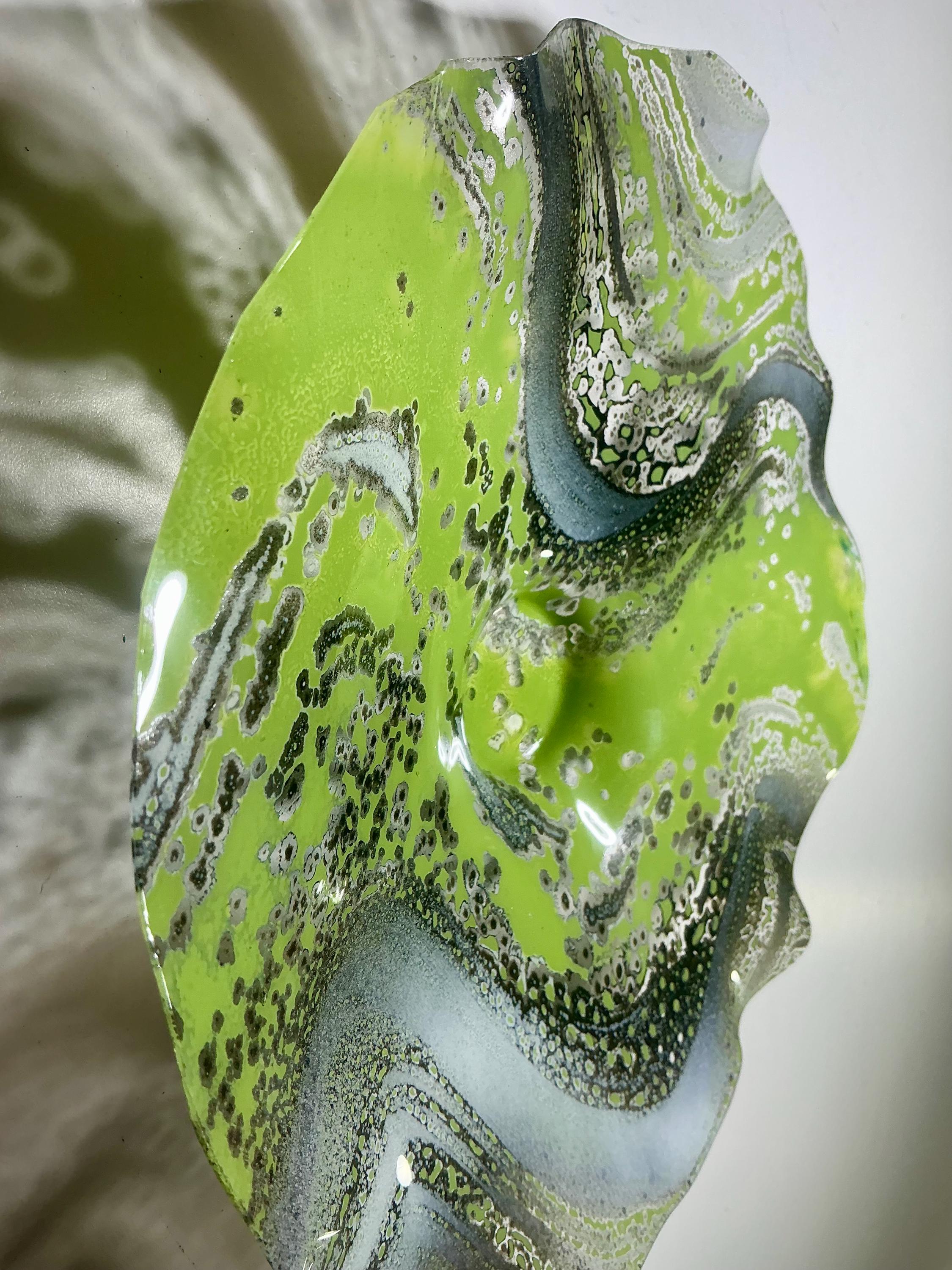 Add a touch of elegance to your space with this small original wall flower, showcasing a beautifully classic blend of green with gray and white. Handcrafted from upcycled plastic, this unique piece mimics the look of glass while promoting eco-friendly artistry. Perfect for home or office decor, it effortlessly enhances any wall. Bring nature-inspired beauty into your surroundings with this stunning art piece that showcases your commitment to sustainable design. Embrace creativity and style today!