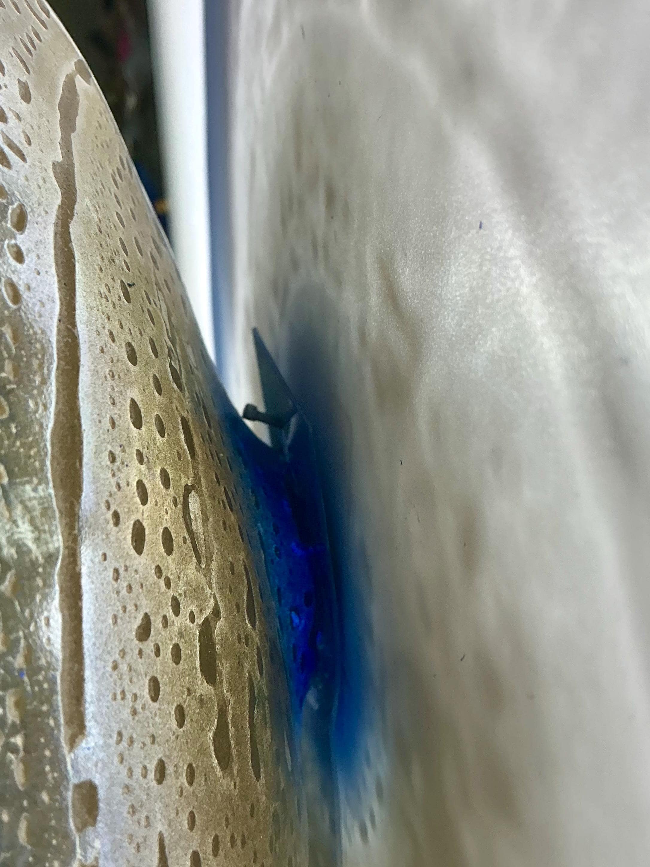 Stunningly beautiful beach colors. Blend of blue with gold and white wall flower sculpture. This eye popper will add light and joy to any space. The light passes thru casting colorful effects on the hanging surface.