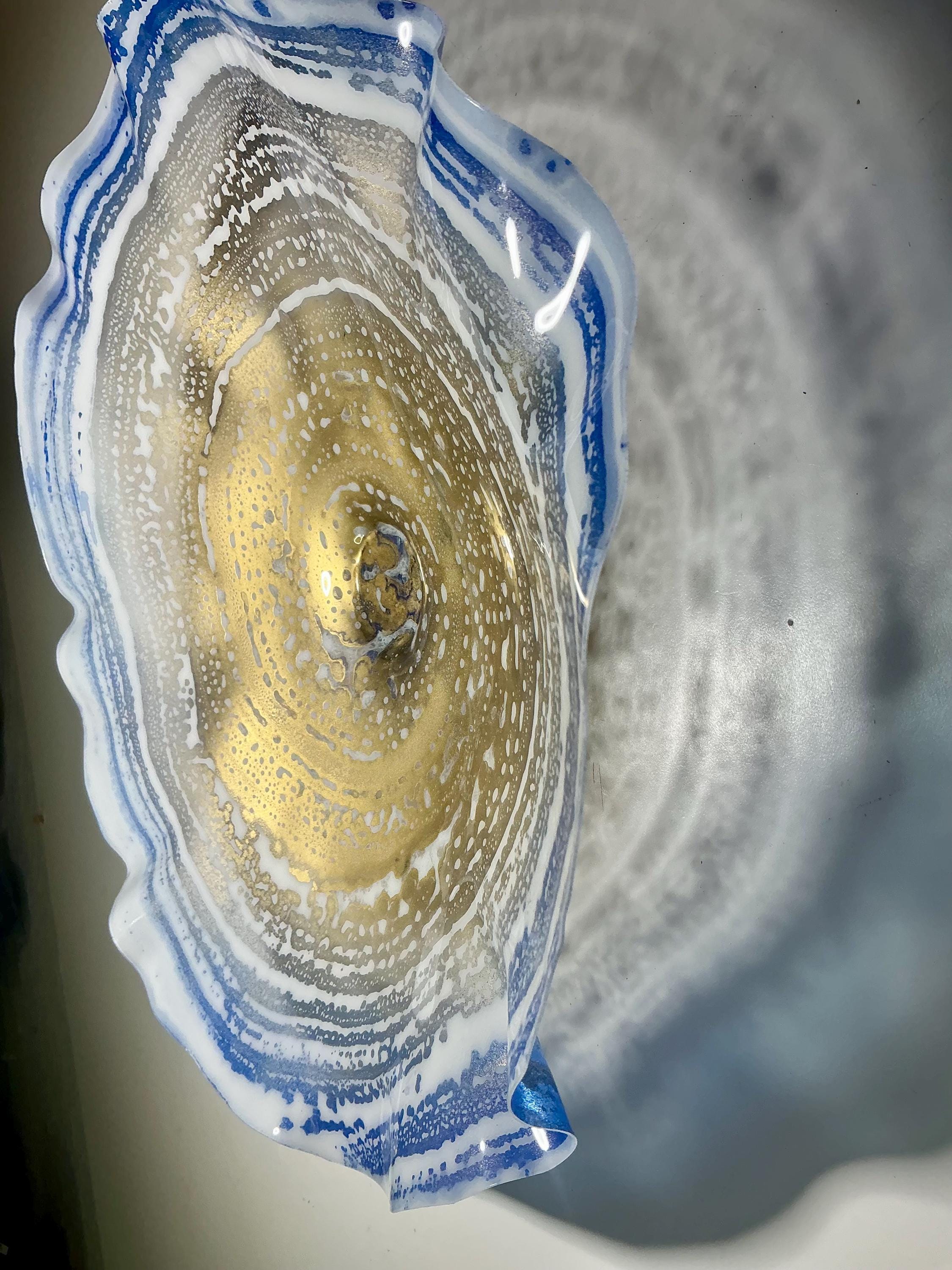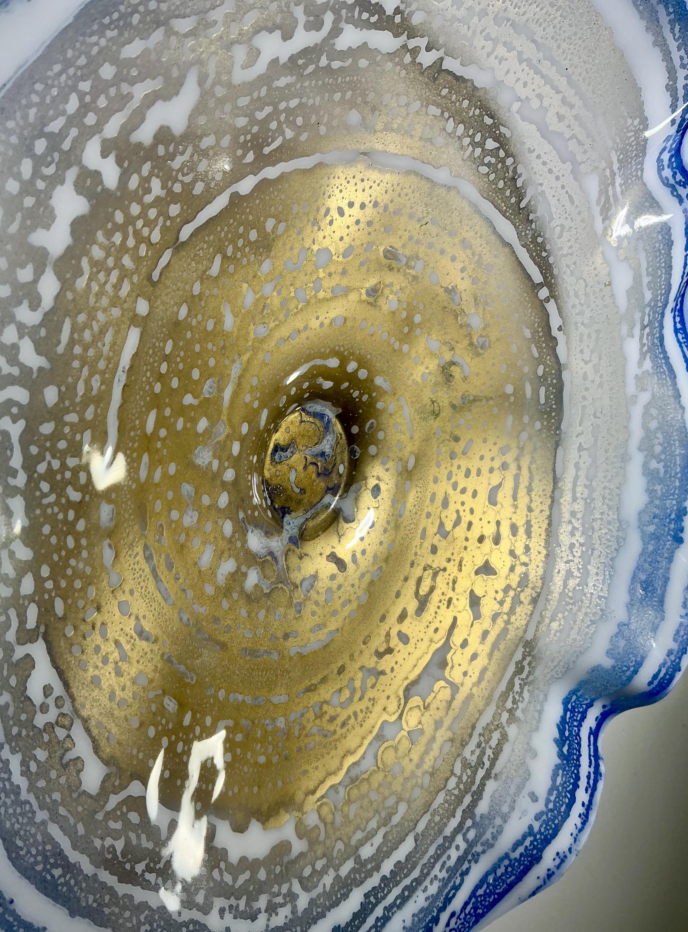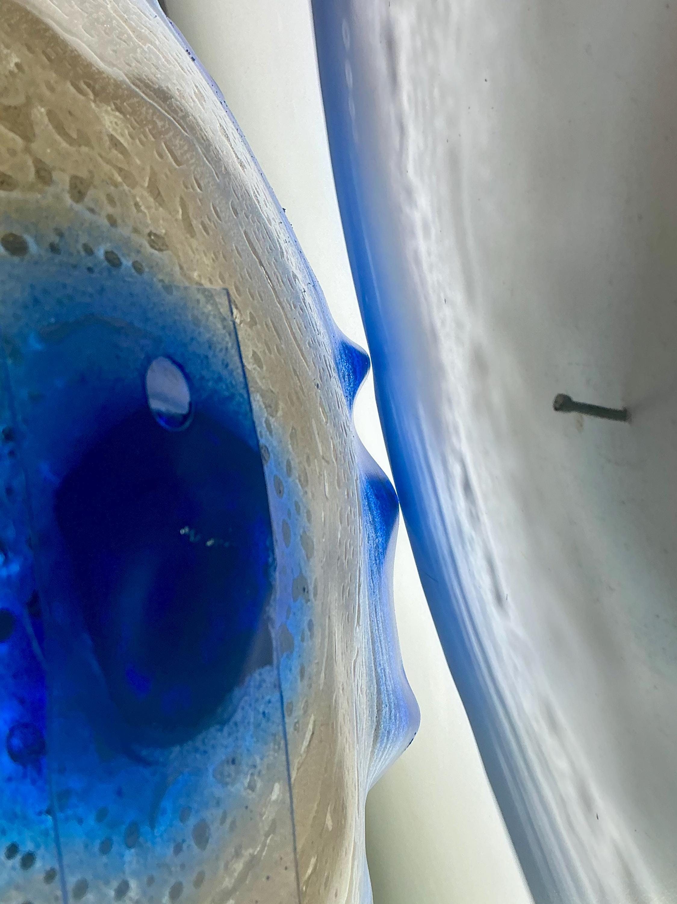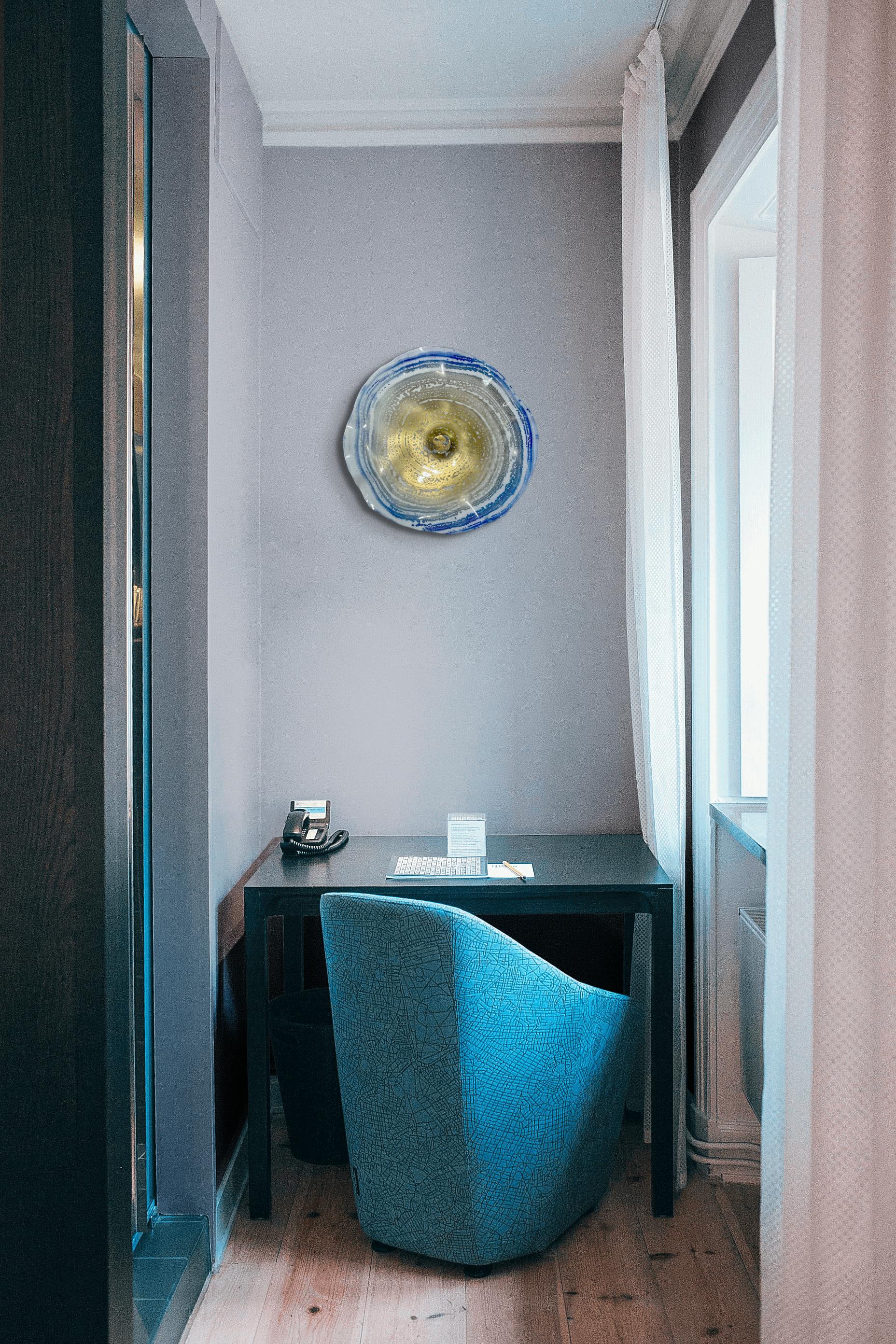 Recycled Plastic Wall Flower Sculpture: Blue, gold and white Beach Decor looks like glass