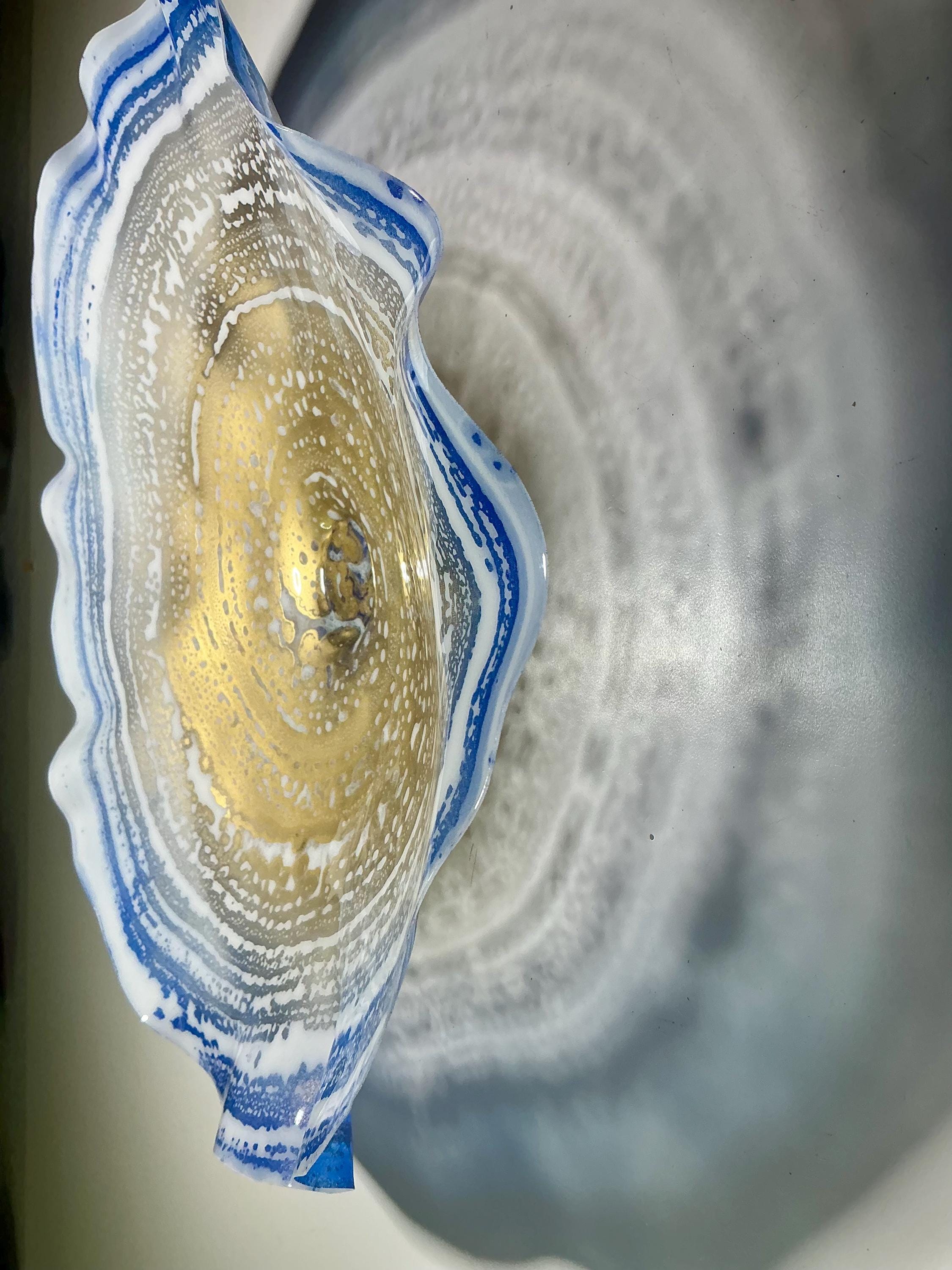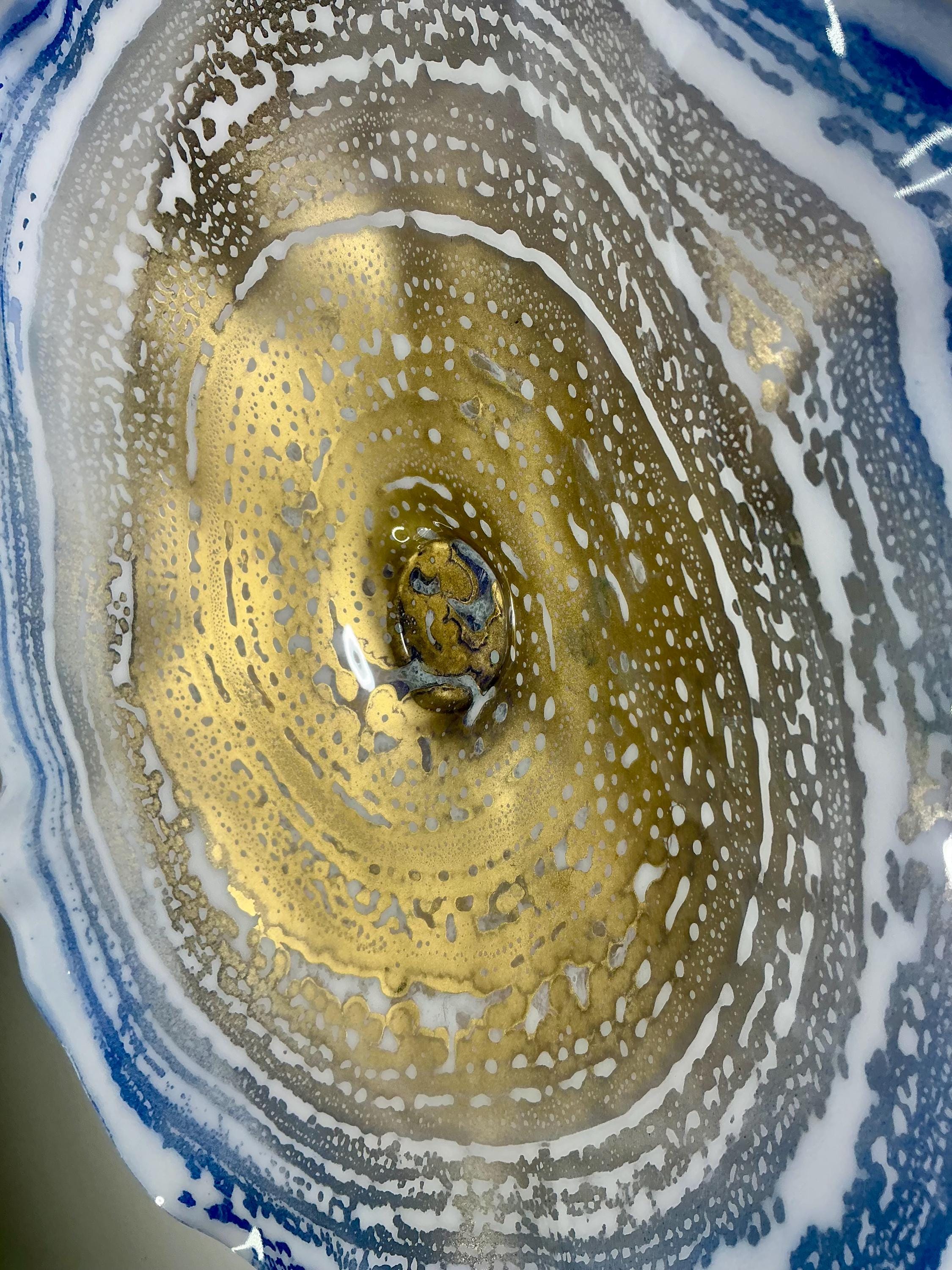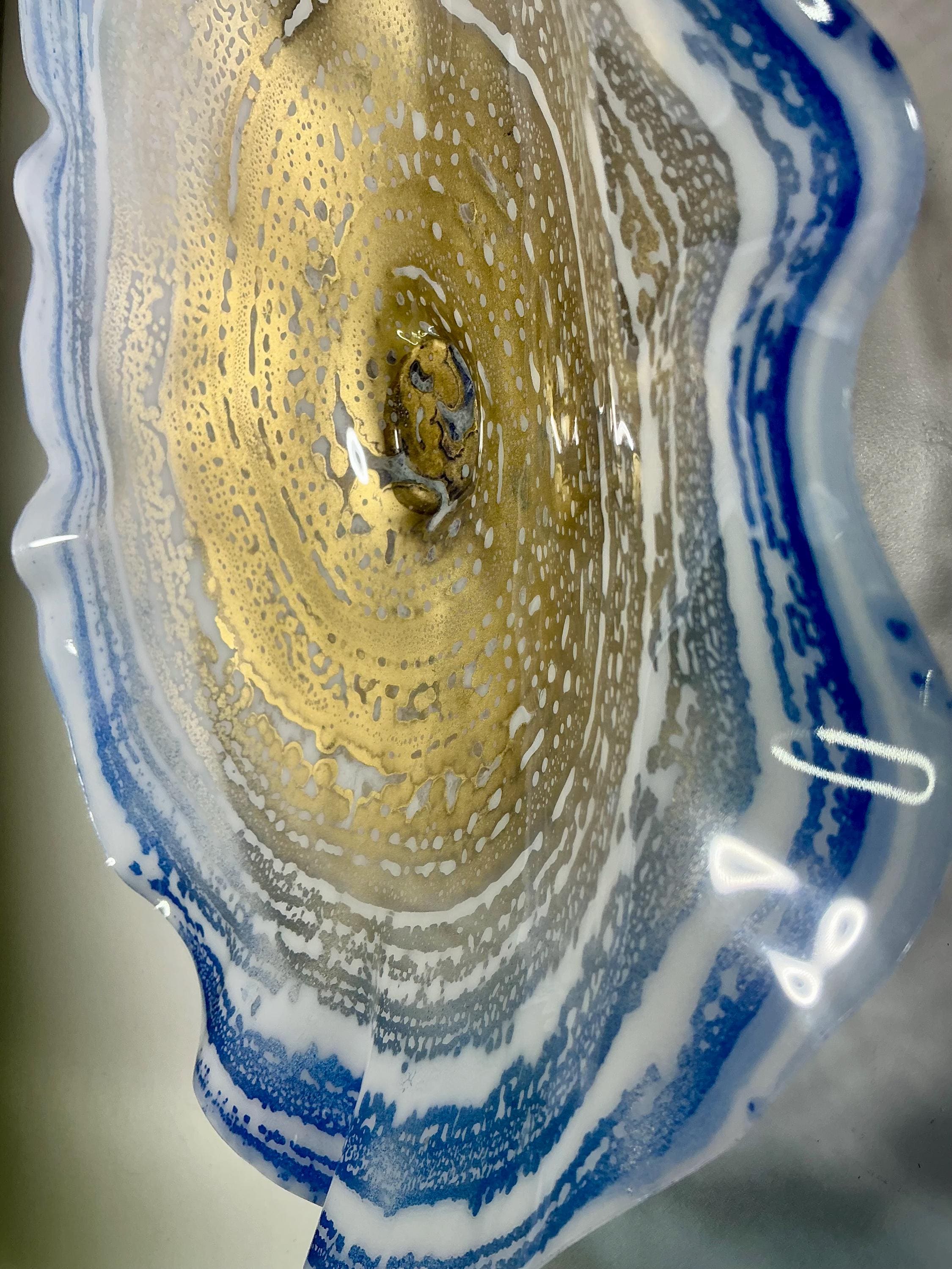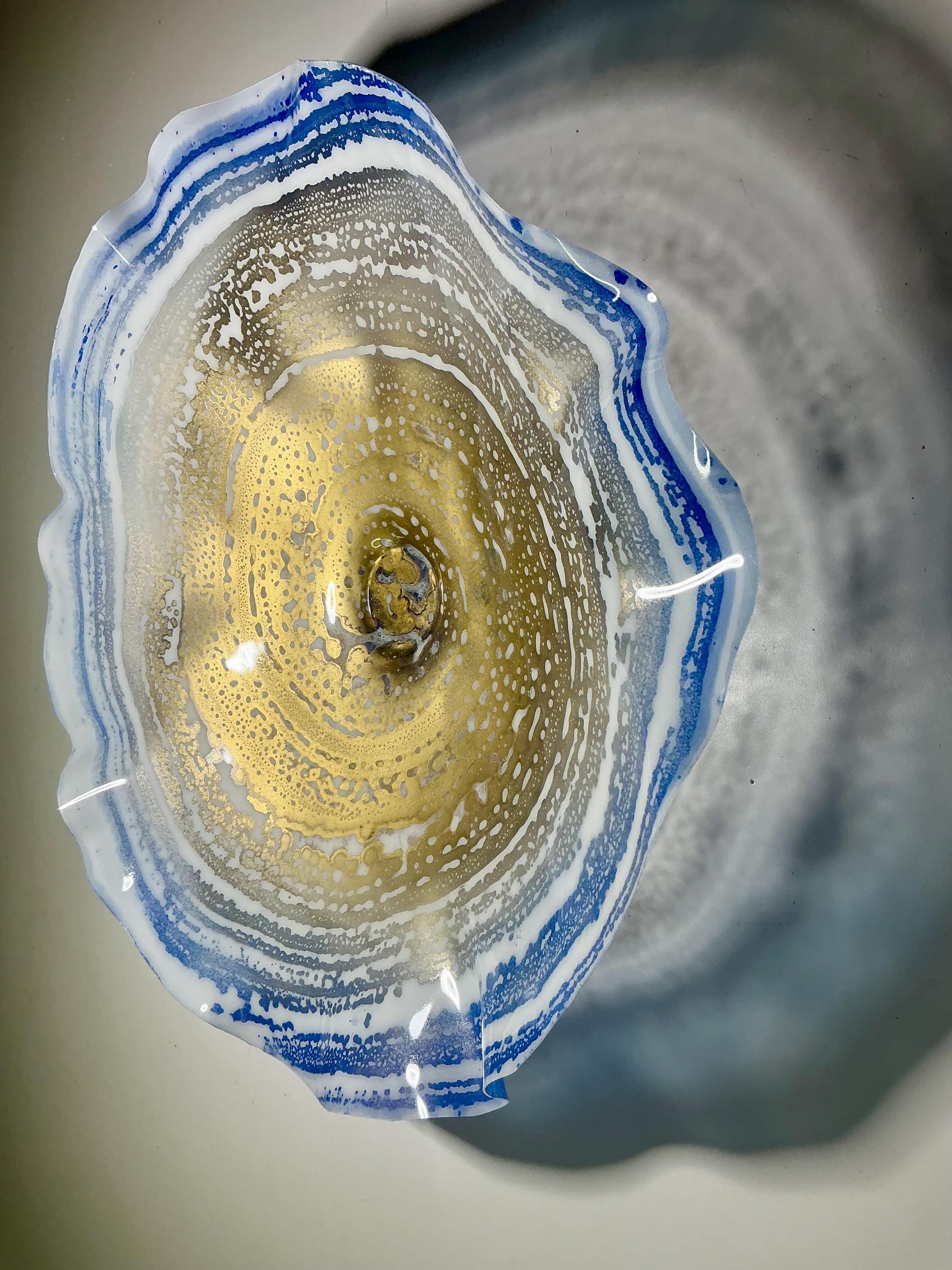 Recycled Plastic Wall Flower Sculpture: Blue, gold and white Beach Decor looks like glass