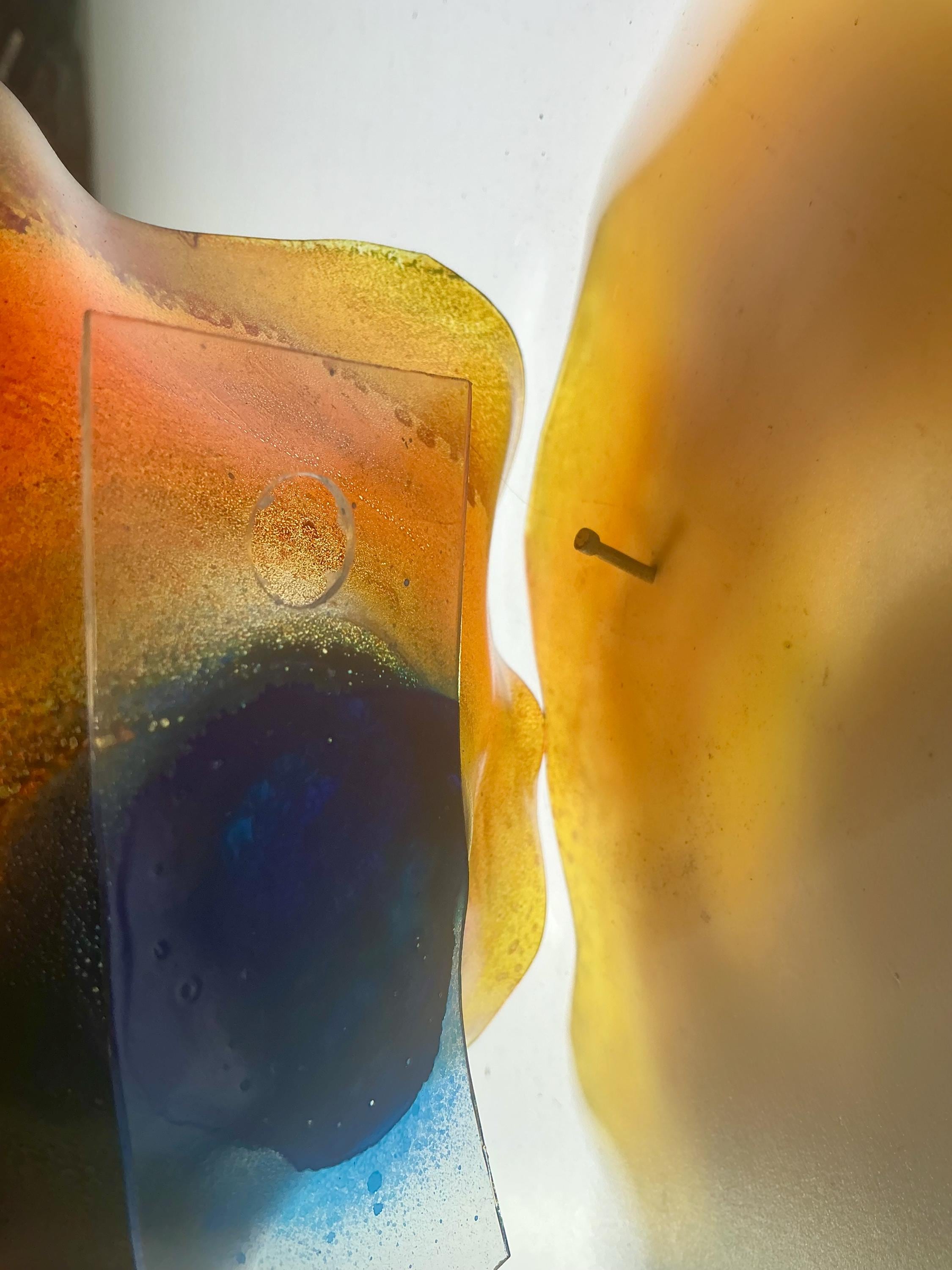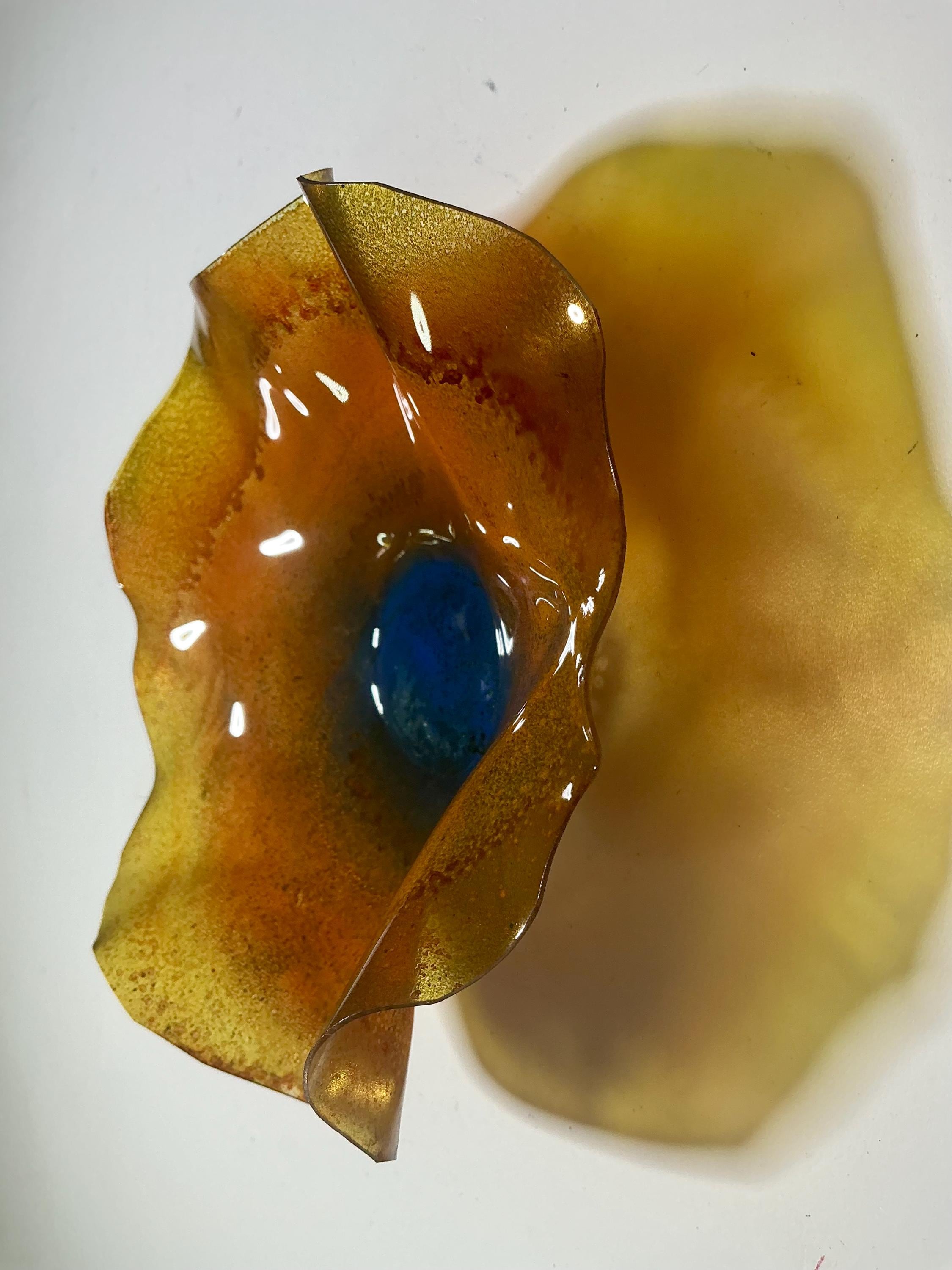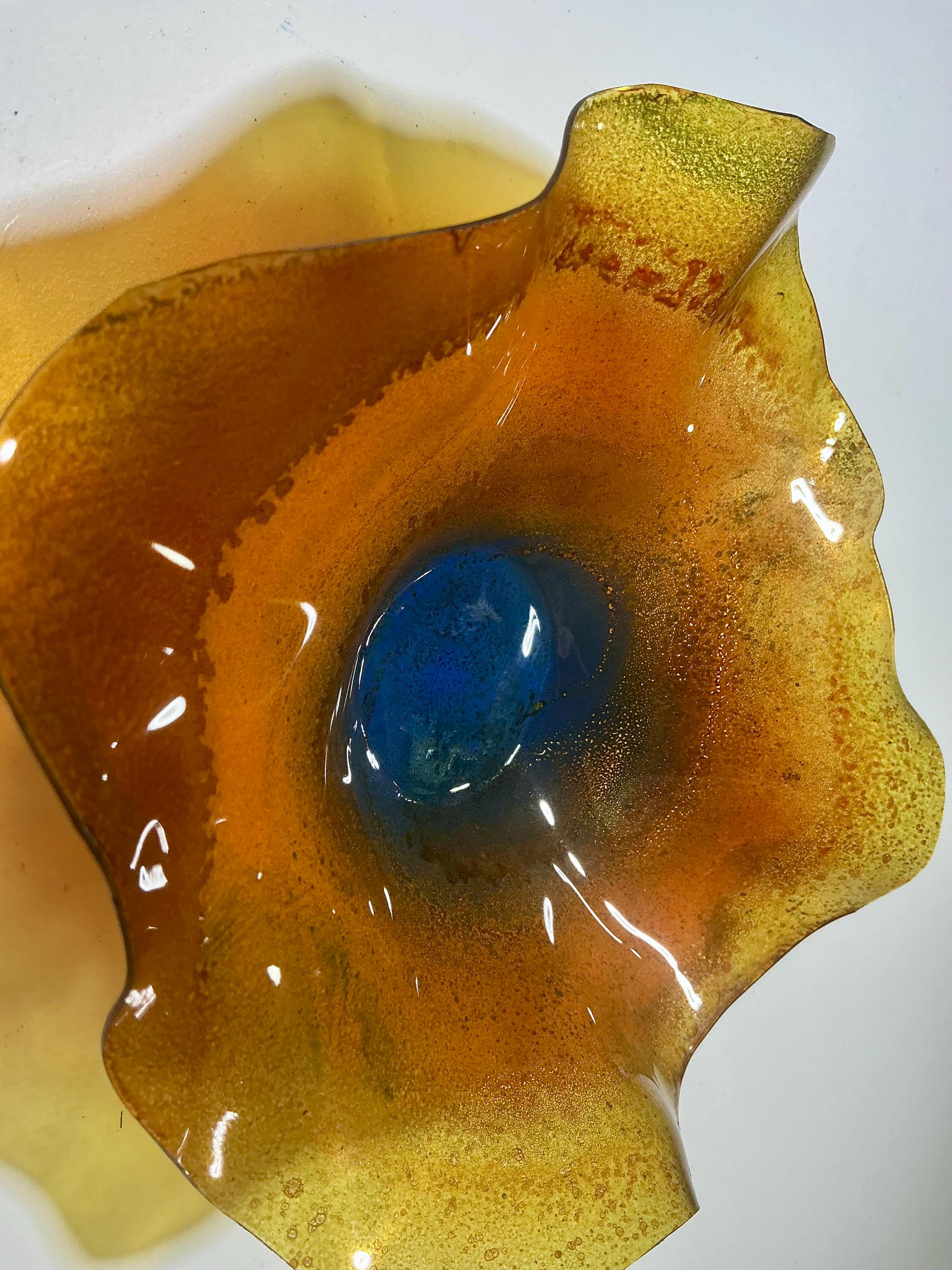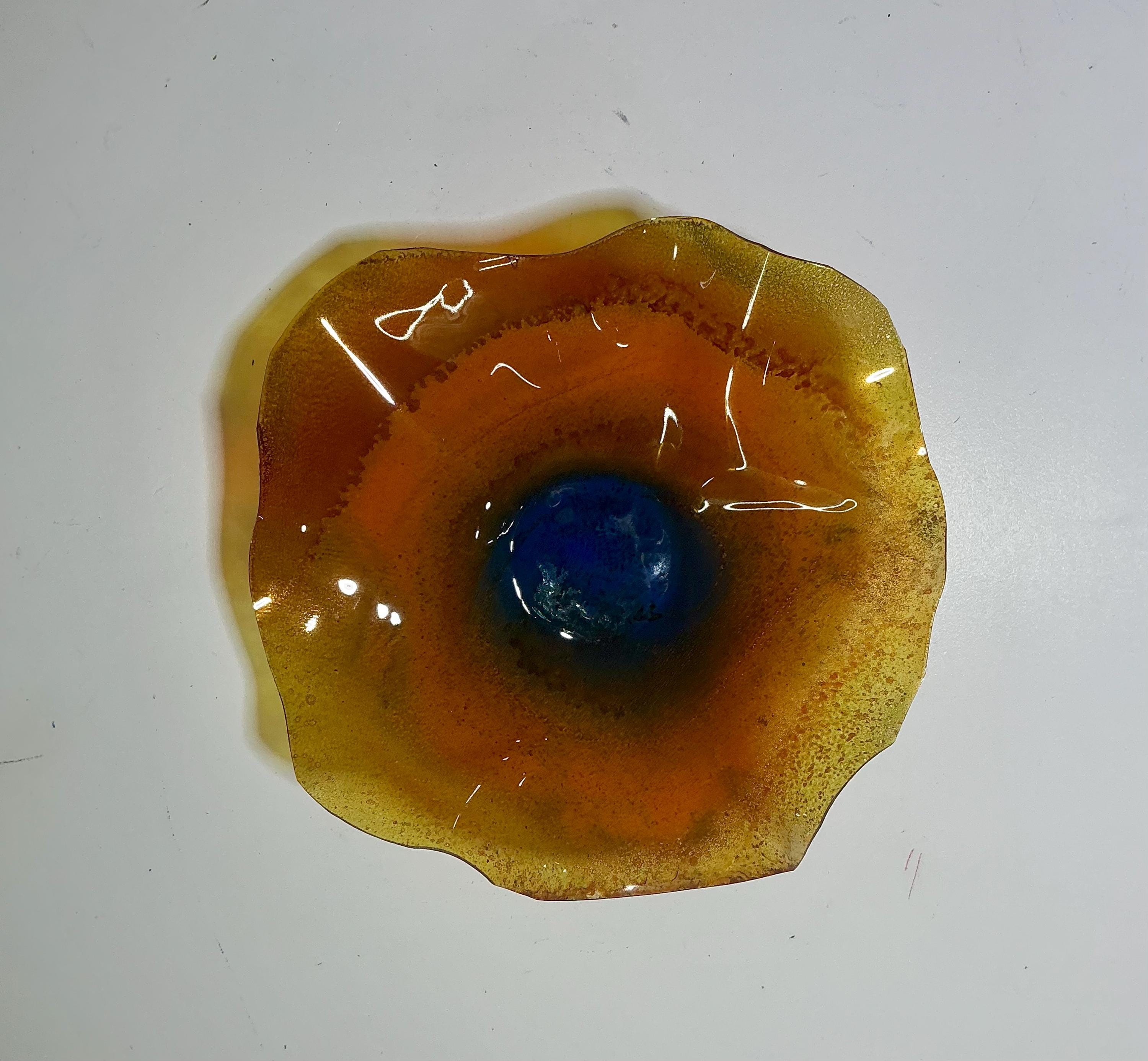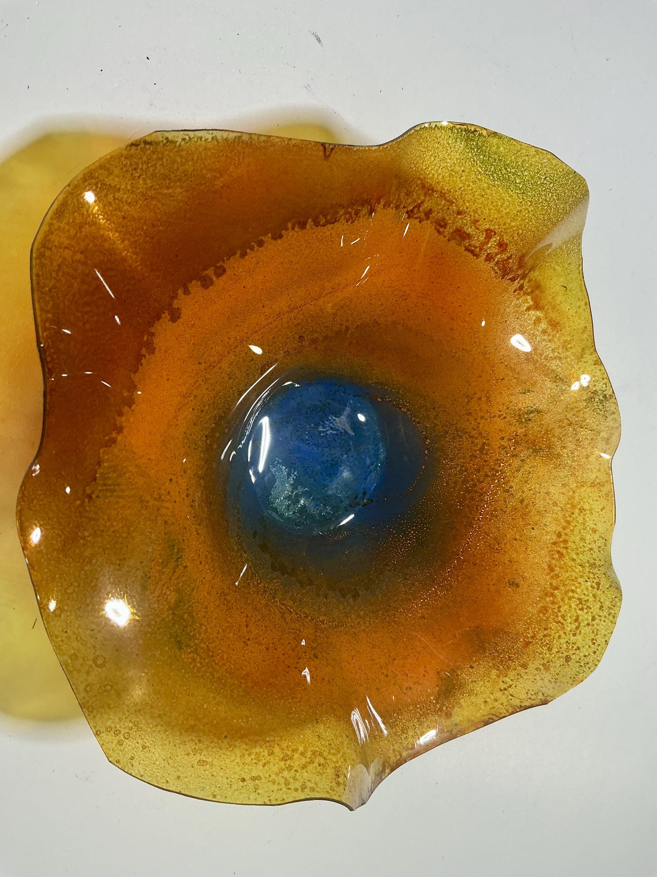5” Handmade Wall Flower Decor - Recycled Plastic- orange, yellow & blue Gift Idea-looks like glass