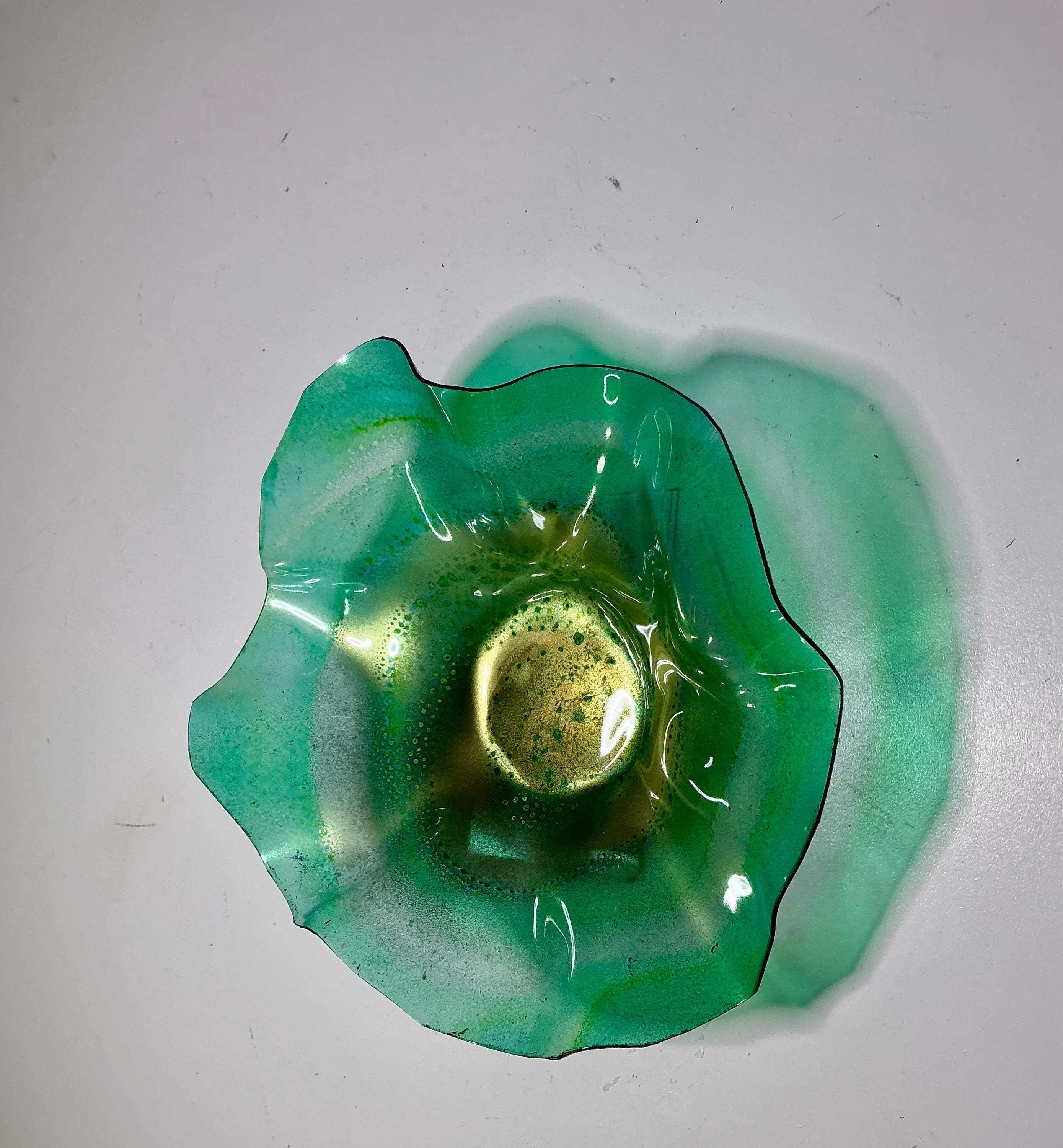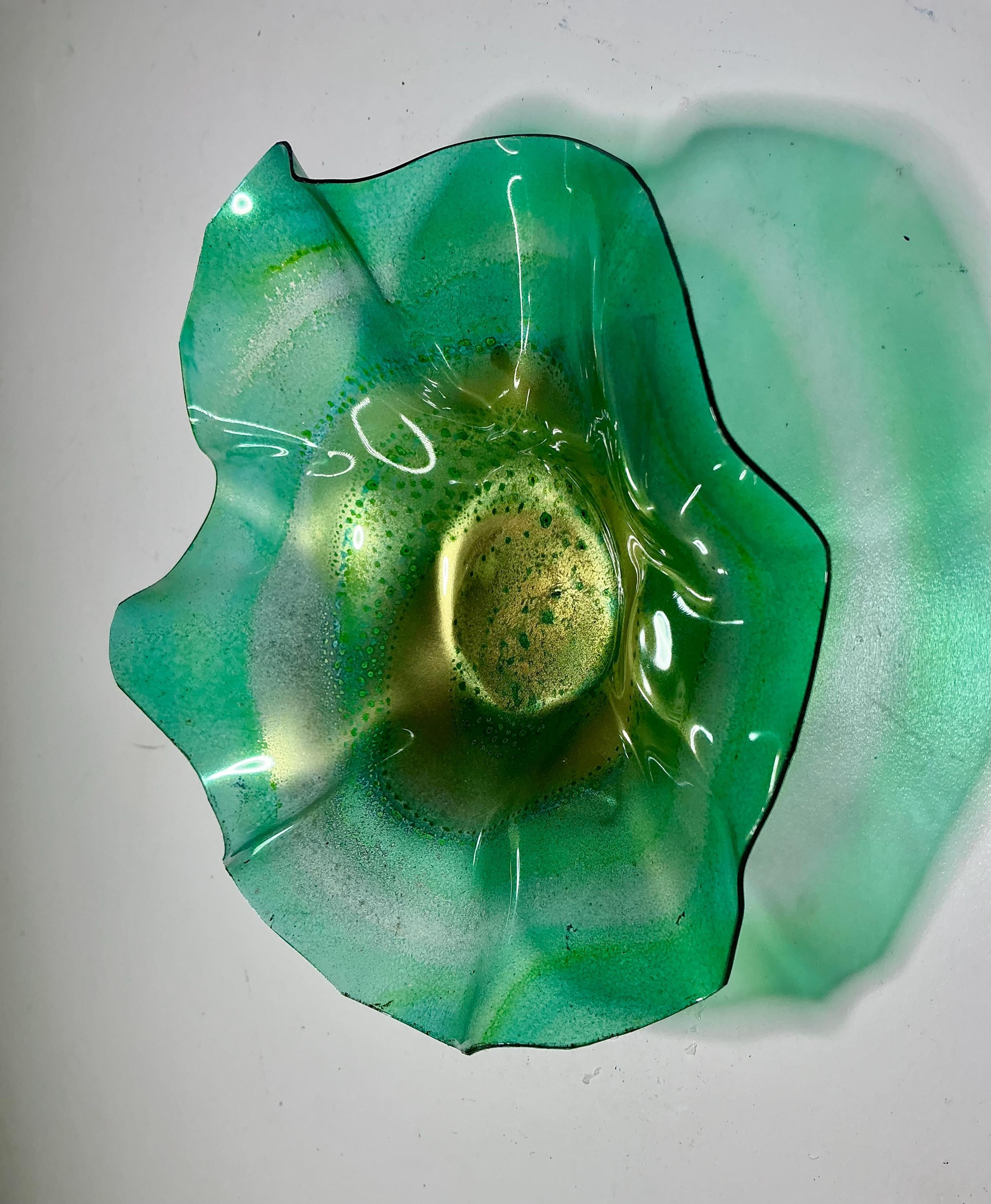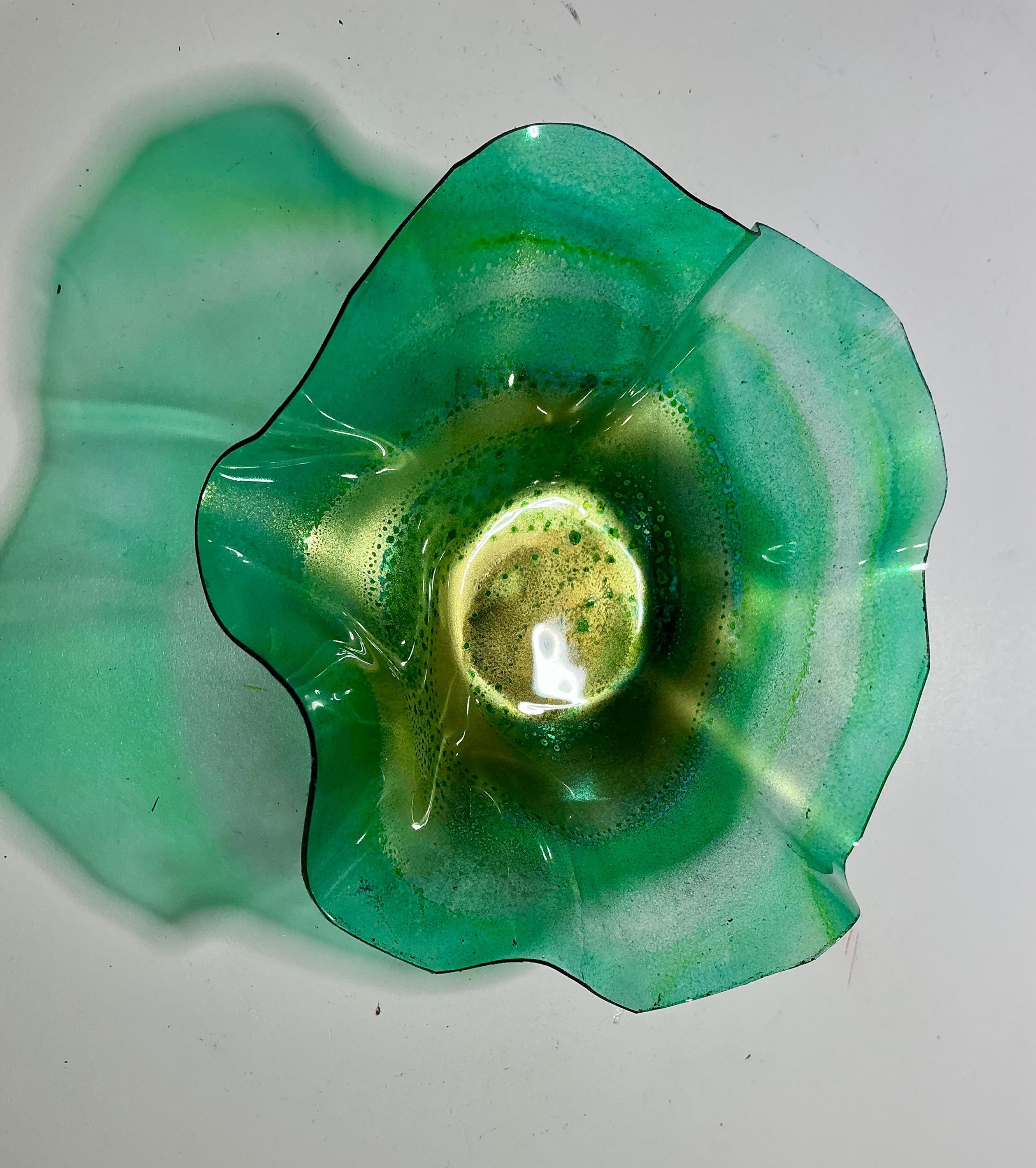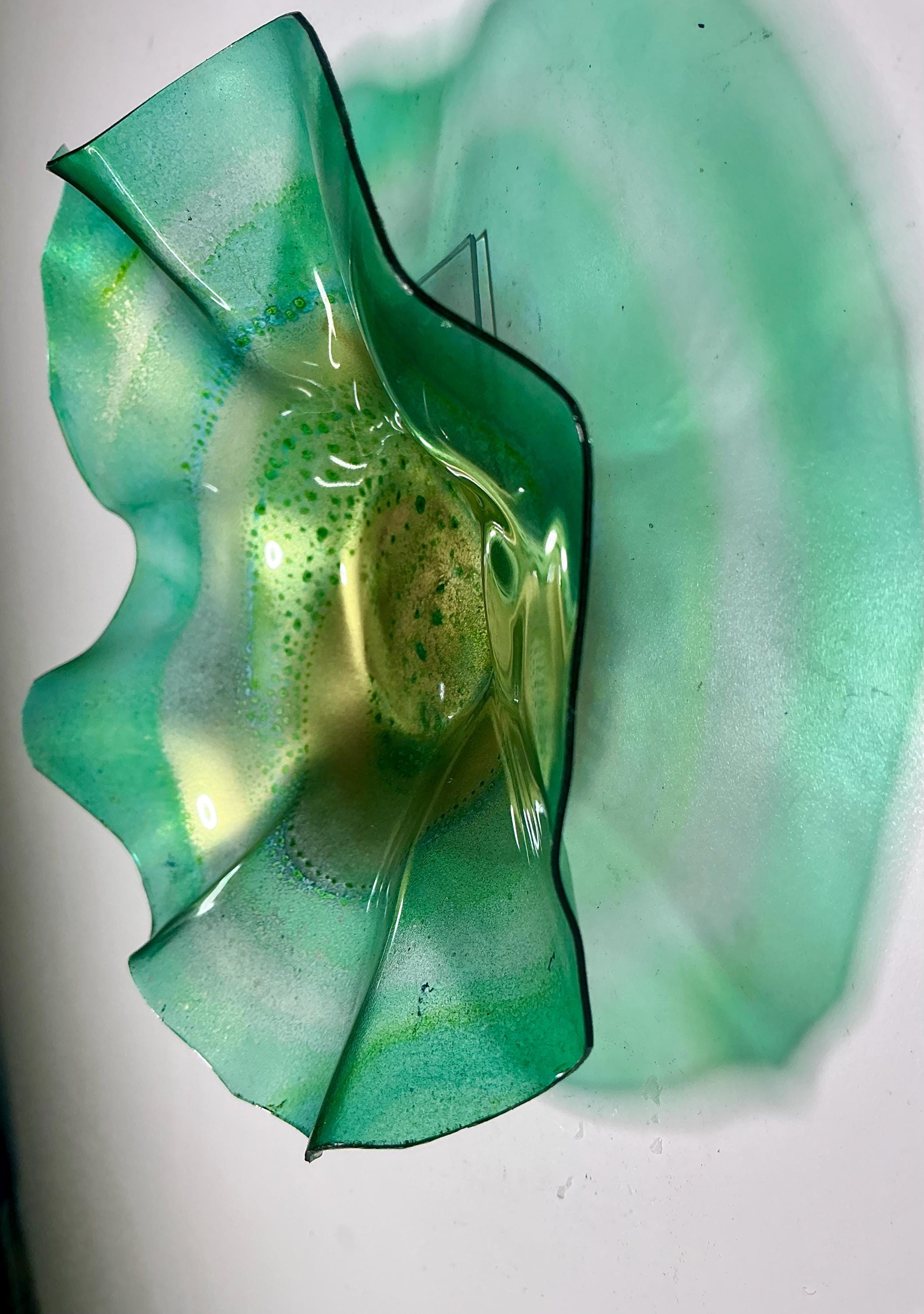 Each collectible piece is unique, no two are alike. This permanent, colorful, eye catching art looks and feels like glass. It shimmers in the light resembling water. They are very DURABLE AND LIGHTWEIGHT. These flowers are easy to hang, are all weather and UV resistant. Great for indoor or outdoor decorating.