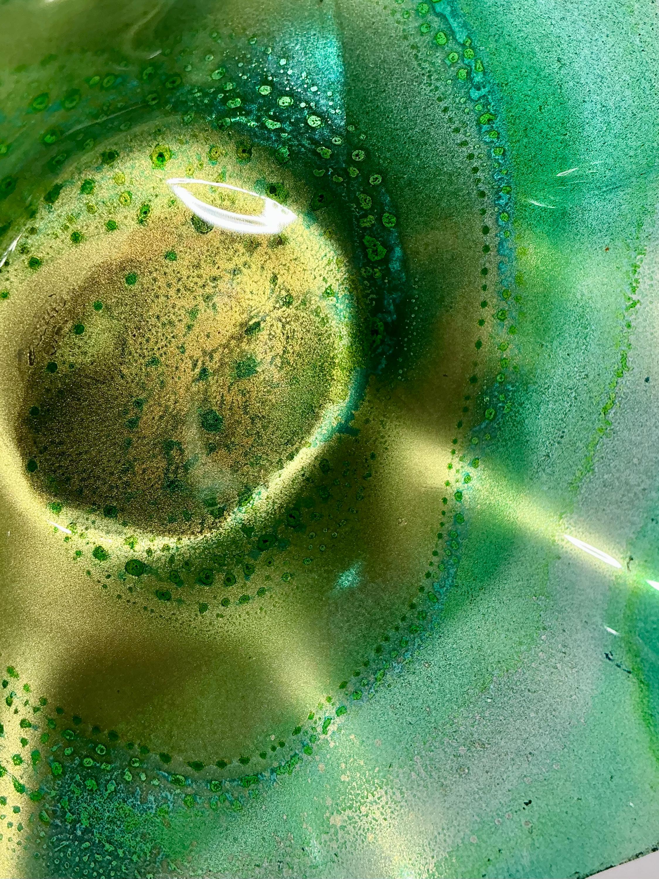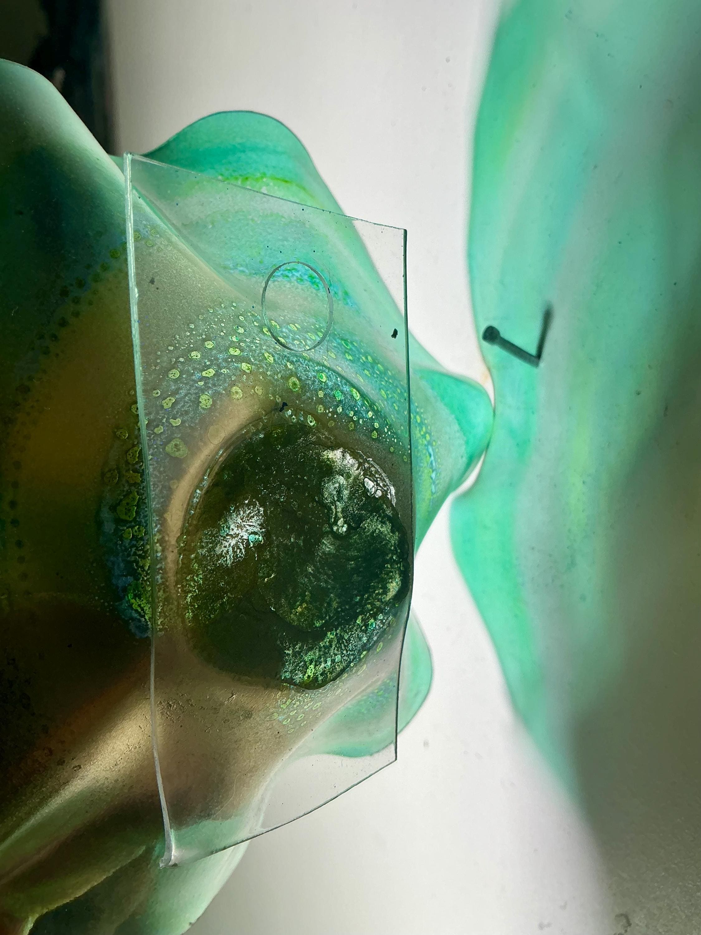 5 Inch Wall Hanging: Handmade sustainable plastic aqua green & gold with Glass Effect