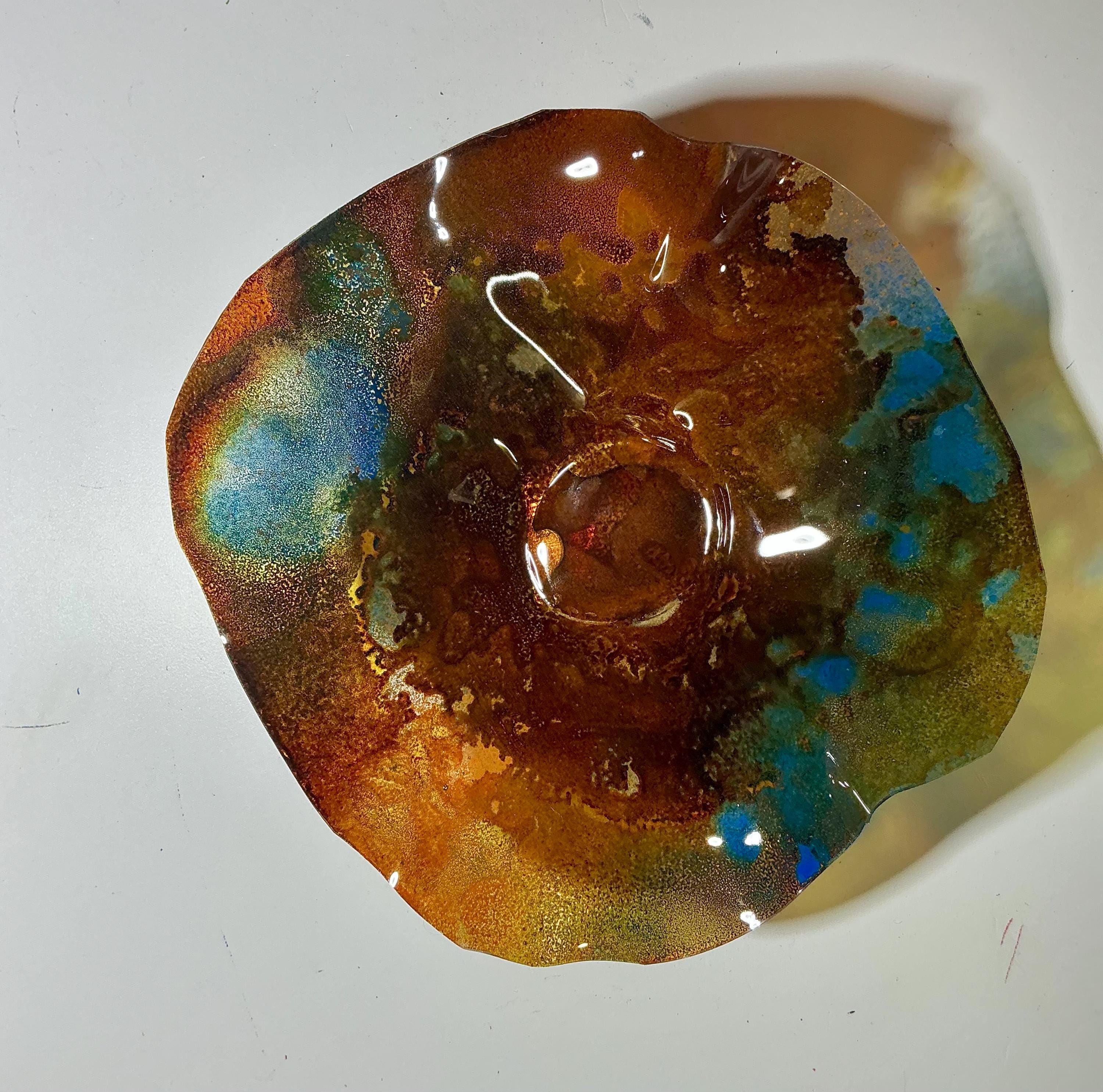Add a touch of eco-friendly elegance to your space with our amber, blue and brown 6” Wall Flower! Handmade from recycled plastic, this stunning piece combines vibrant colors and intricate design to brighten up any room. Perfect for indoor or outdoor decor, it’s not just a flower, but a statement of sustainability. Each flower is unique, making it a thoughtful gift for plant lovers and eco-conscious friends. Transform your walls with this beautiful, handcrafted artwork!