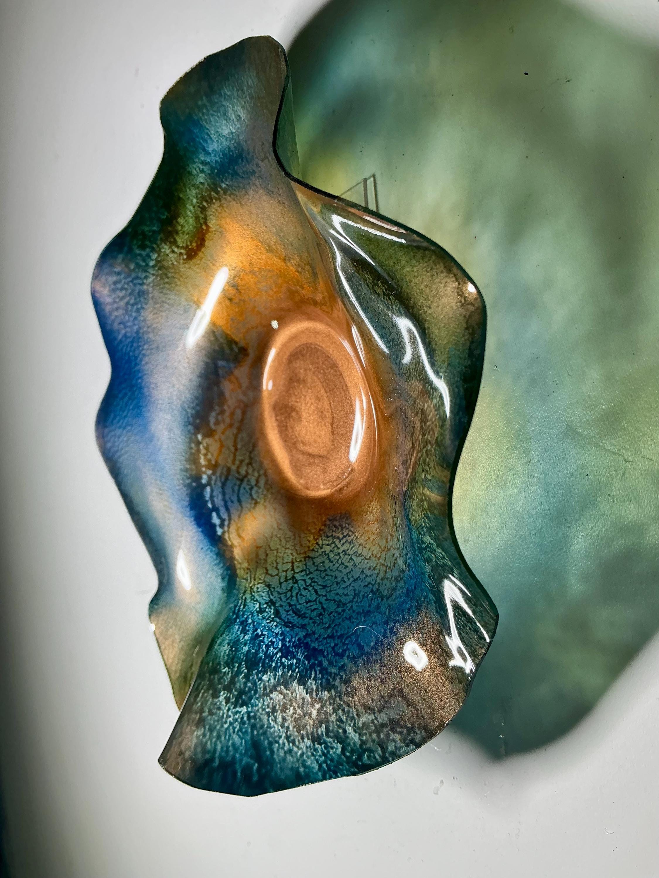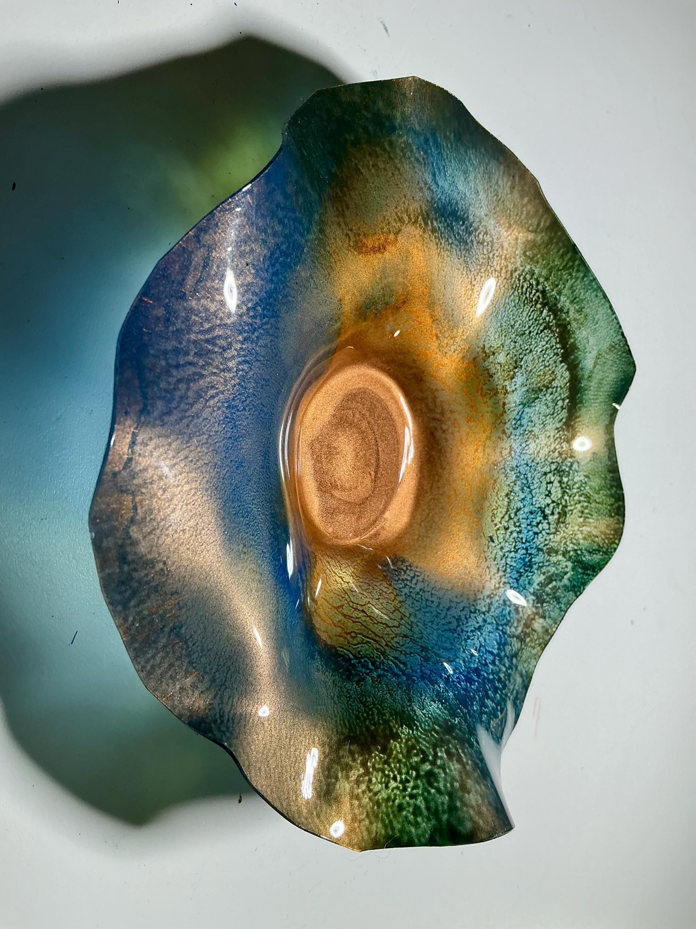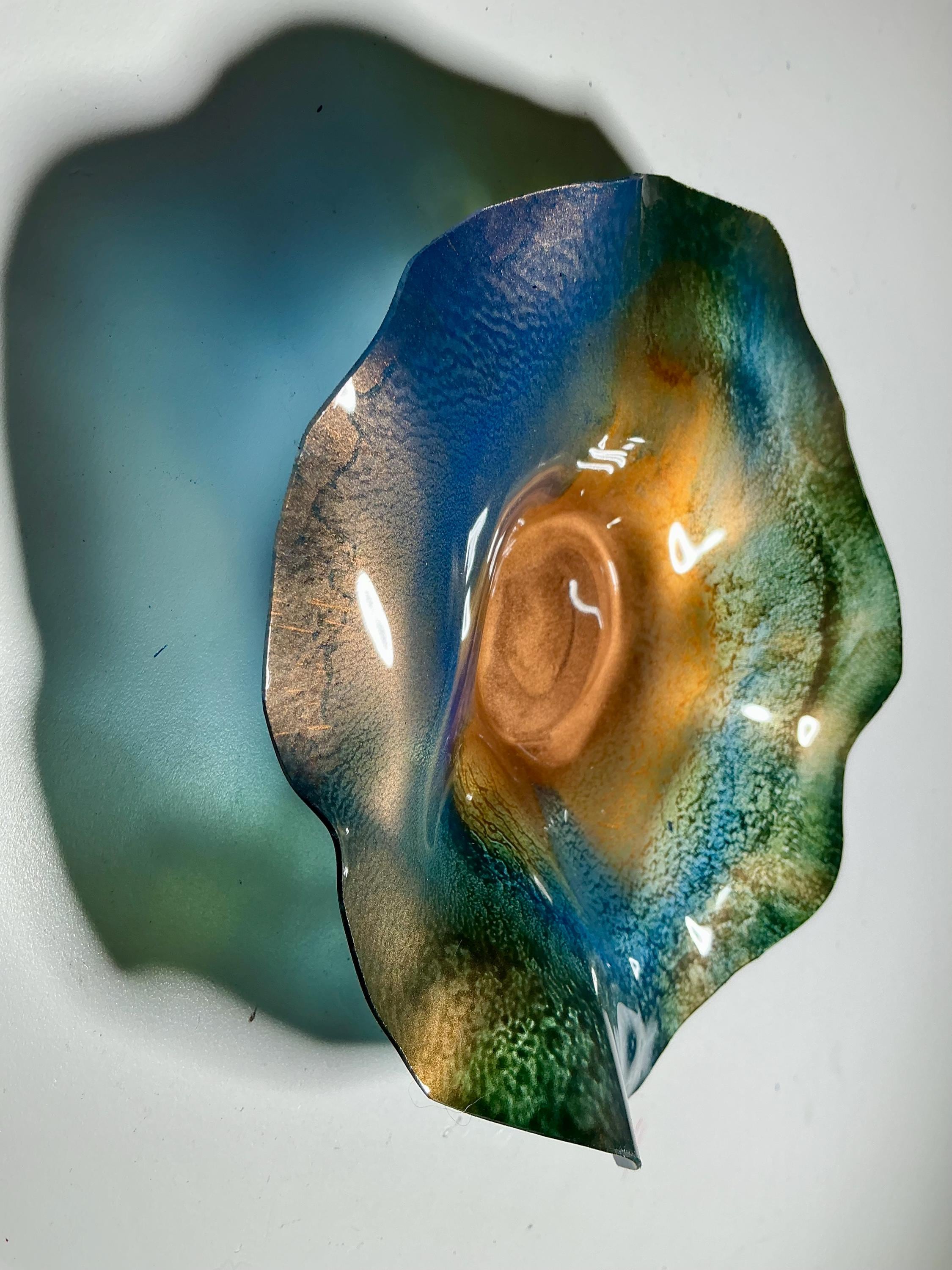 Elevate your space with our stunning Copper, blue and green 5” Wall Plate! Handcrafted from sustainable plastic, this unique decor piece mimics the elegance of glass while being eco-friendly. Perfect for adding a touch of color and sophistication to any room, it's lightweight and easy to hang. Each plate is a one-of-a-kind creation, ensuring your decor stands out. Ideal for gifting or personal use, transform your wall into an artful display with this eye-catching accessory!