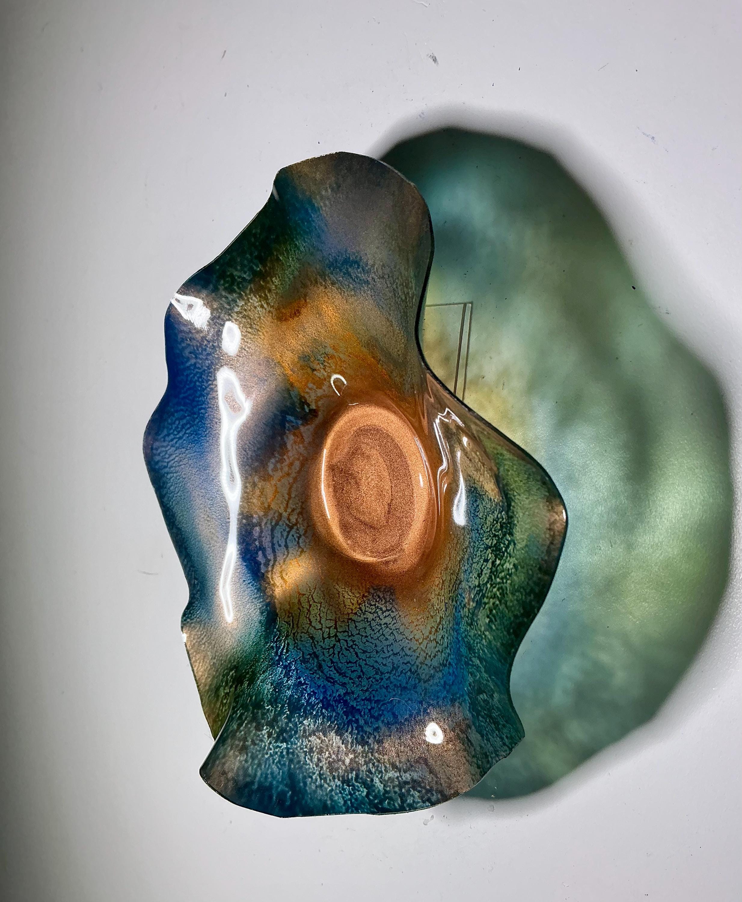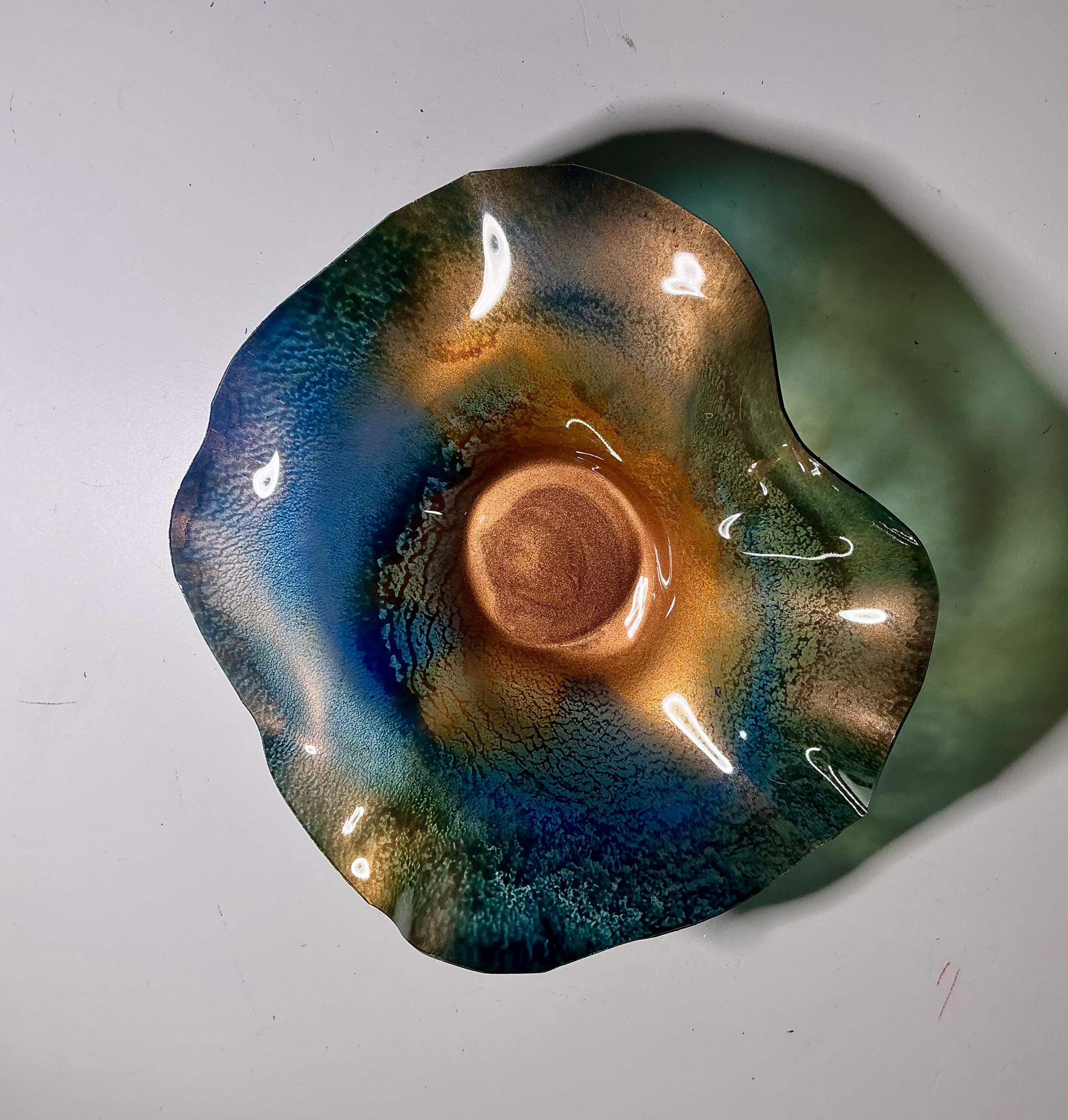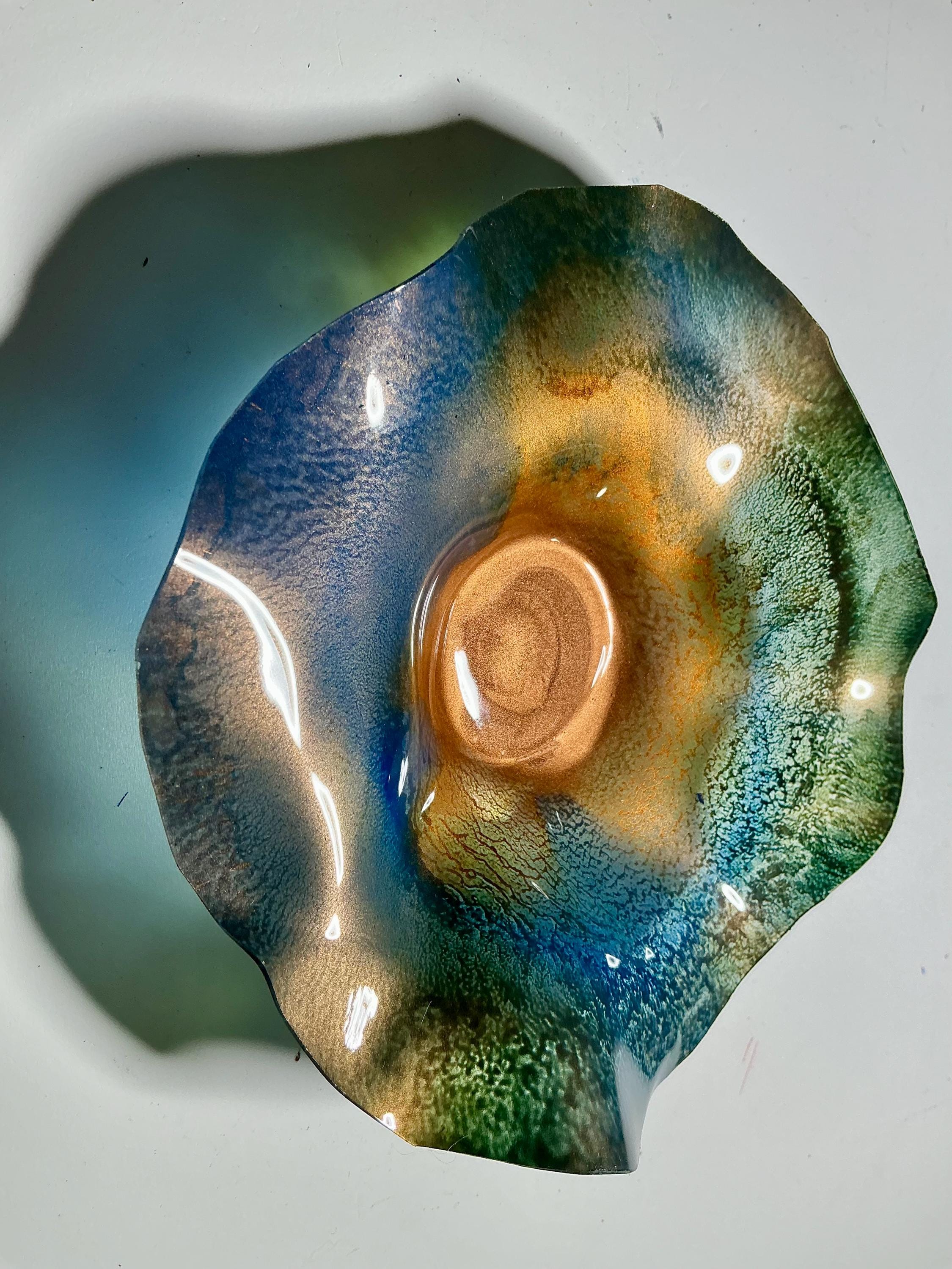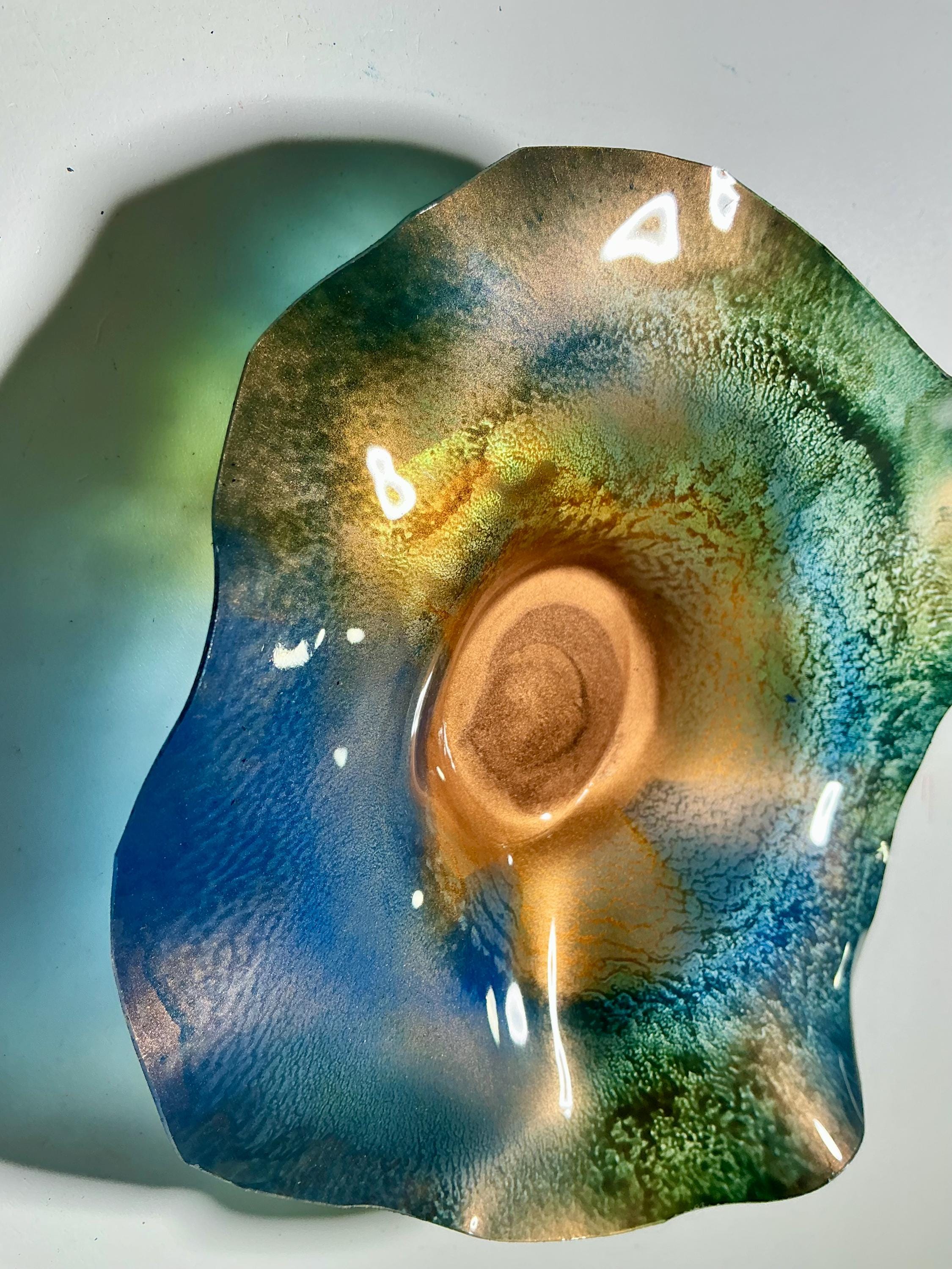 Elevate your space with our stunning Copper, blue and green 5” Wall Plate! Handcrafted from sustainable plastic, this unique decor piece mimics the elegance of glass while being eco-friendly. Perfect for adding a touch of color and sophistication to any room, it's lightweight and easy to hang. Each plate is a one-of-a-kind creation, ensuring your decor stands out. Ideal for gifting or personal use, transform your wall into an artful display with this eye-catching accessory!