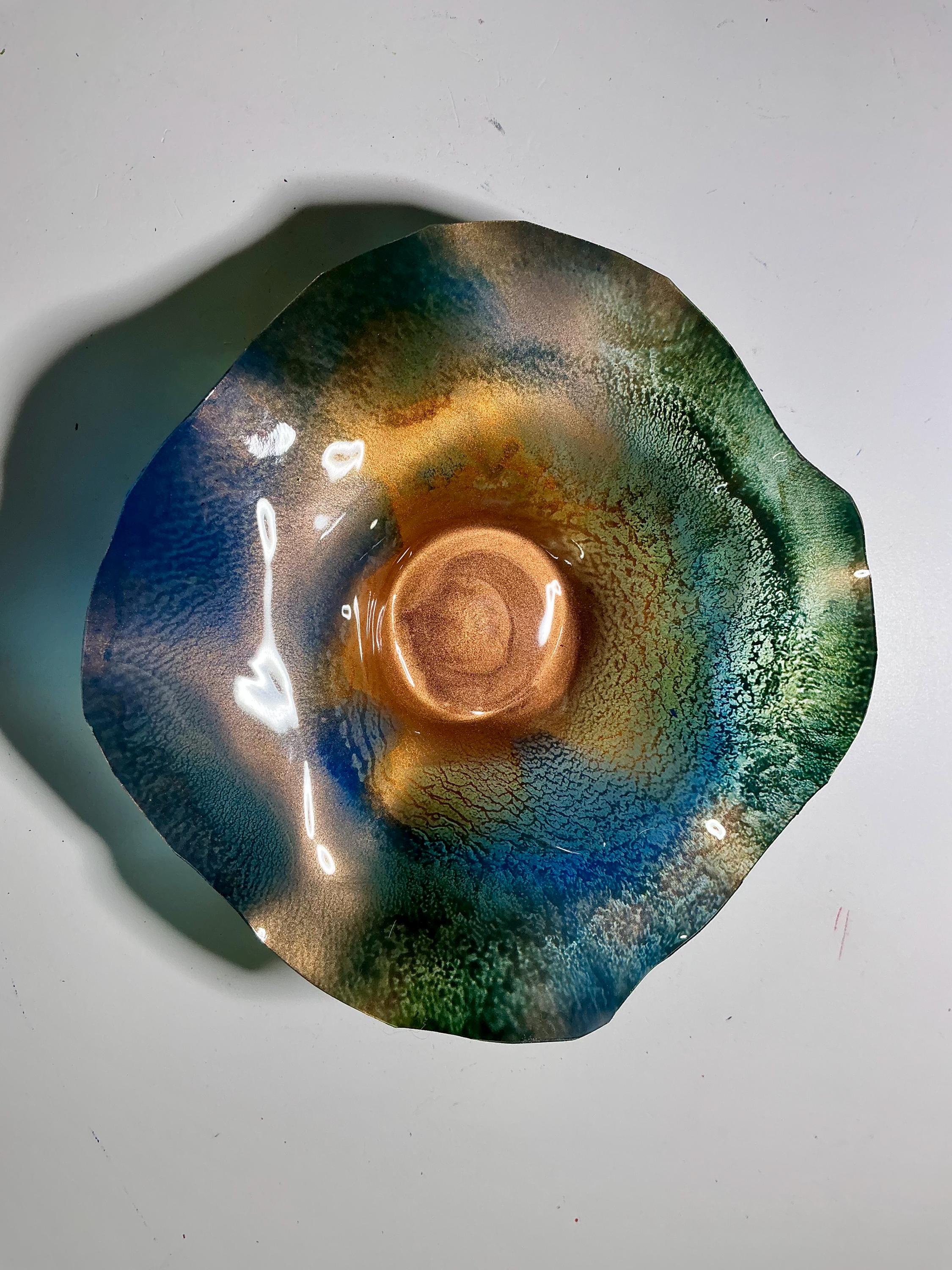 Copper, blue & green 5” Wall Plate - Handcrafted Decor in Sustainable Plastic, Glass-Like Finish