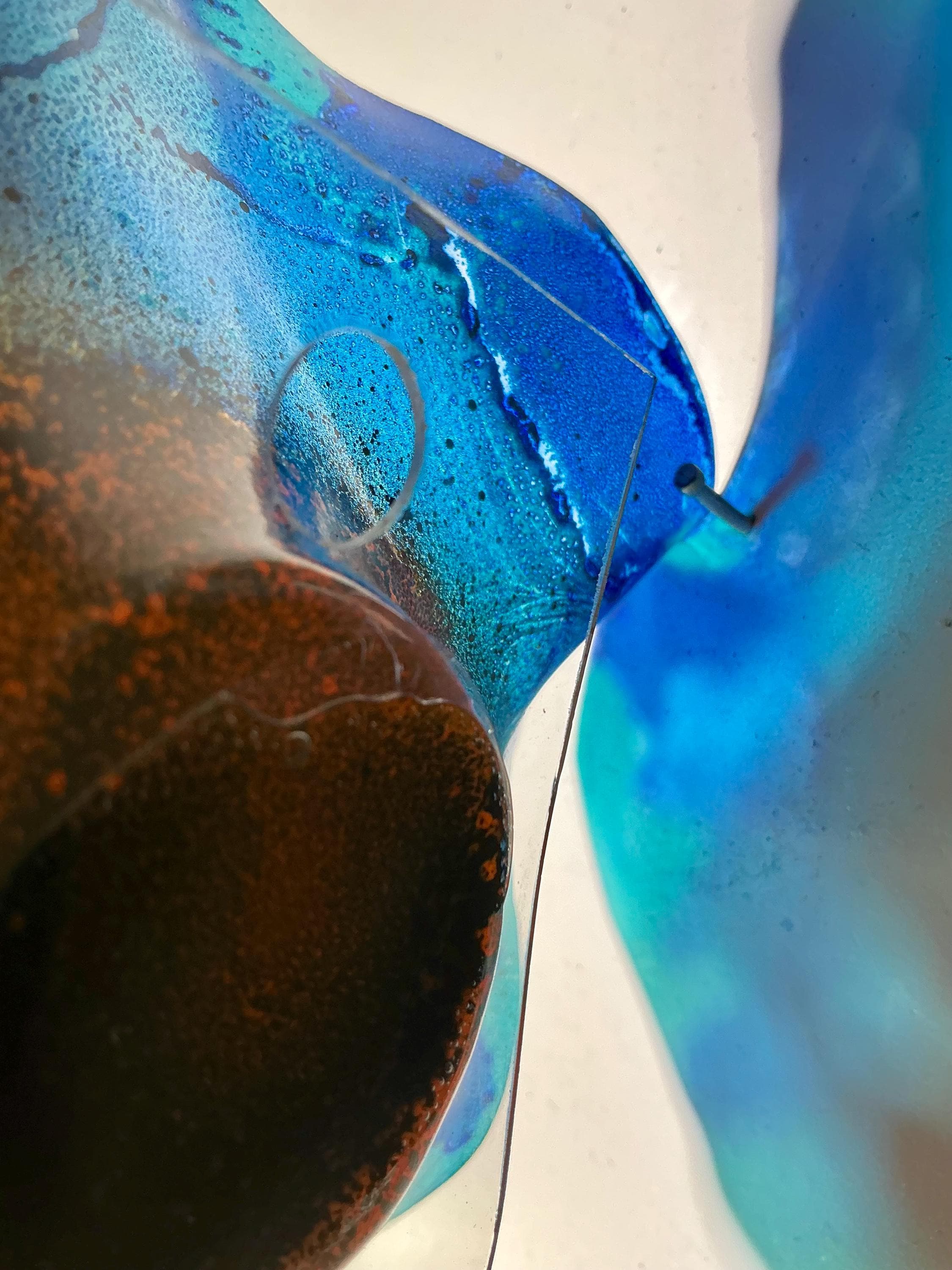 5 Inch Wall Hanging: Handmade sustainable plastic blue & burnt orange with Glass Effect