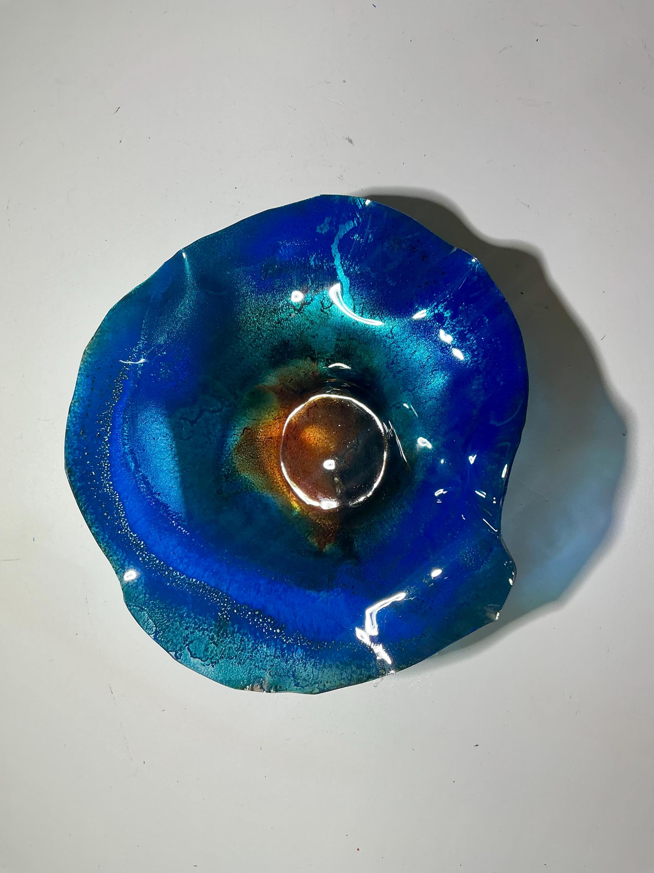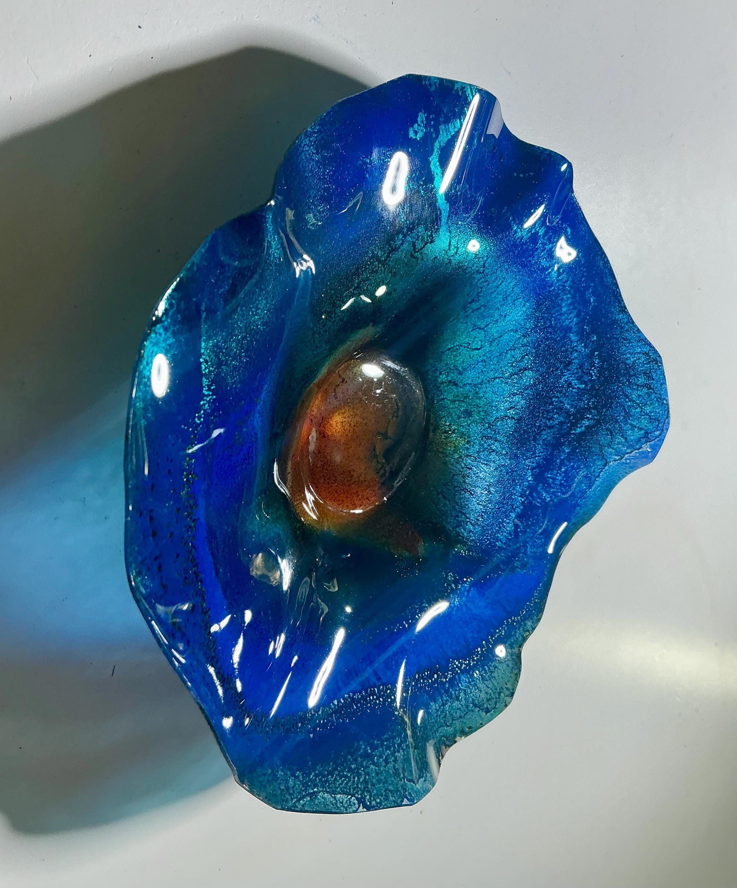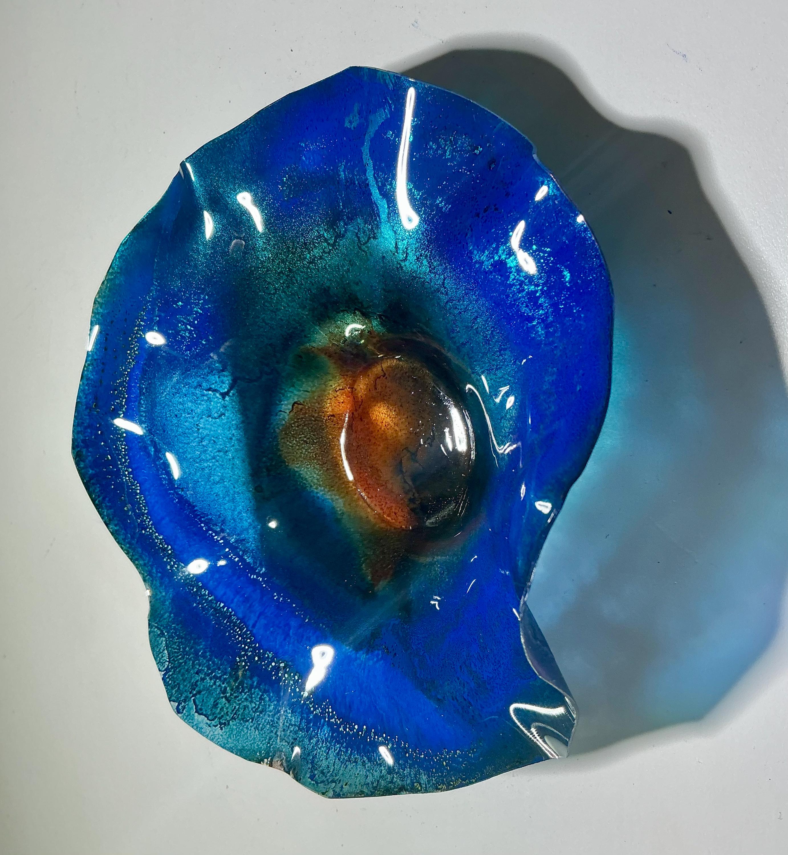 5 Inch Wall Hanging: Handmade sustainable plastic blue and brown with Glass Effect