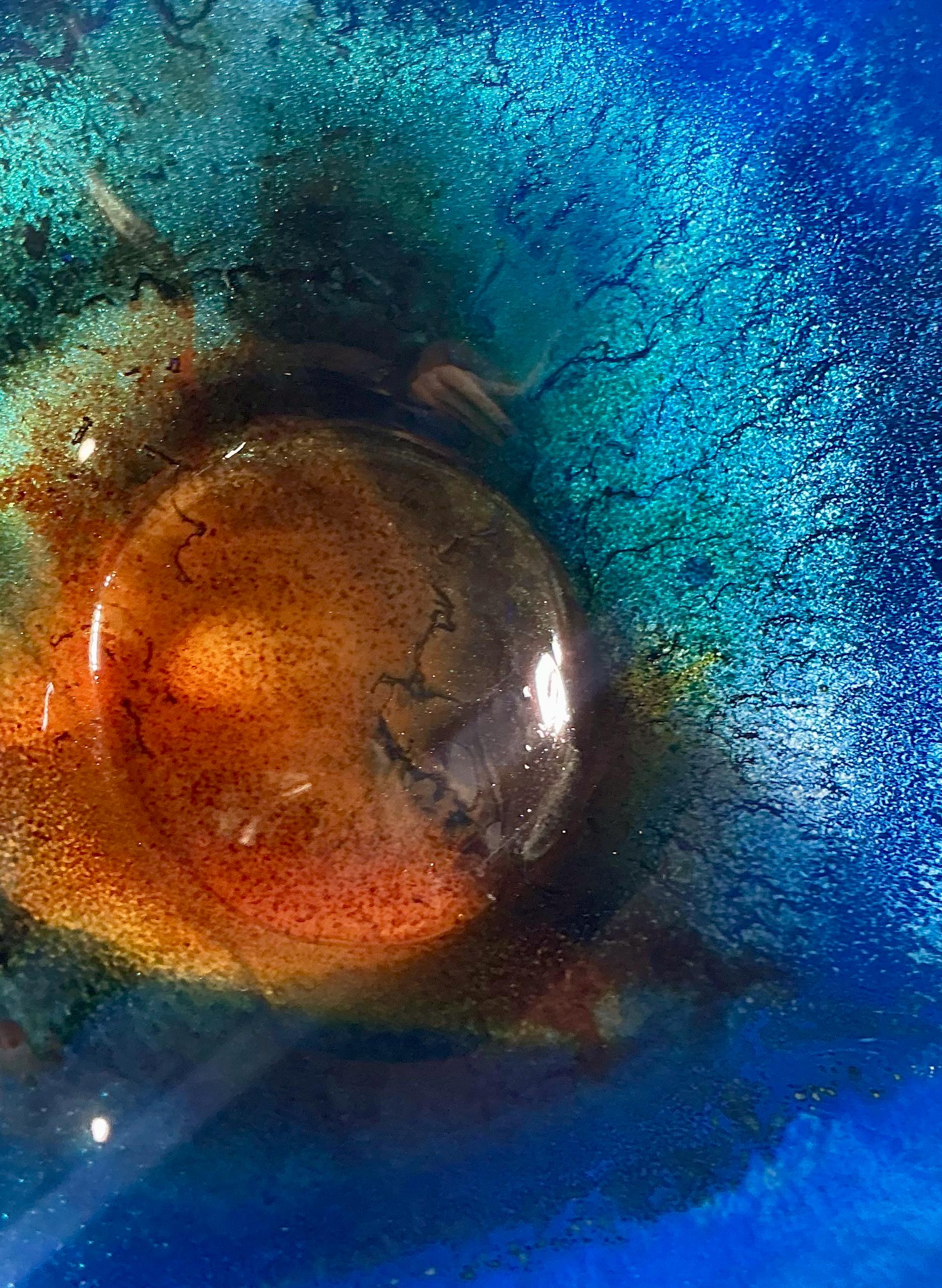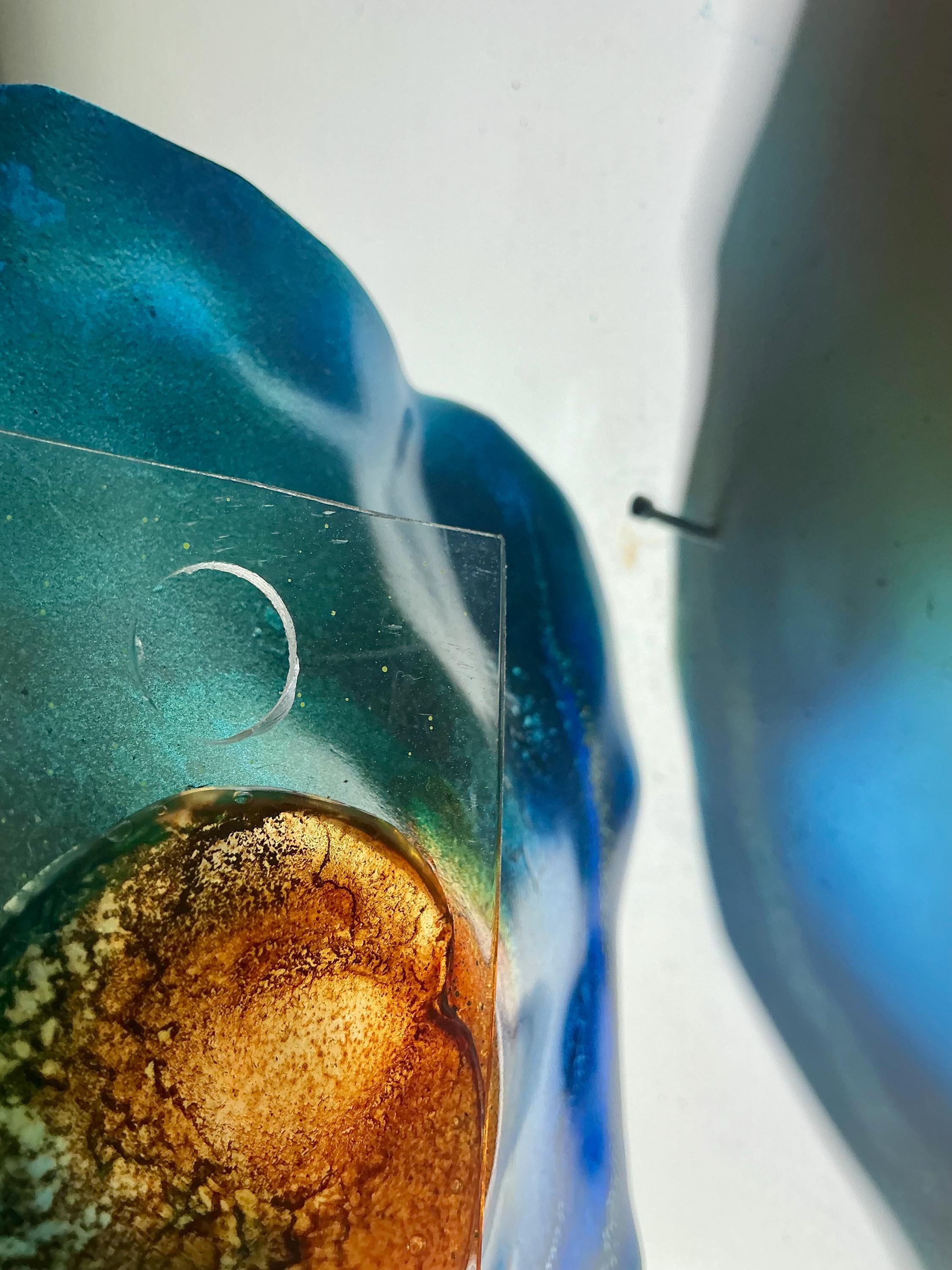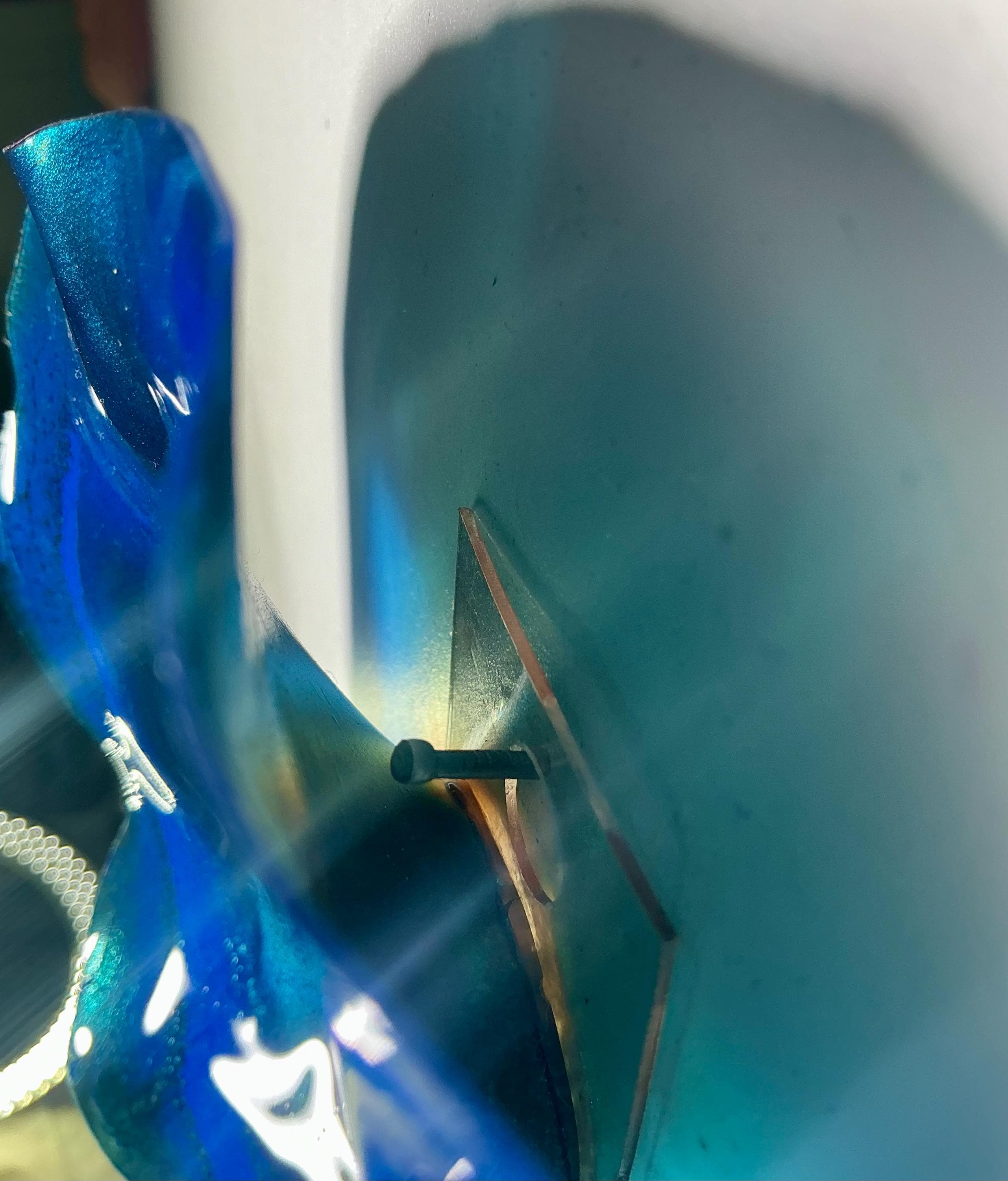 5 Inch Wall Hanging: Handmade sustainable plastic blue and brown with Glass Effect