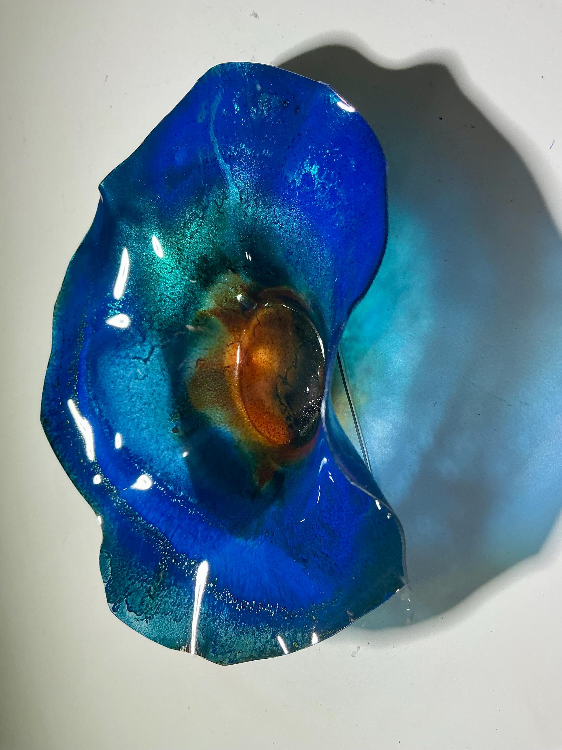 Each collectible piece is unique, no two are alike. This permanent, colorful, eye catching art looks and feels like glass. It shimmers in the light resembling water. They are very DURABLE AND LIGHTWEIGHT. These flowers are easy to hang, are all weather and UV resistant. Great for indoor or outdoor decorating.