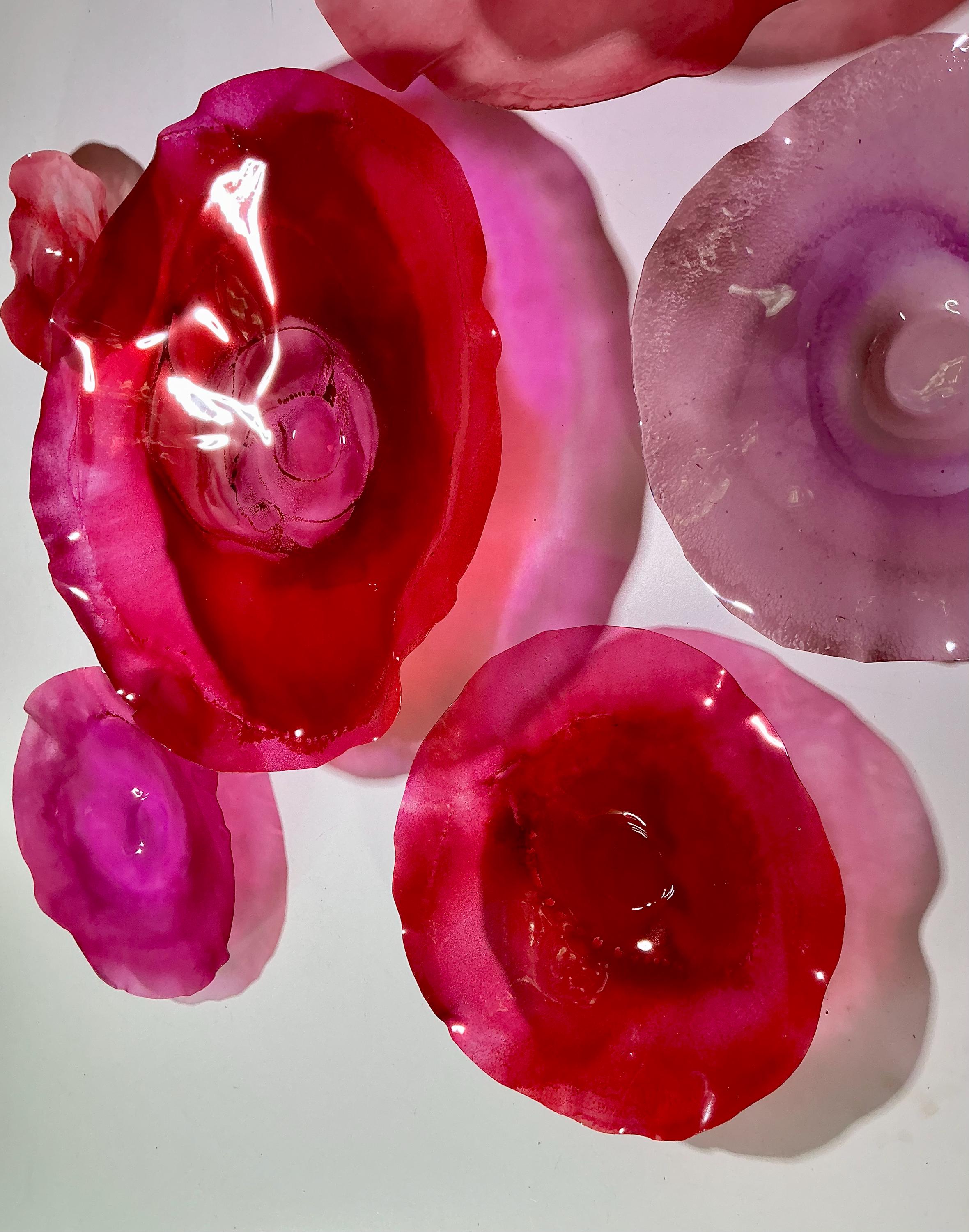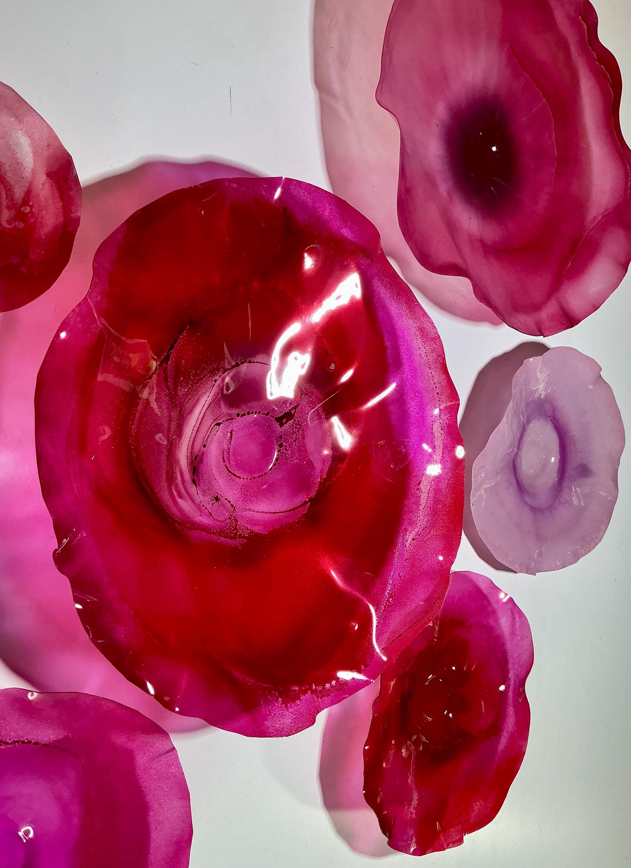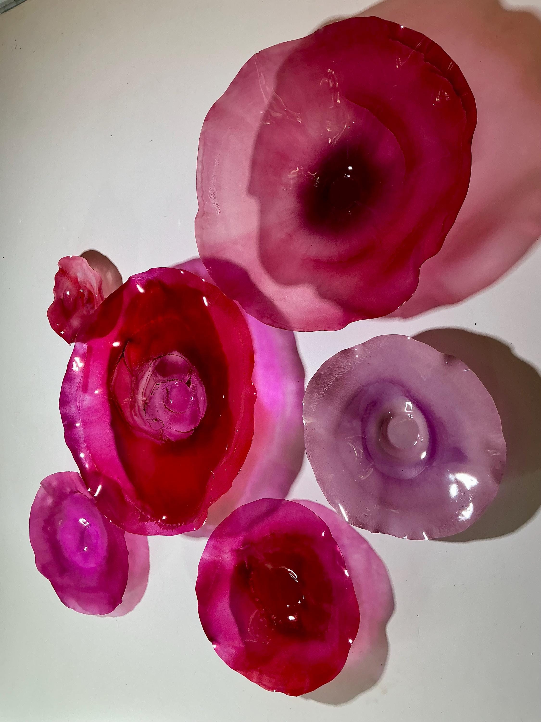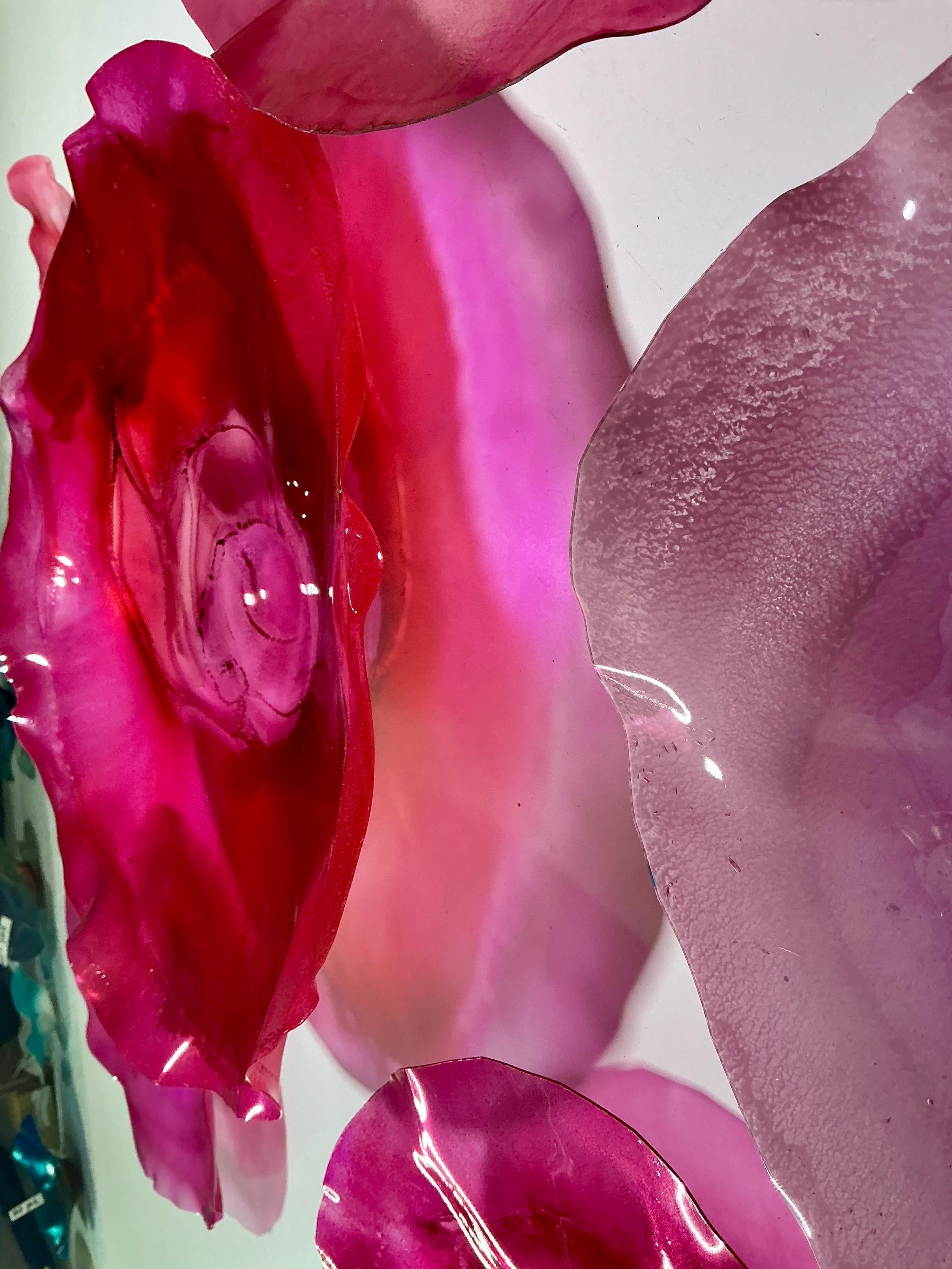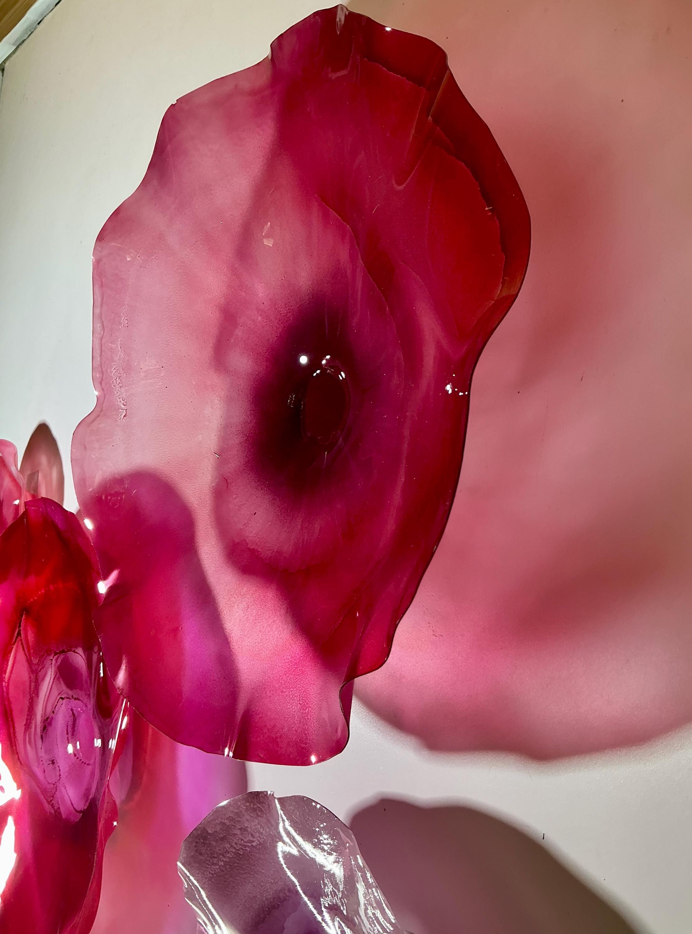 Set of 6 Rose Pink Wallflowers | Recycled Polymer Handmade Glass-Effect Decor