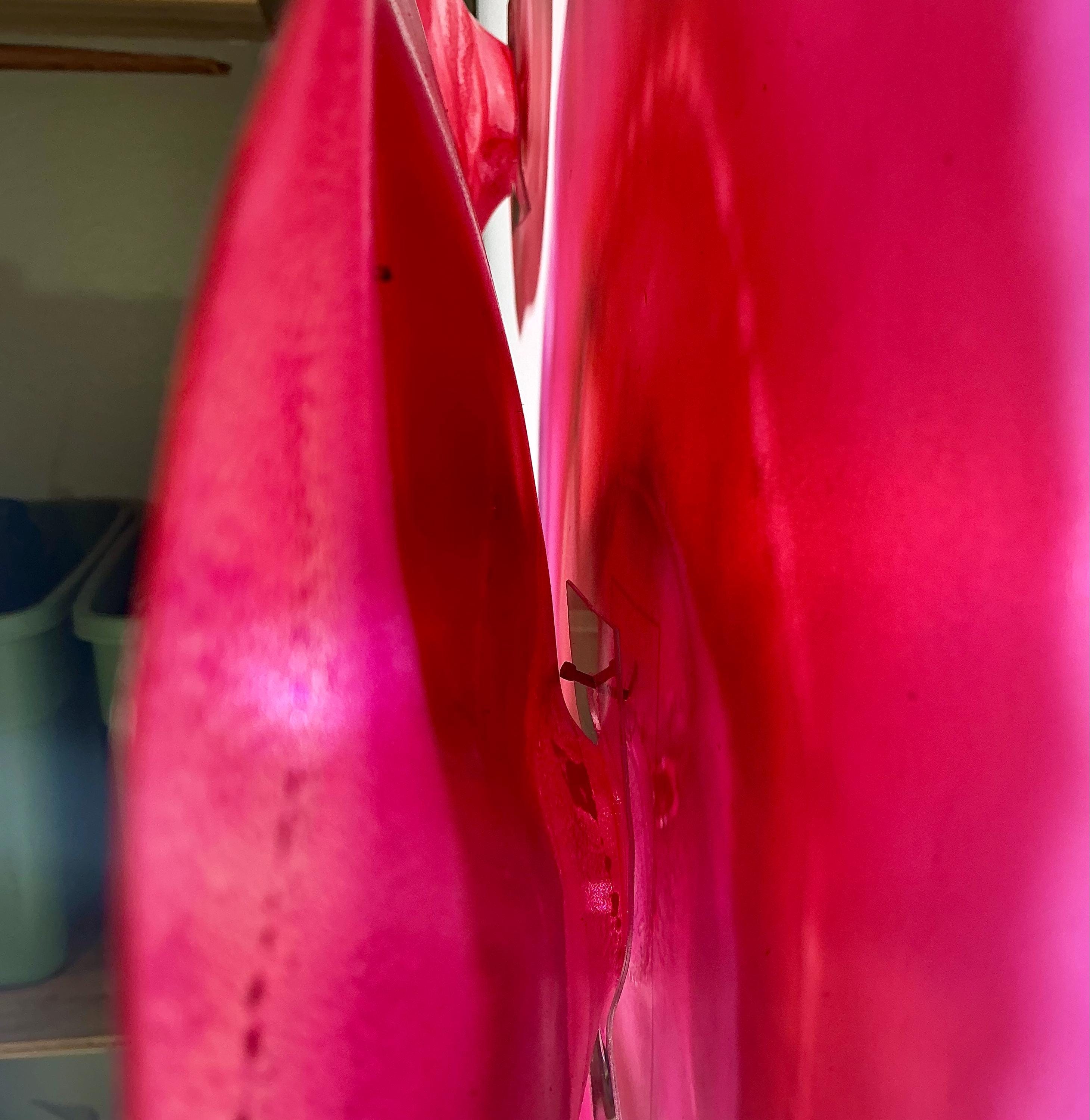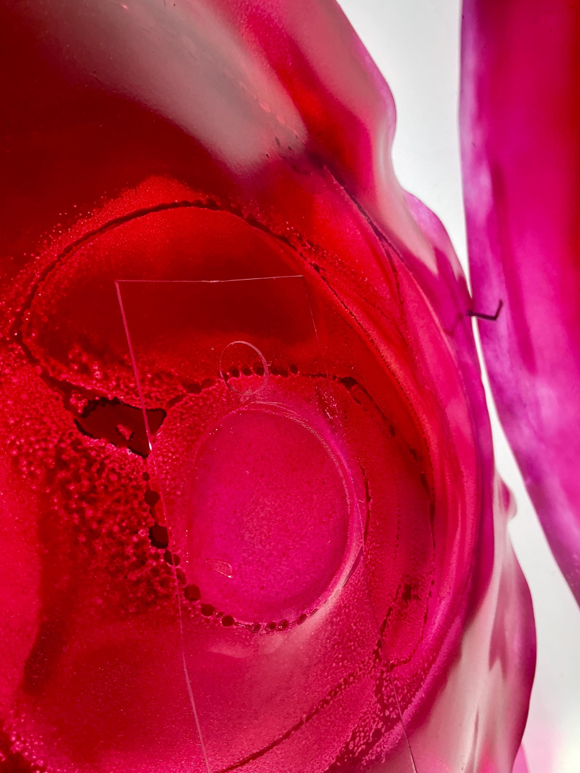 The CoralREEFlections line is from the Ocean Arts studio. Todd and Stephanie Lynd have developed an art of turning recycled plastic (PET) and partially recycled material into Art wares. The color is hand folded into clear material under high heat.
