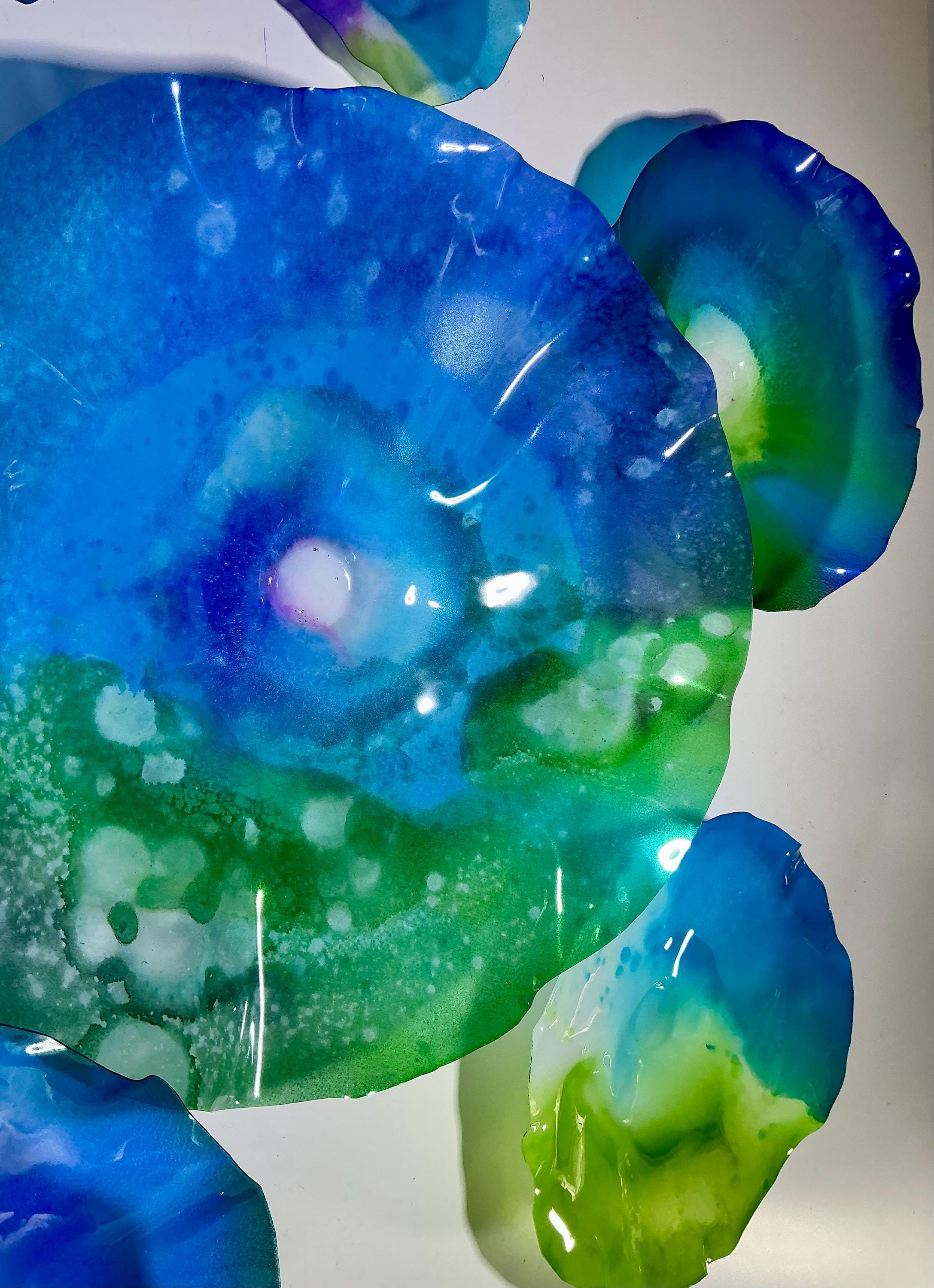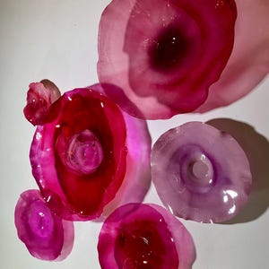 Our wall flowers are made from sustainable recycled PET as in a water bottle. Each piece contains at least 50% recycled polyethylene terphalate (rPET)