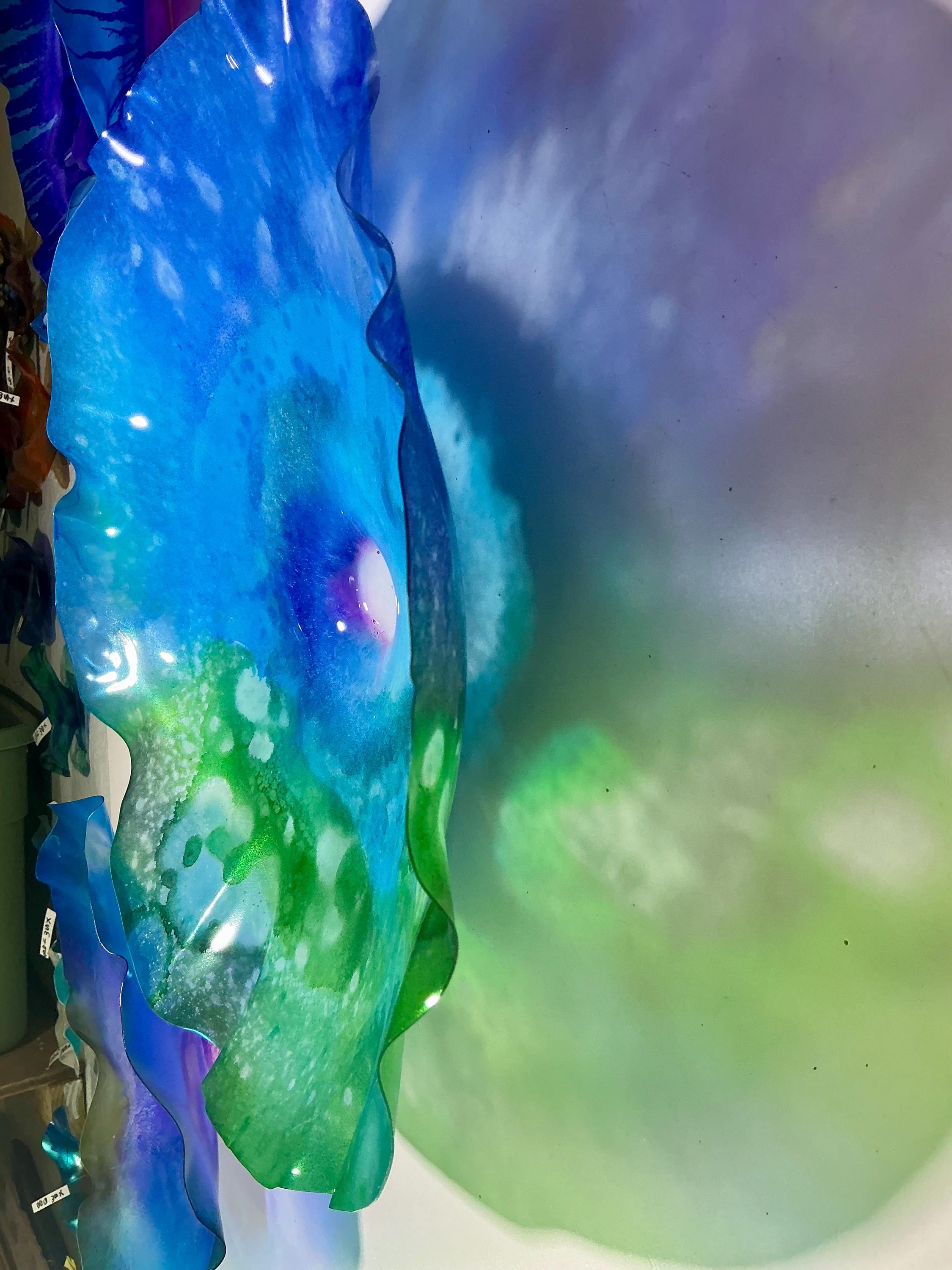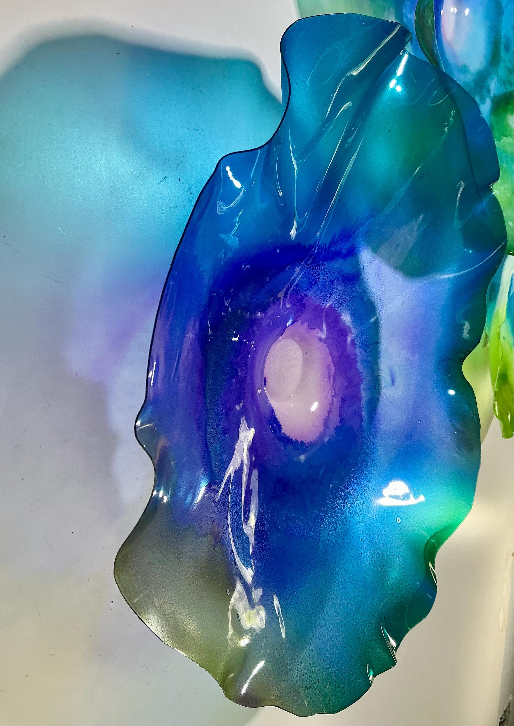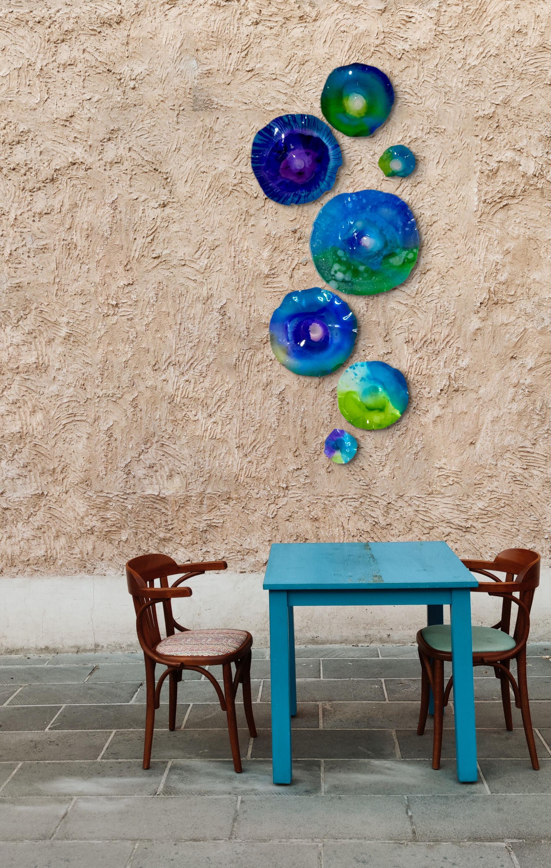 From the wall, they look like glass. The bonuses are that these flowers are light, unbreakable, environmentally friendly, easy to hang, and have no damage to the wall due to drilling for would-be-heavy traditional glass flowers.