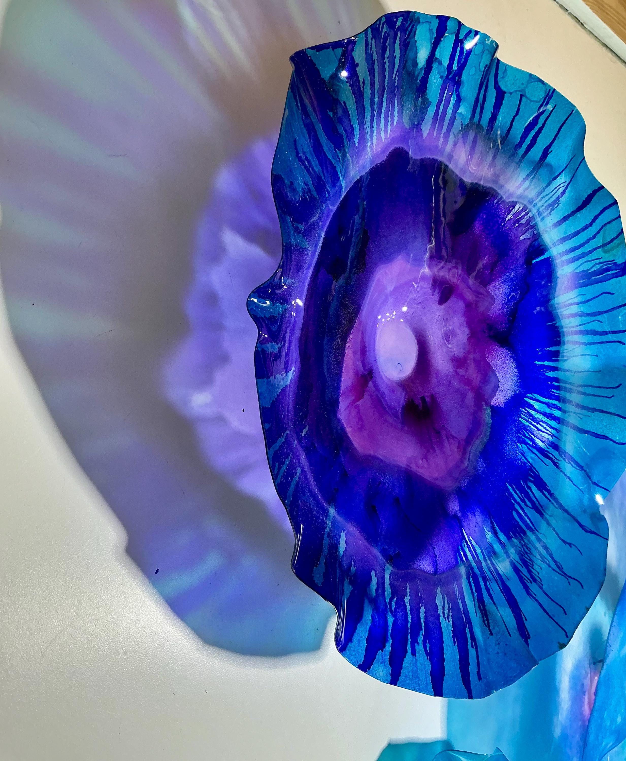 Each flower come with a hanger with a hole in the back for easy hanging. Each piece is light weight and all you will need is a nail or thumb tack to hang it from. If you can hang a picture, you can hang these plates. Each order comes with a set of hanging instructions. For outdoor hanging, please request our free outdoor hardware. For ceiling hanging please request velcro.