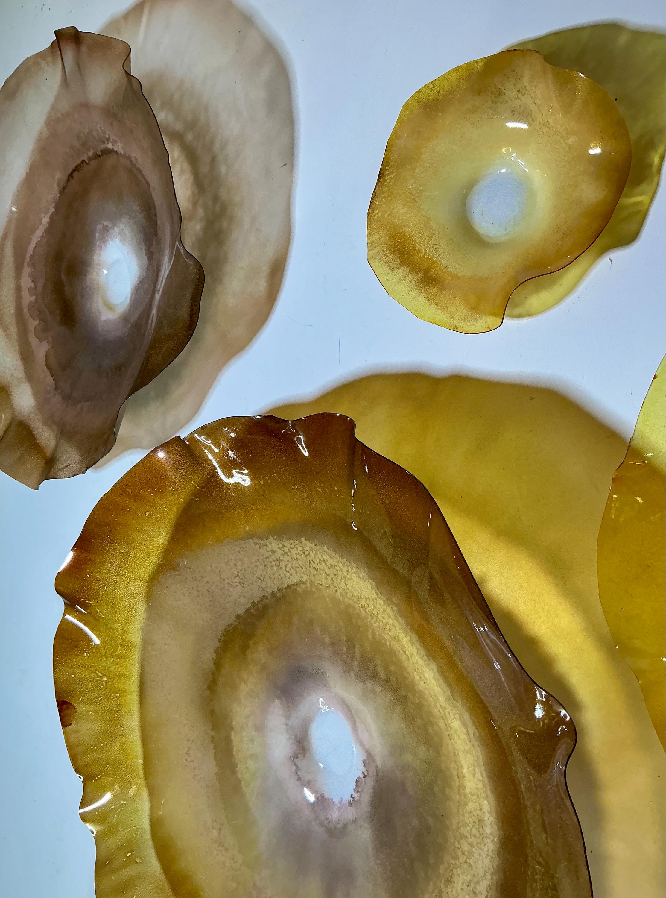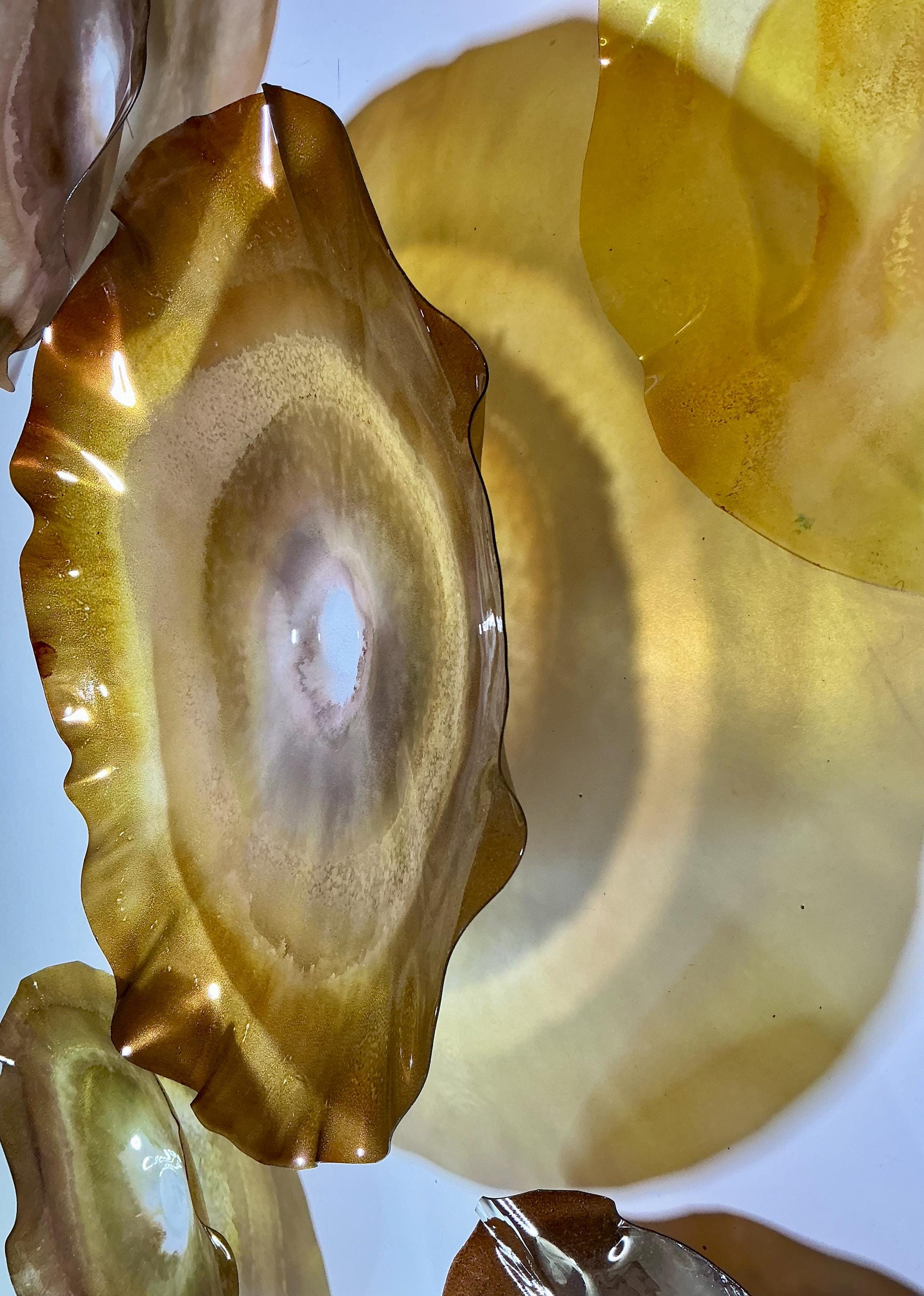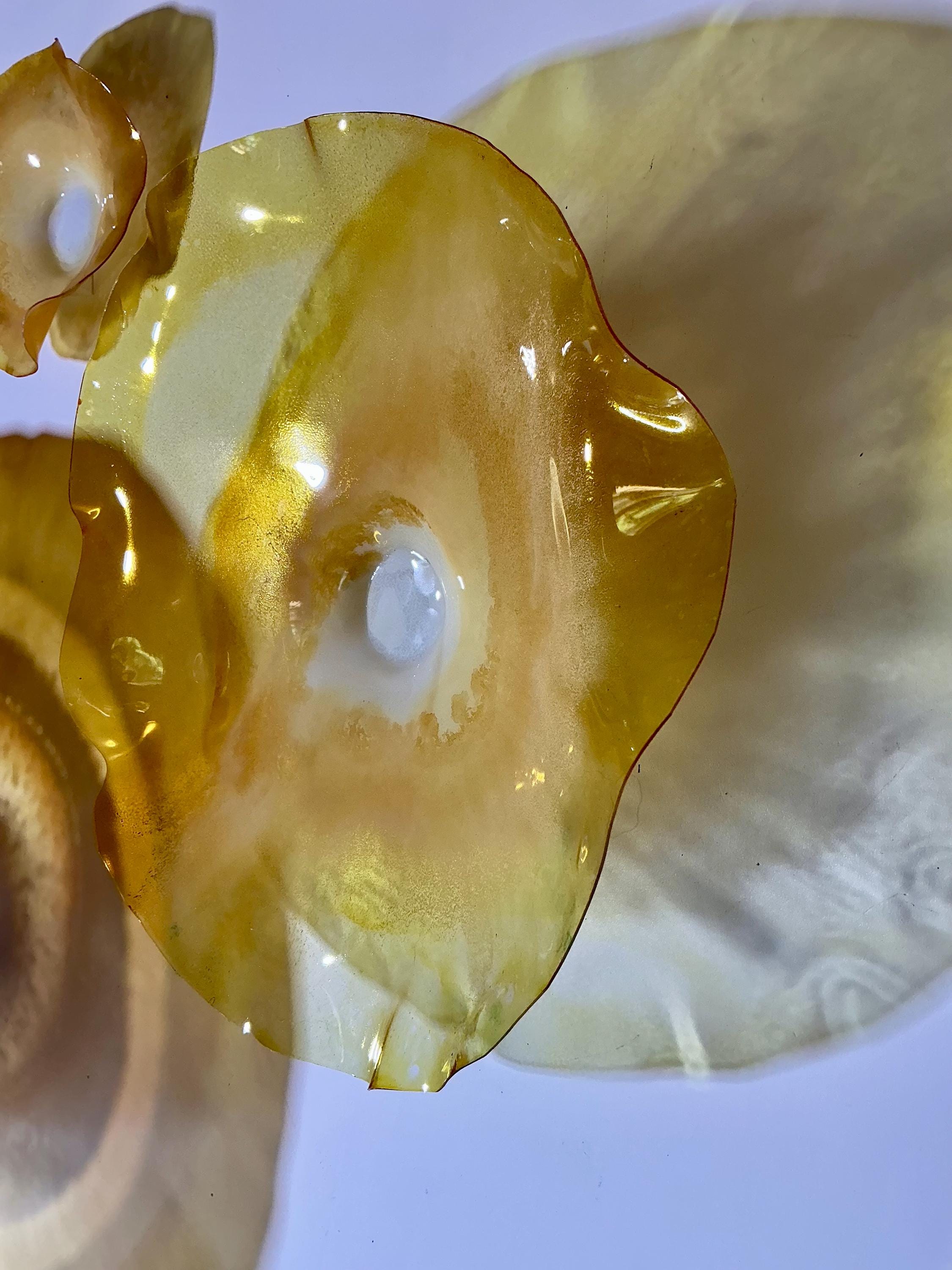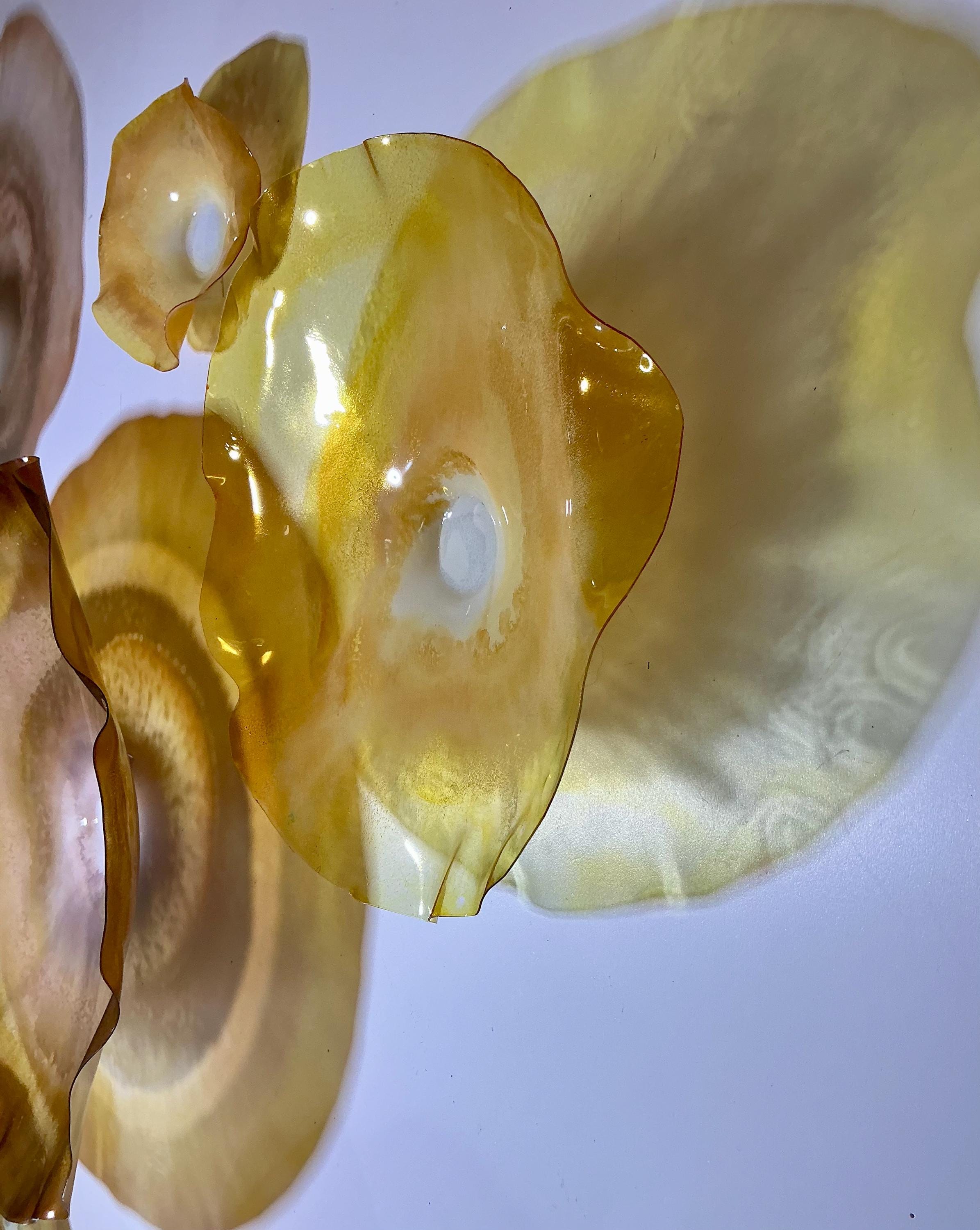 Our wall flowers are made from sustainable recycled PET as in a water bottle. Each piece contains at least 50% recycled polyethylene terphalate (rPET)