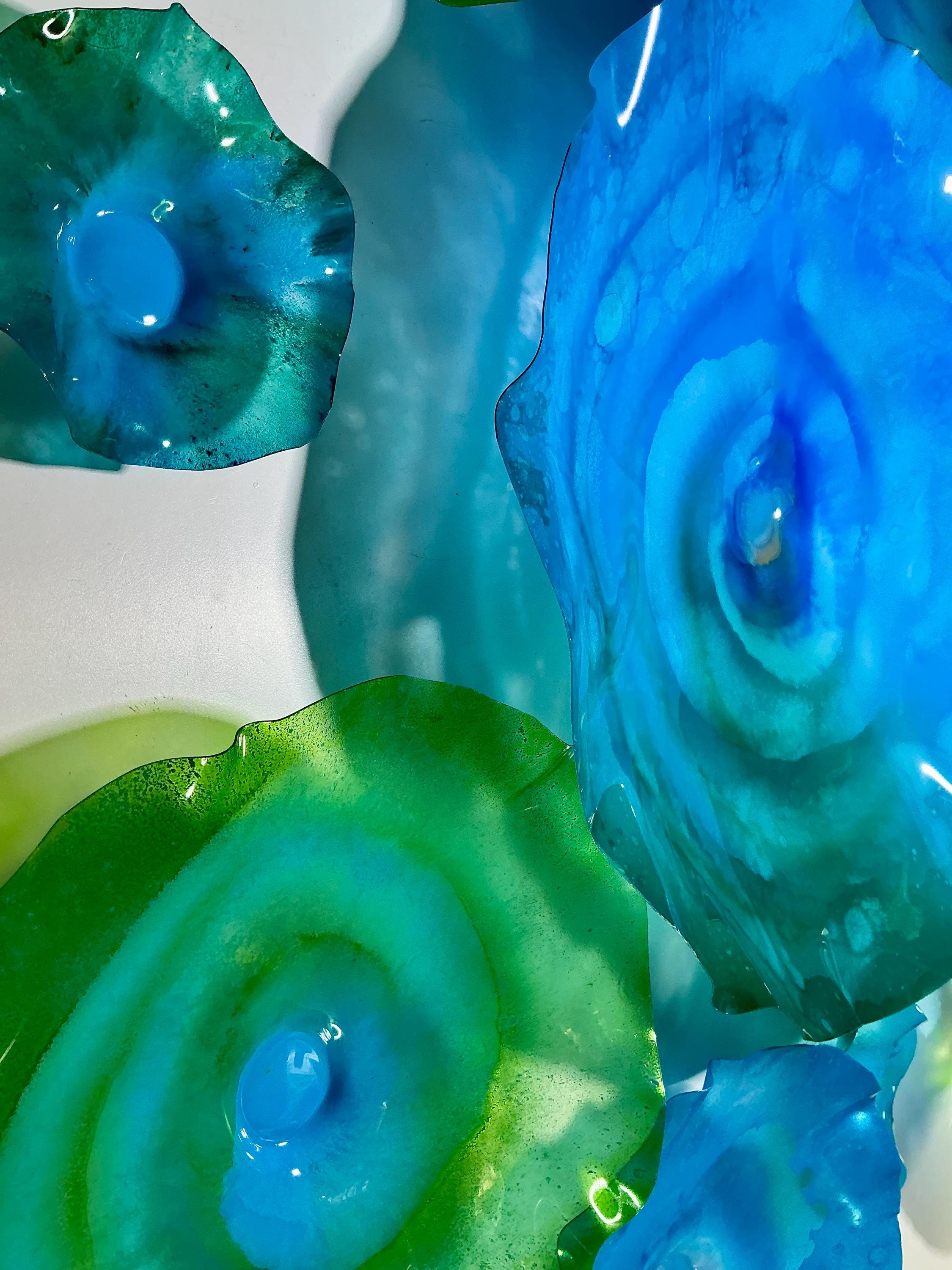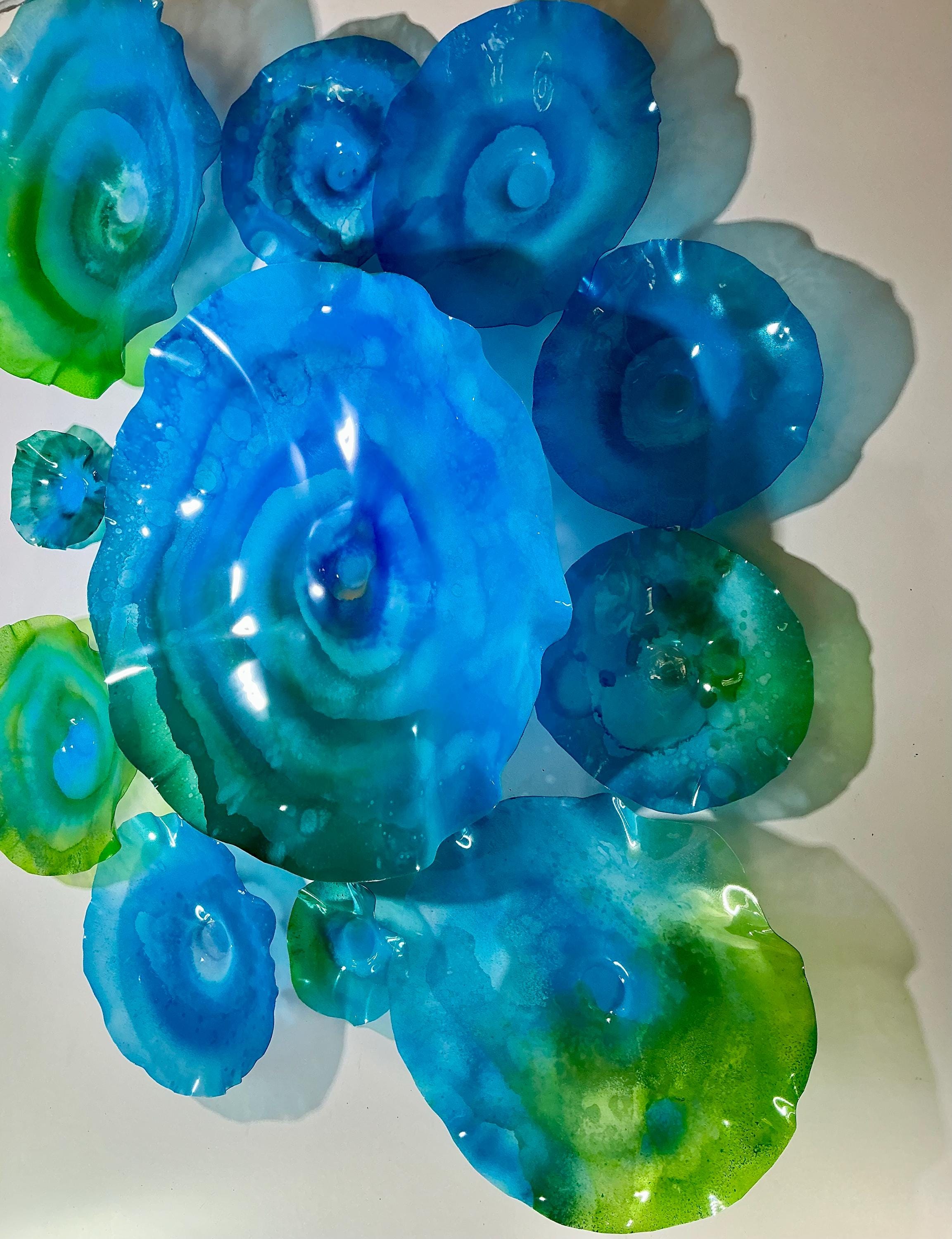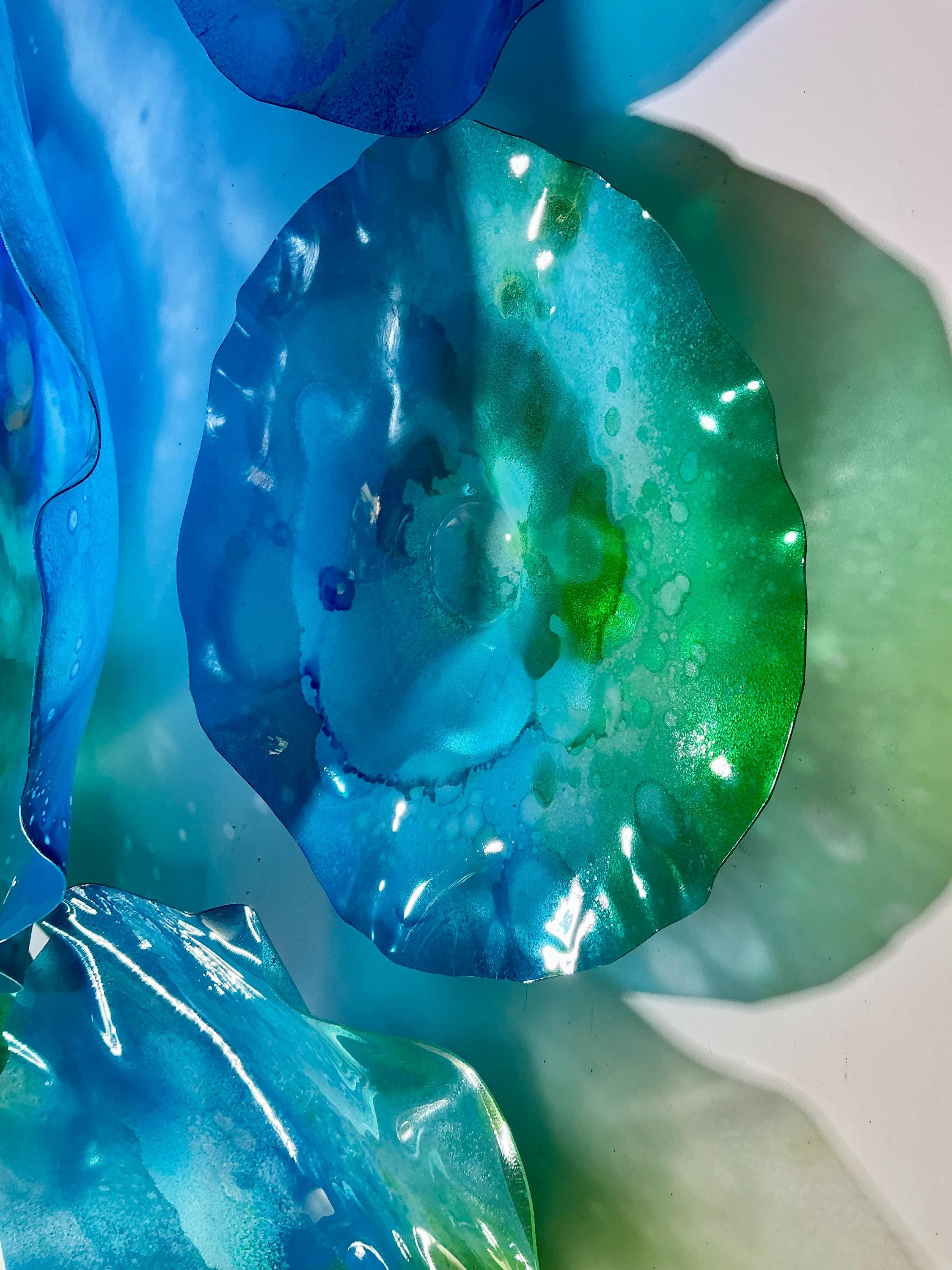 Our wall flowers are made from sustainable recycled PET as in a water bottle. Each piece contains at least 50% recycled polyethylene terphalate (rPET)