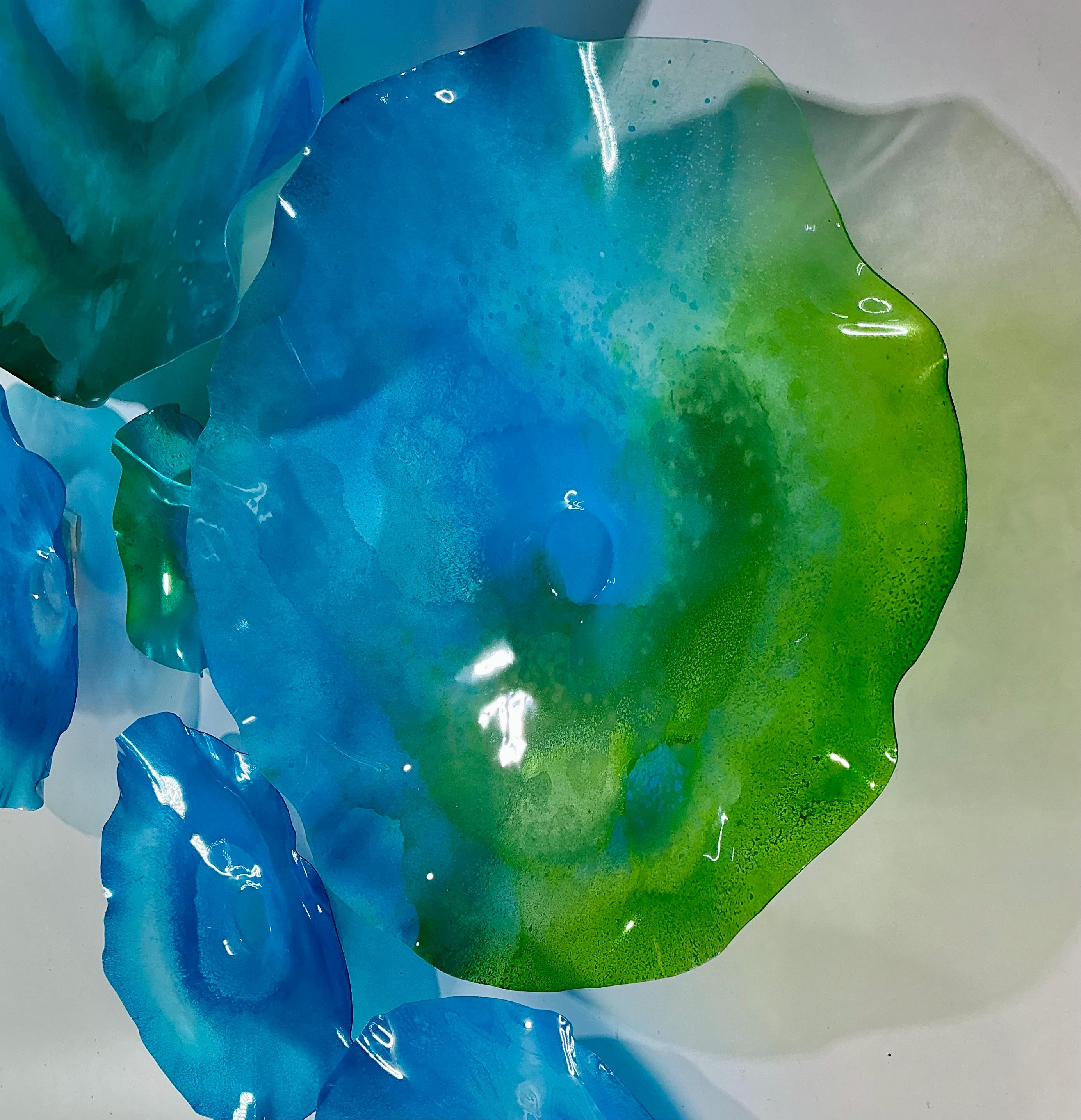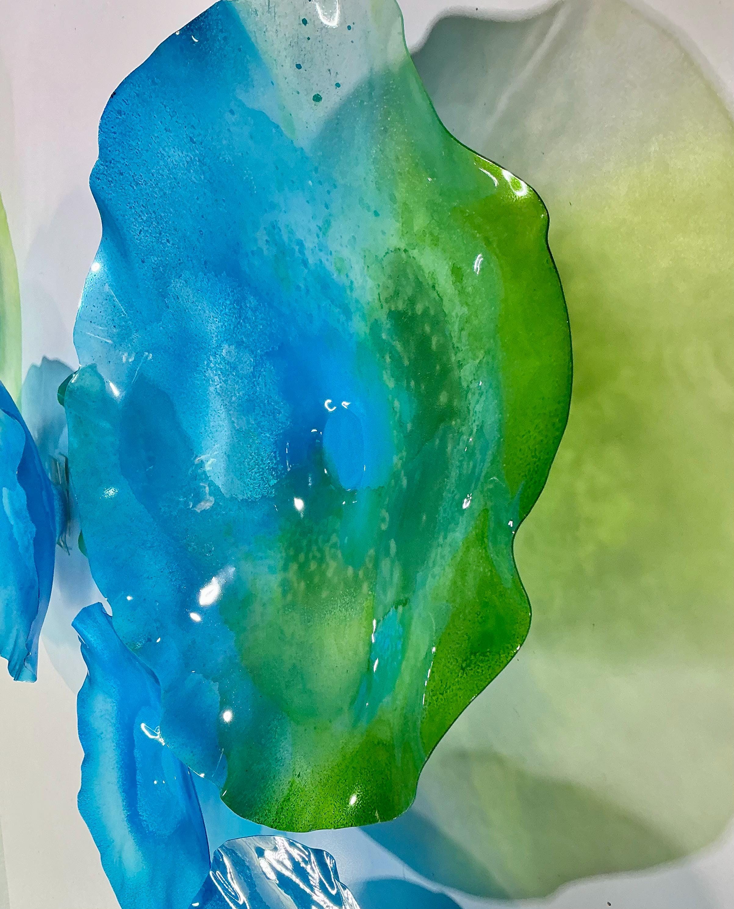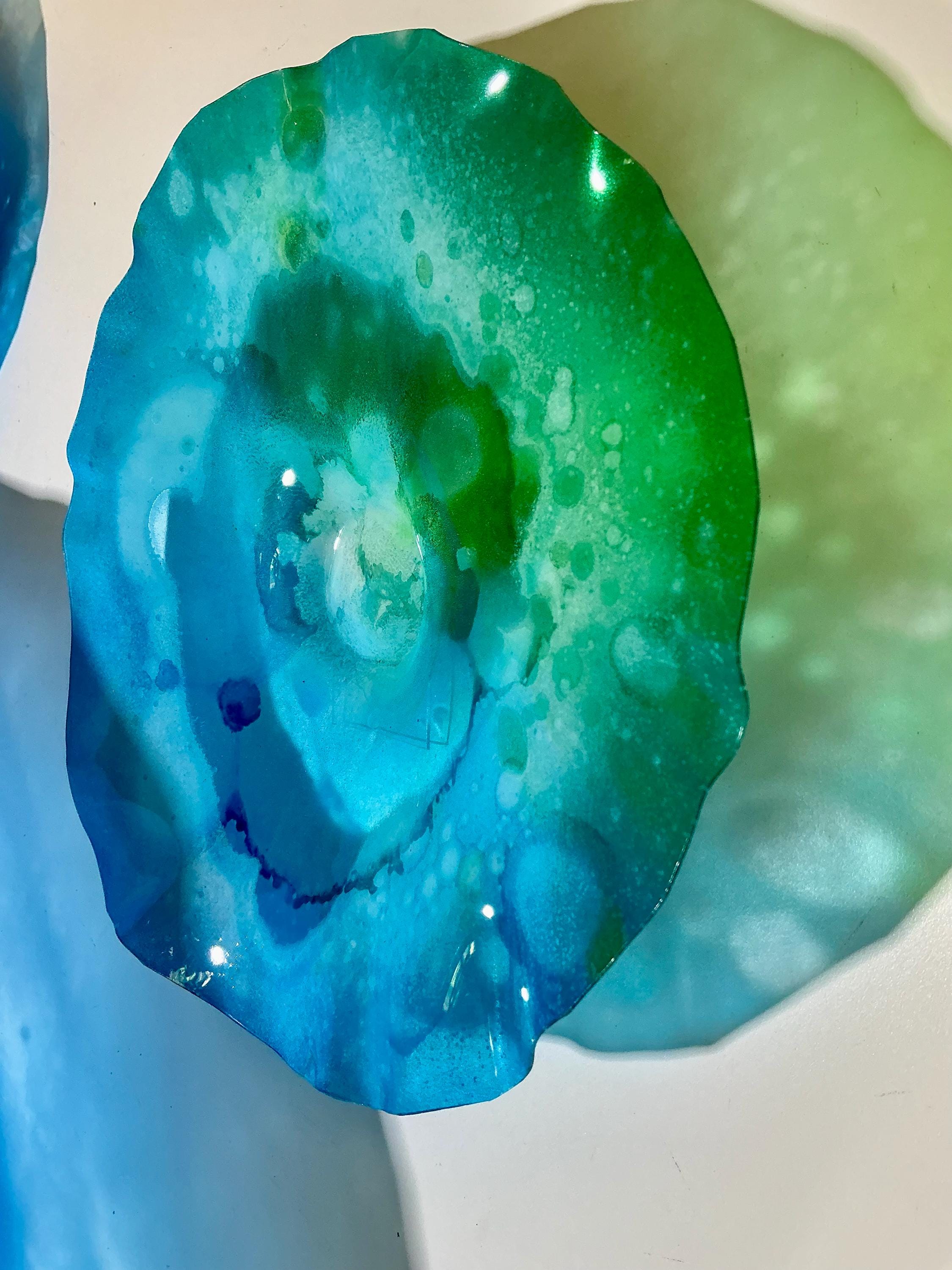 Our wall flowers are made from sustainable recycled PET as in a water bottle. Each piece contains at least 50% recycled polyethylene terphalate (rPET)