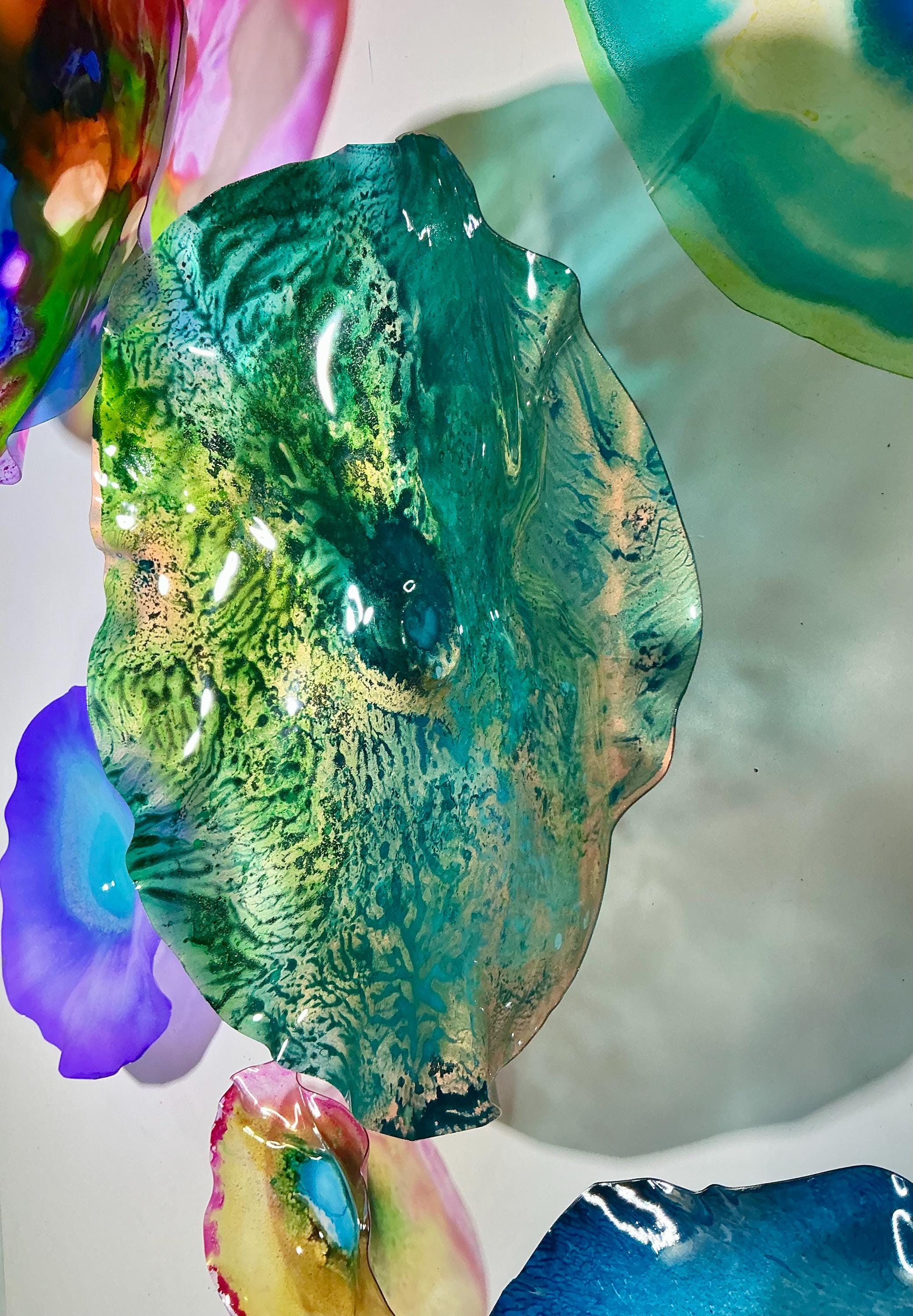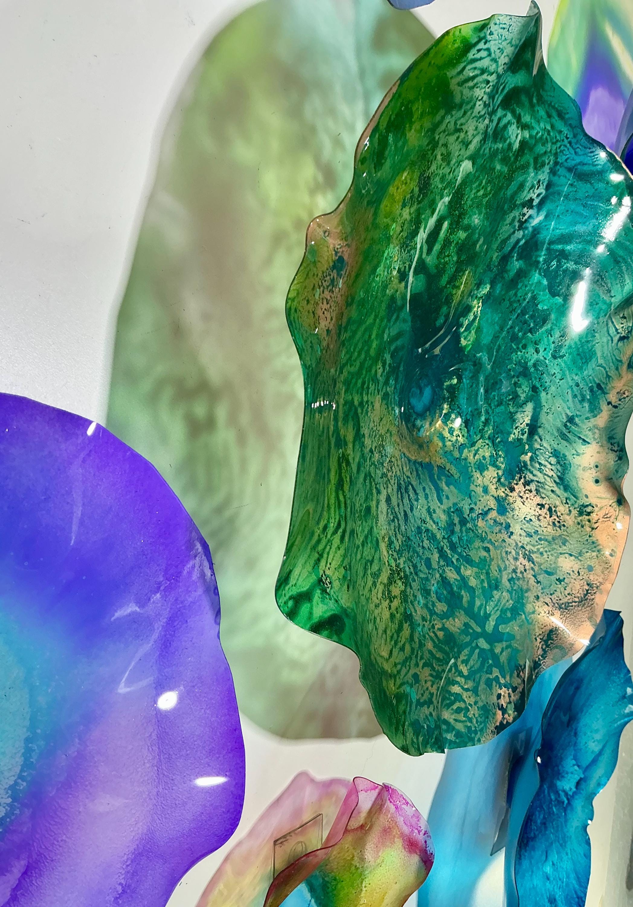 Our wall flowers are made from sustainable recycled PET as in a water bottle. Each piece contains at least 50% recycled polyethylene terphalate (rPET)