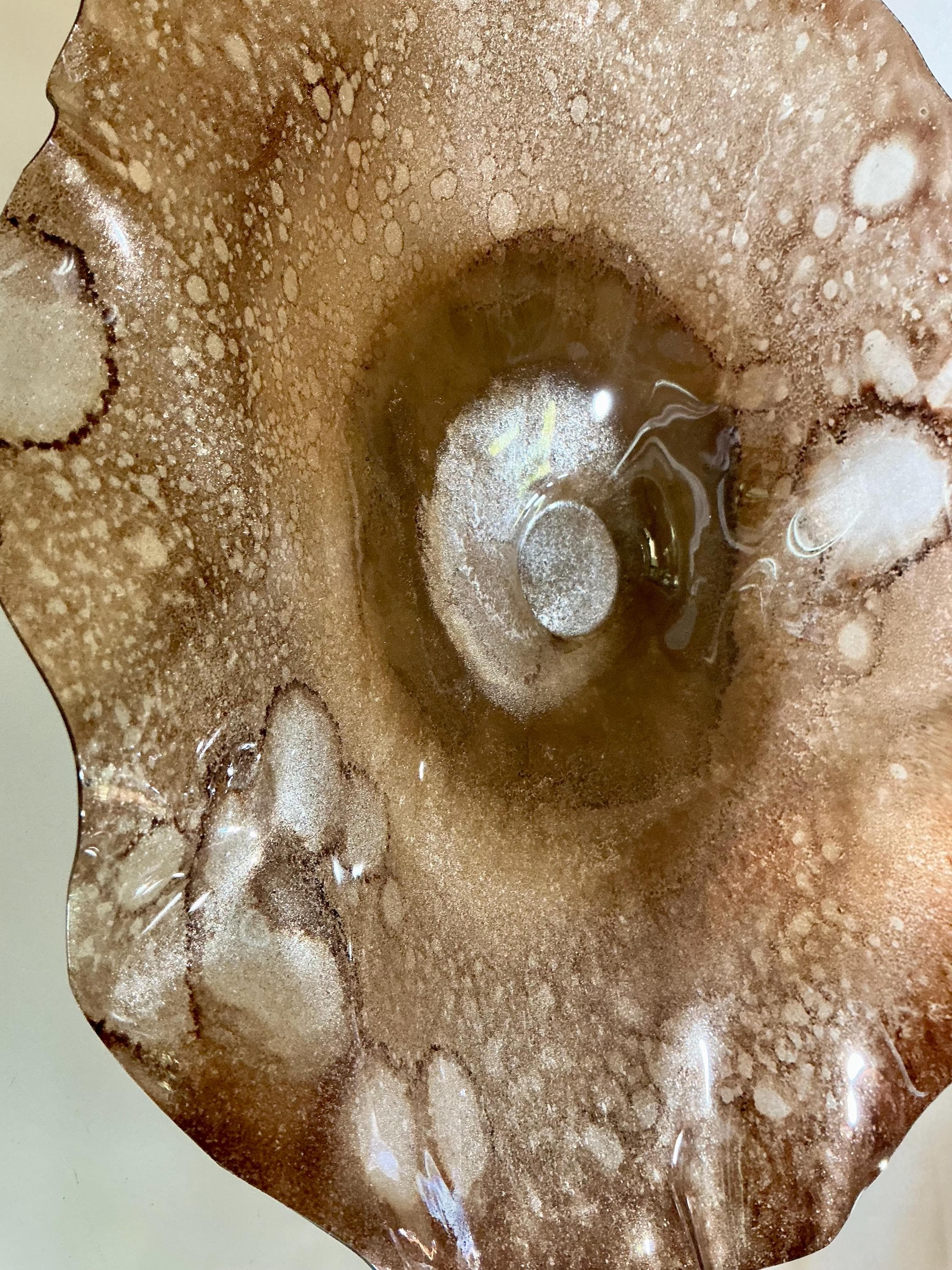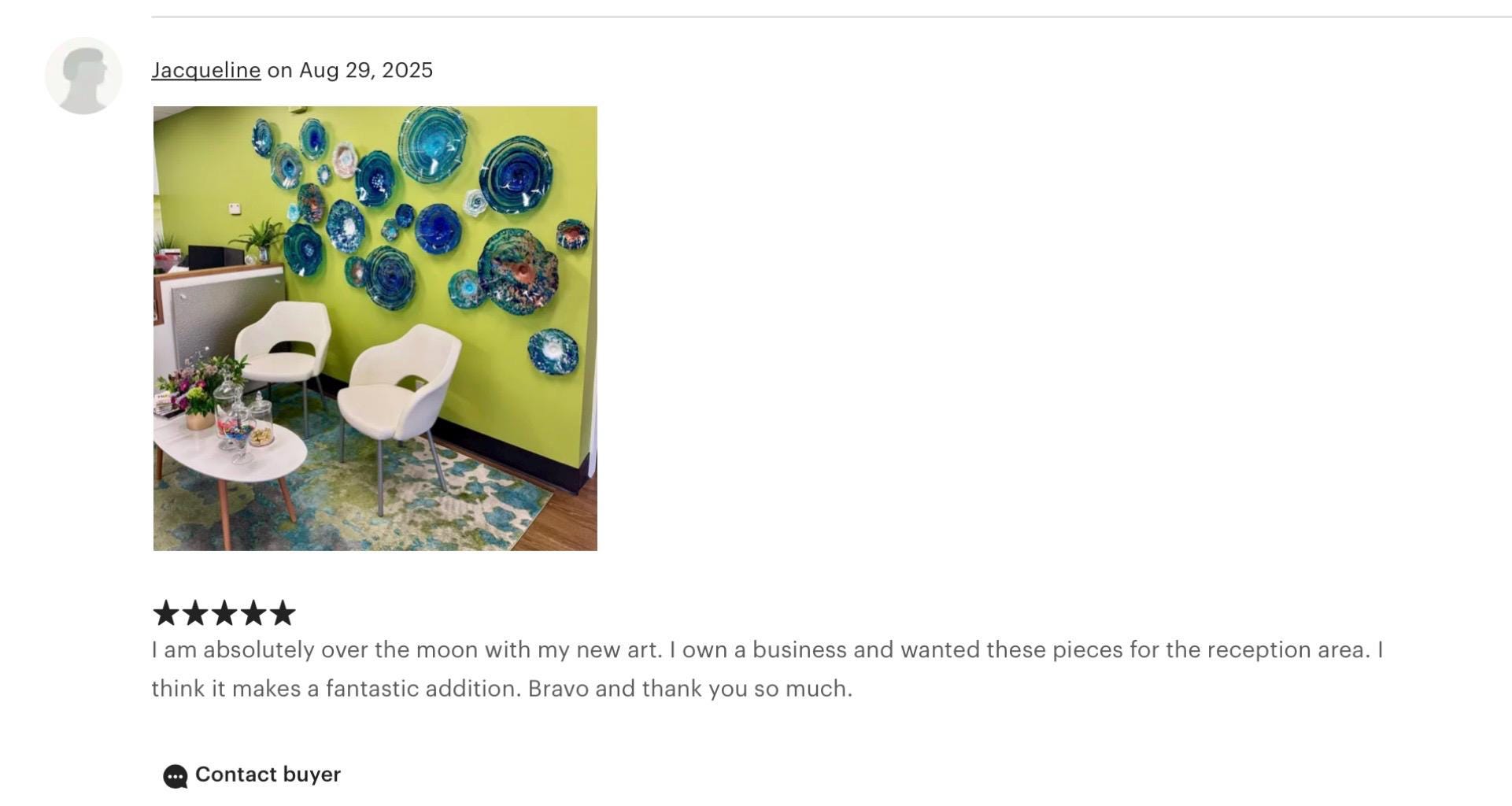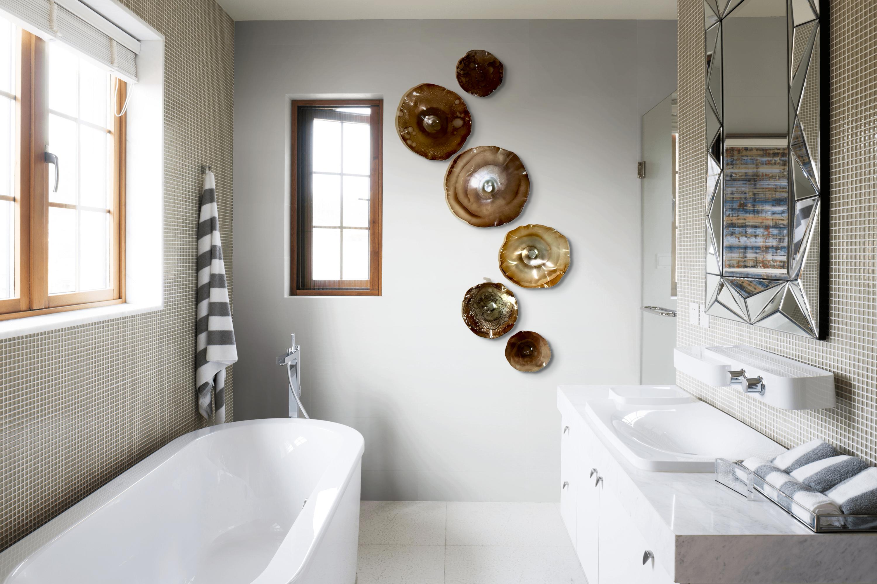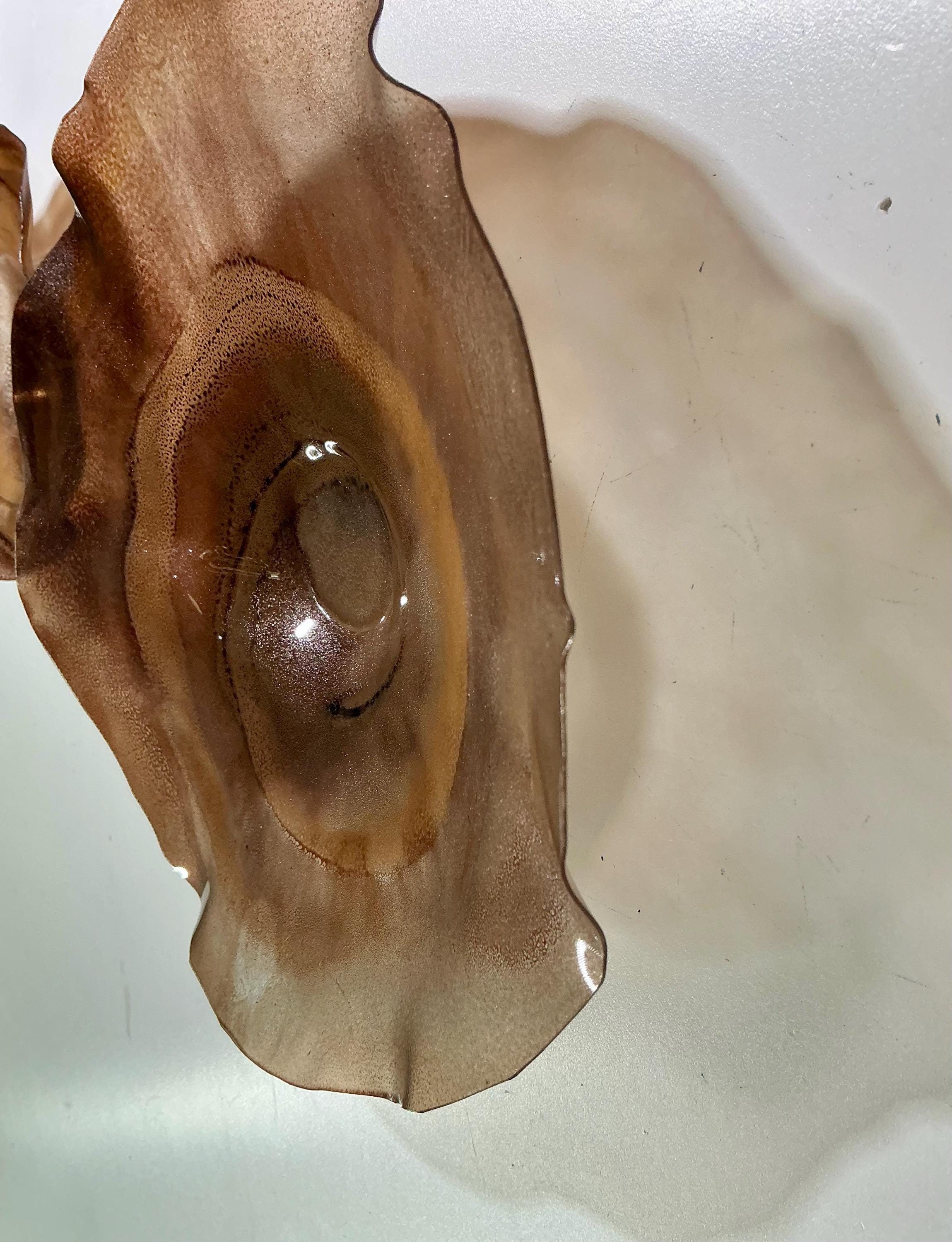 From the wall, they look like glass. The bonuses are that these flowers are light, unbreakable, environmentally friendly, easy to hang, and have no damage to the wall due to drilling for would-be-heavy traditional glass flowers.