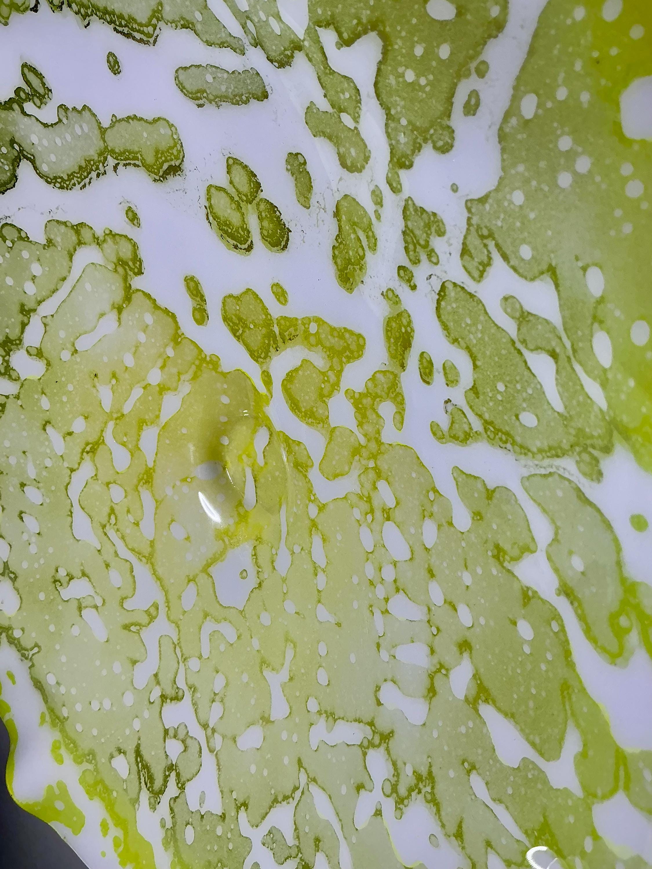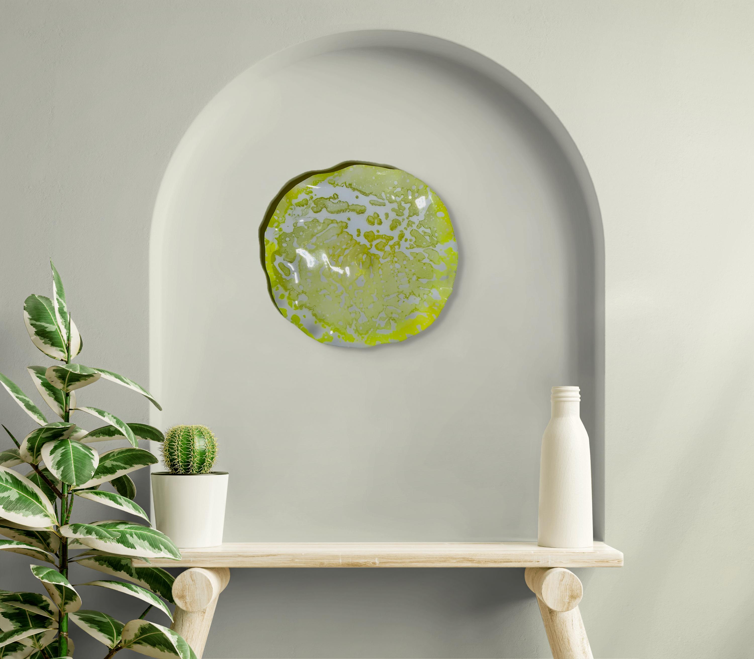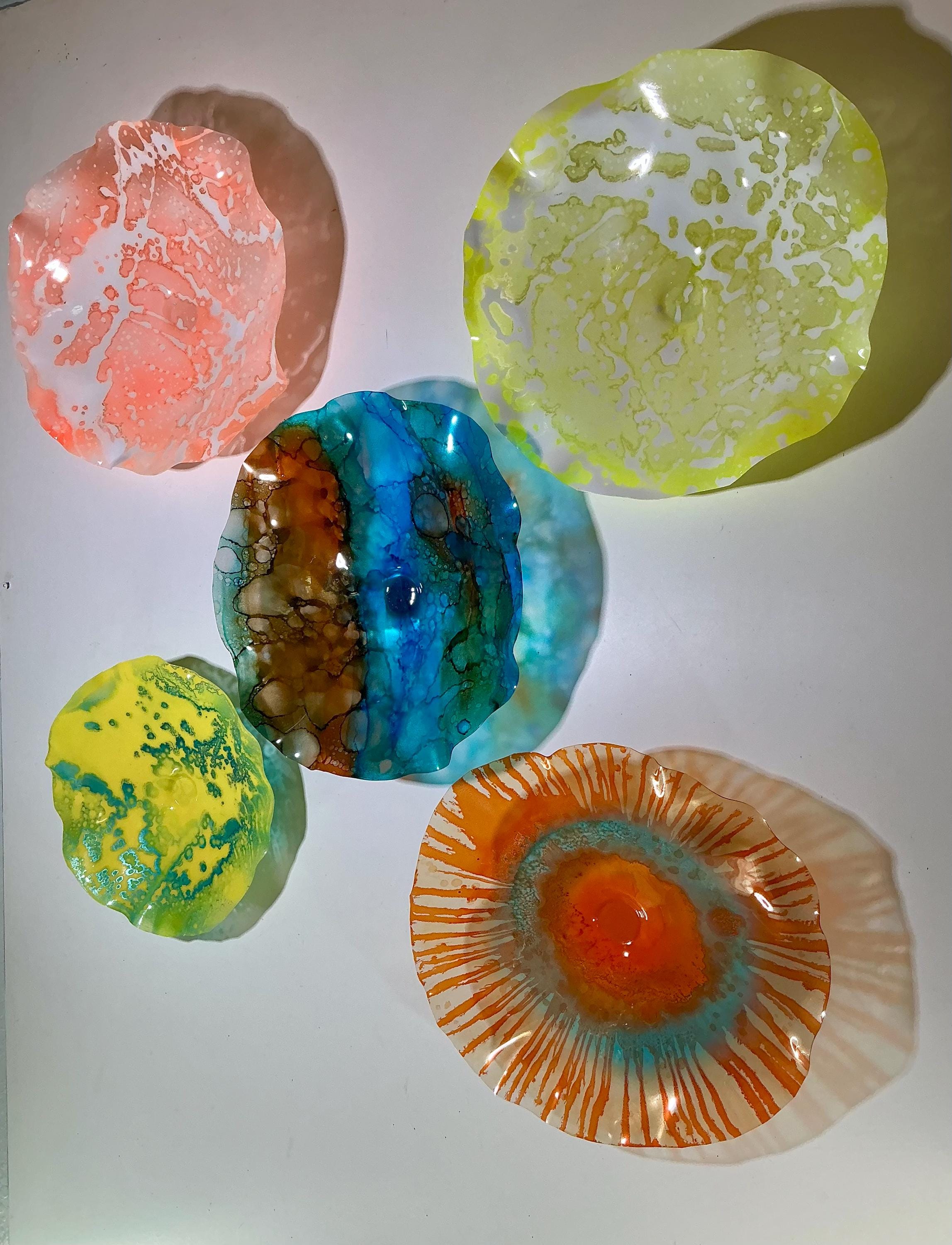 Each collectible piece is unique, no two are alike. This permanent, colorful, eye catching art looks like glass. It shimmers in the light resembling water. They are very DURABLE AND LIGHTWEIGHT. Great for indoor or outdoor decorating.