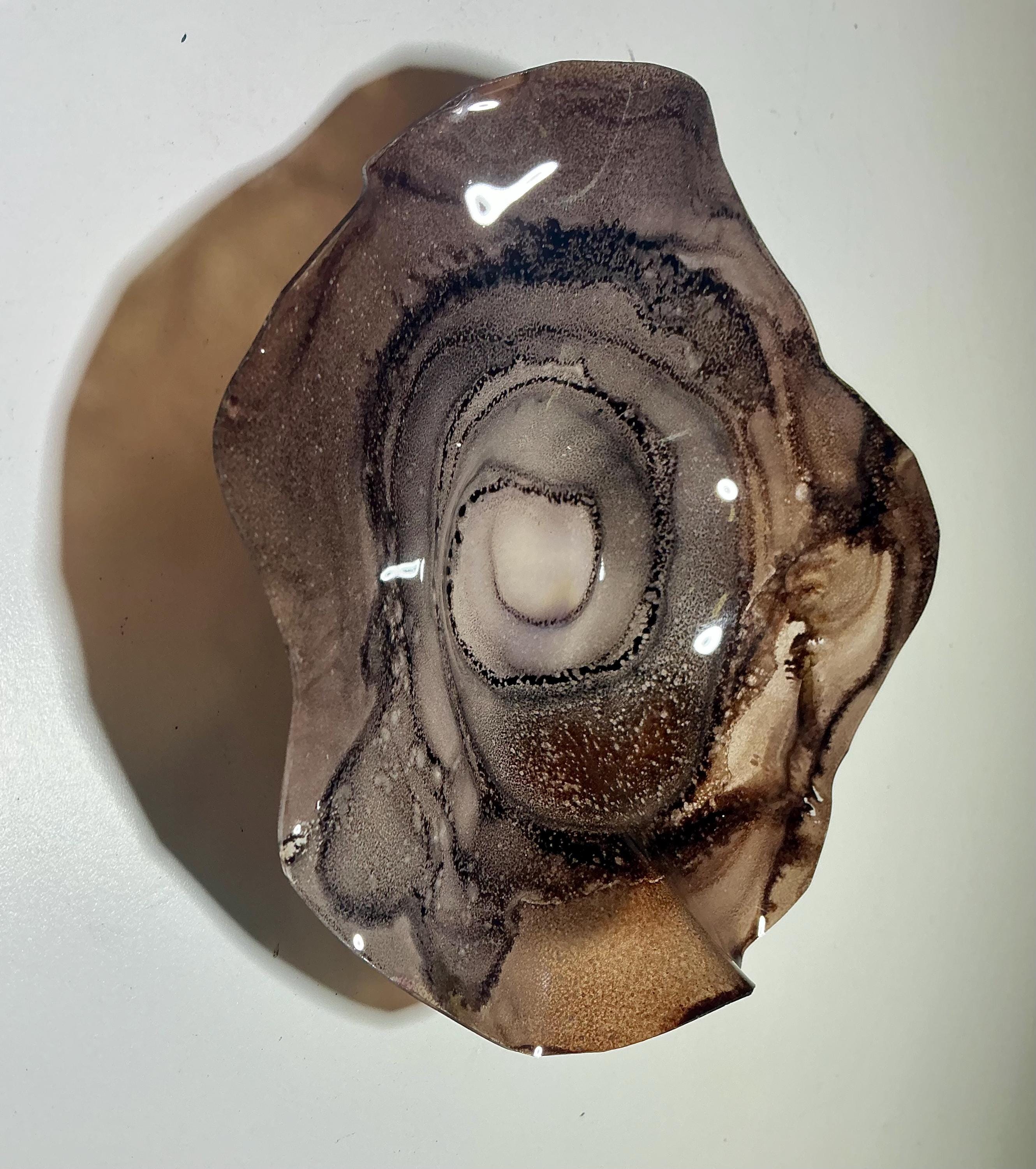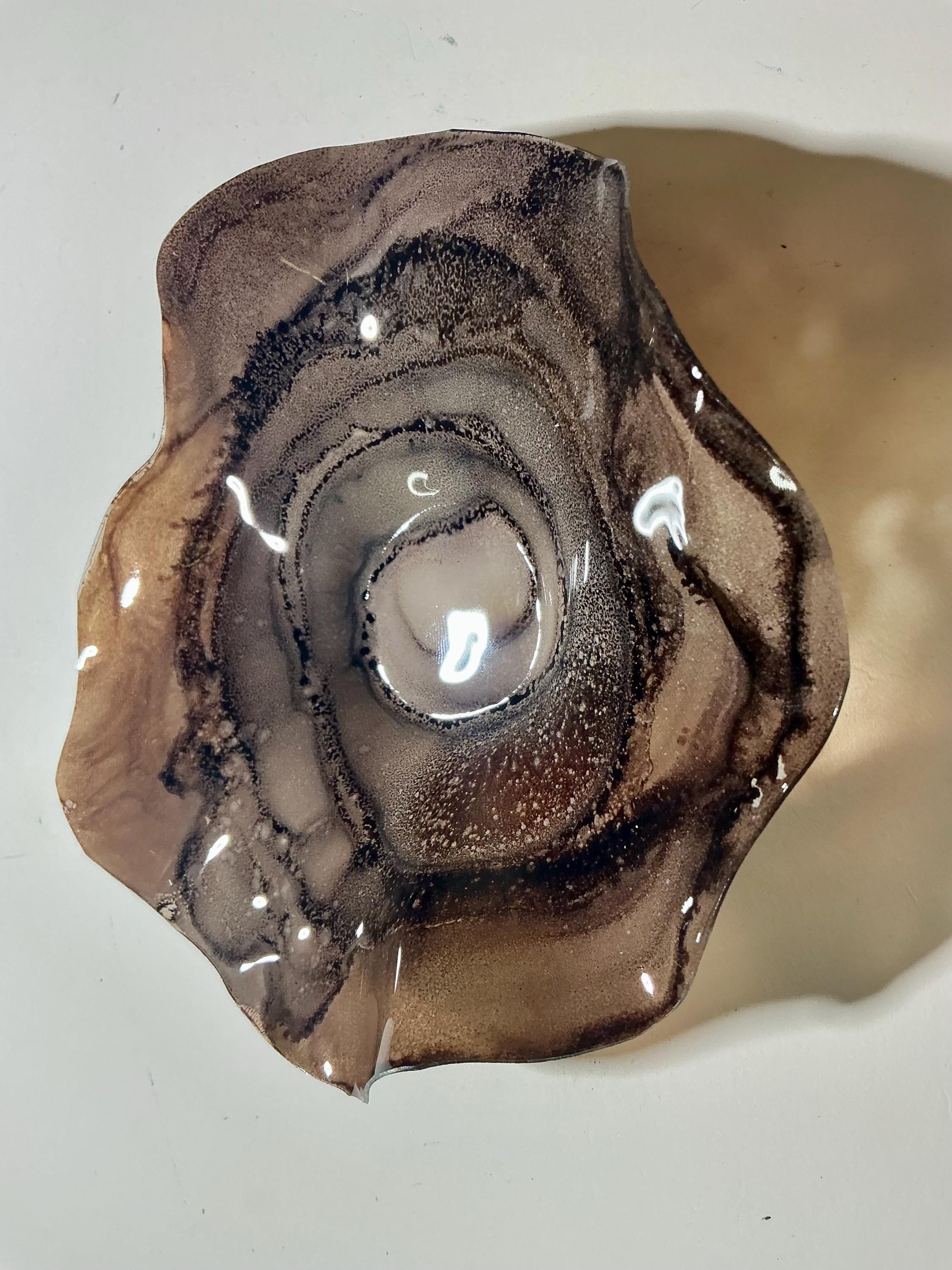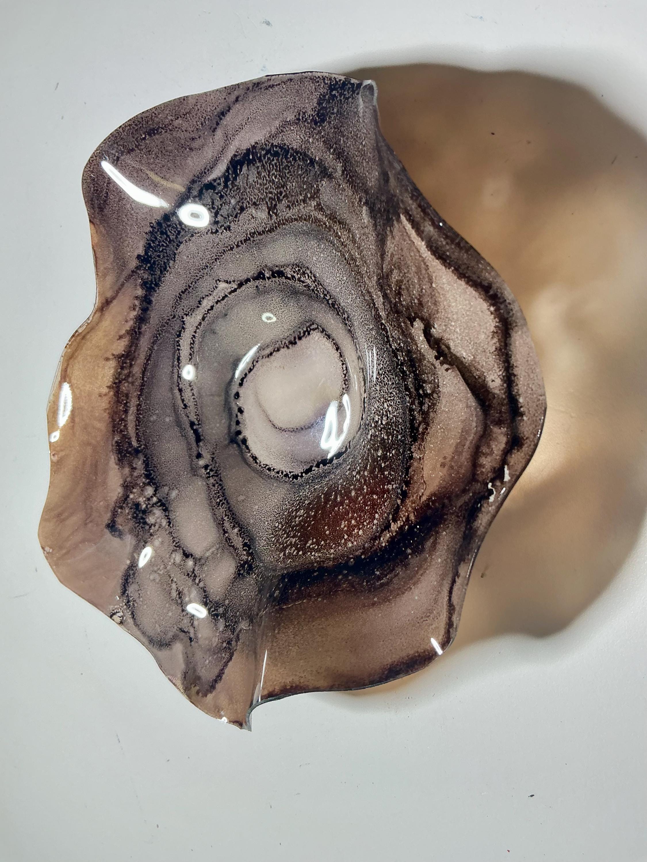 Eye catching wall flower brilliant earth tone blend of chocolate browns . The light filters through casting a colorful glow to the hanging surface.