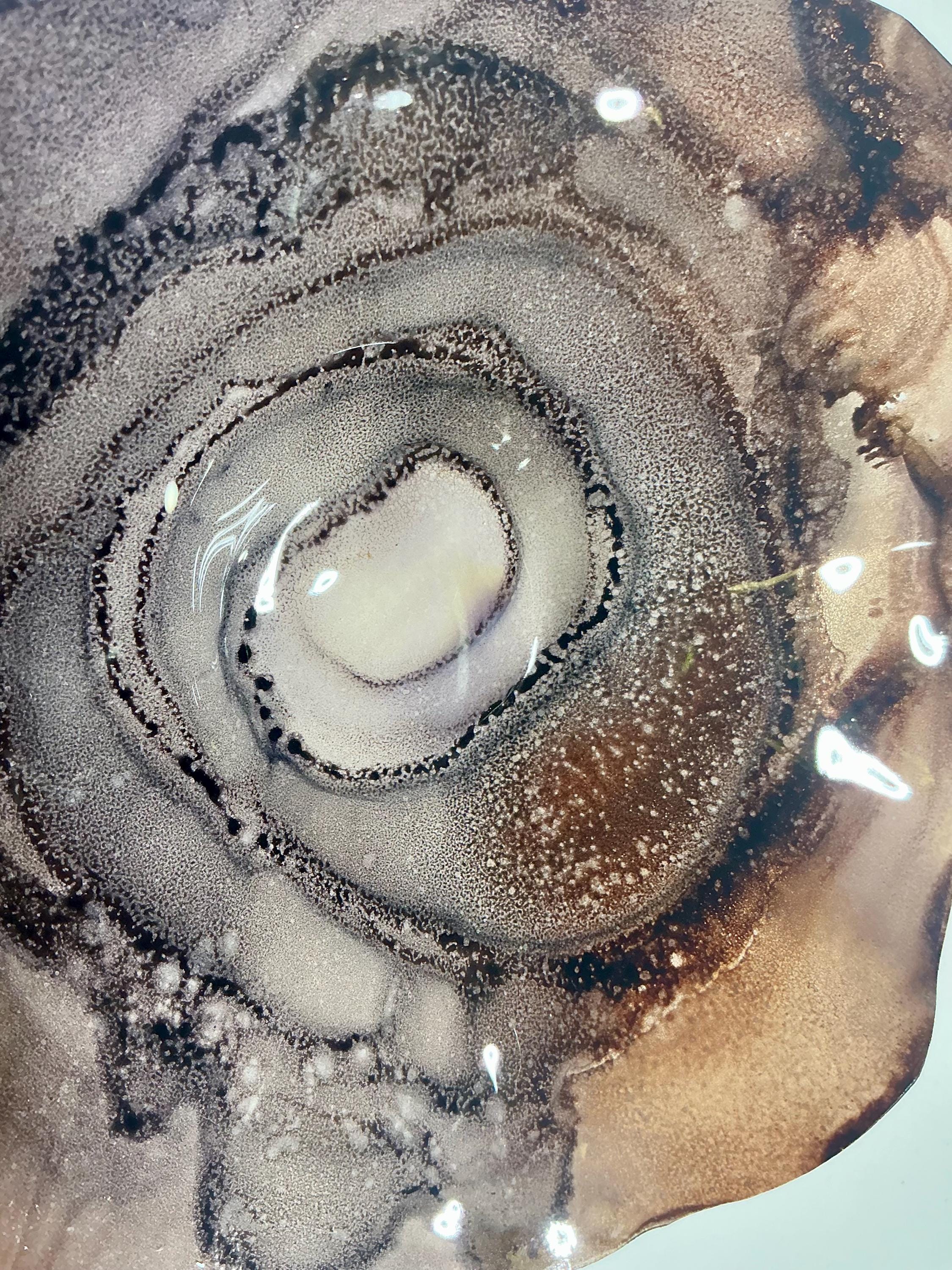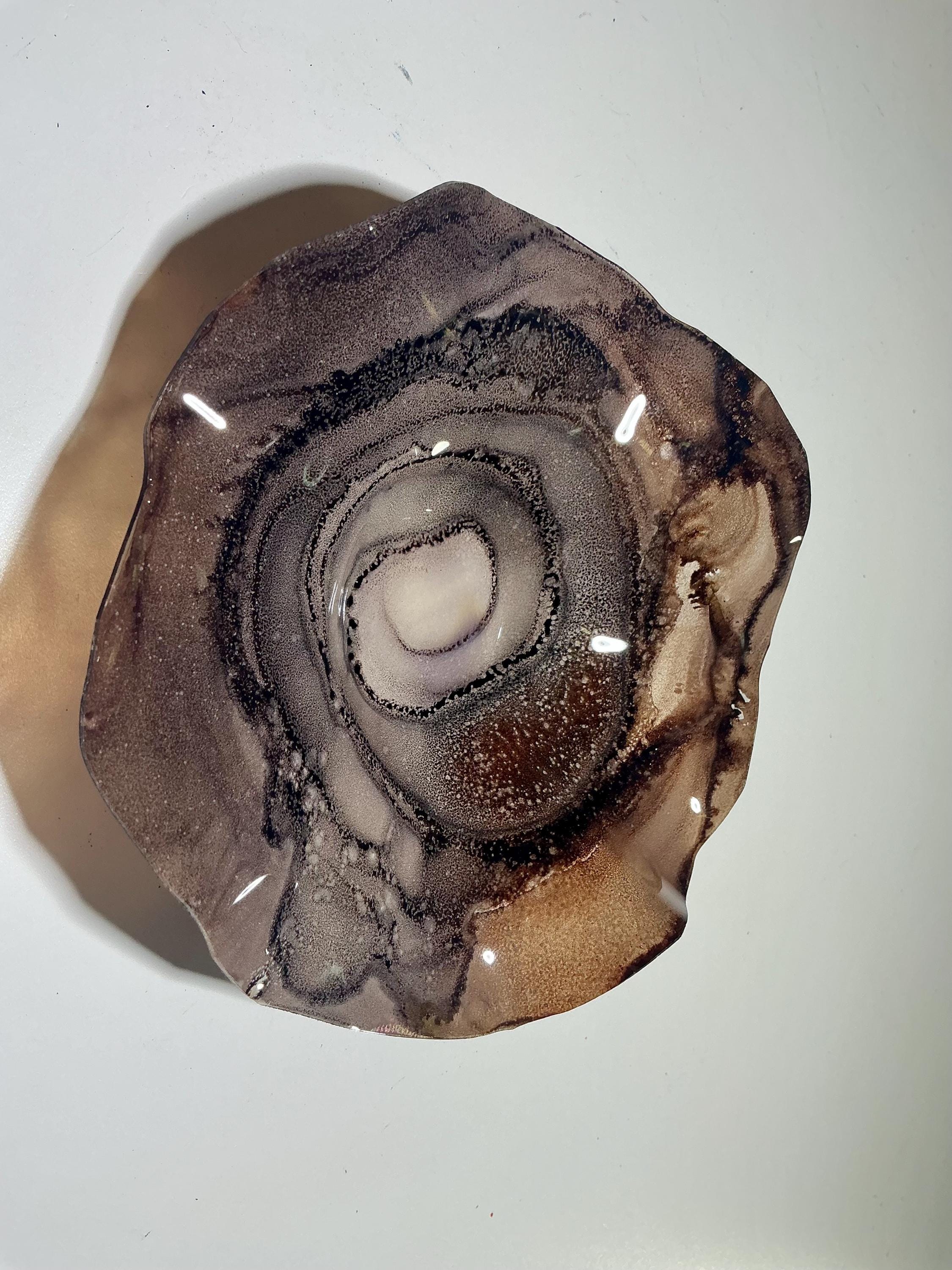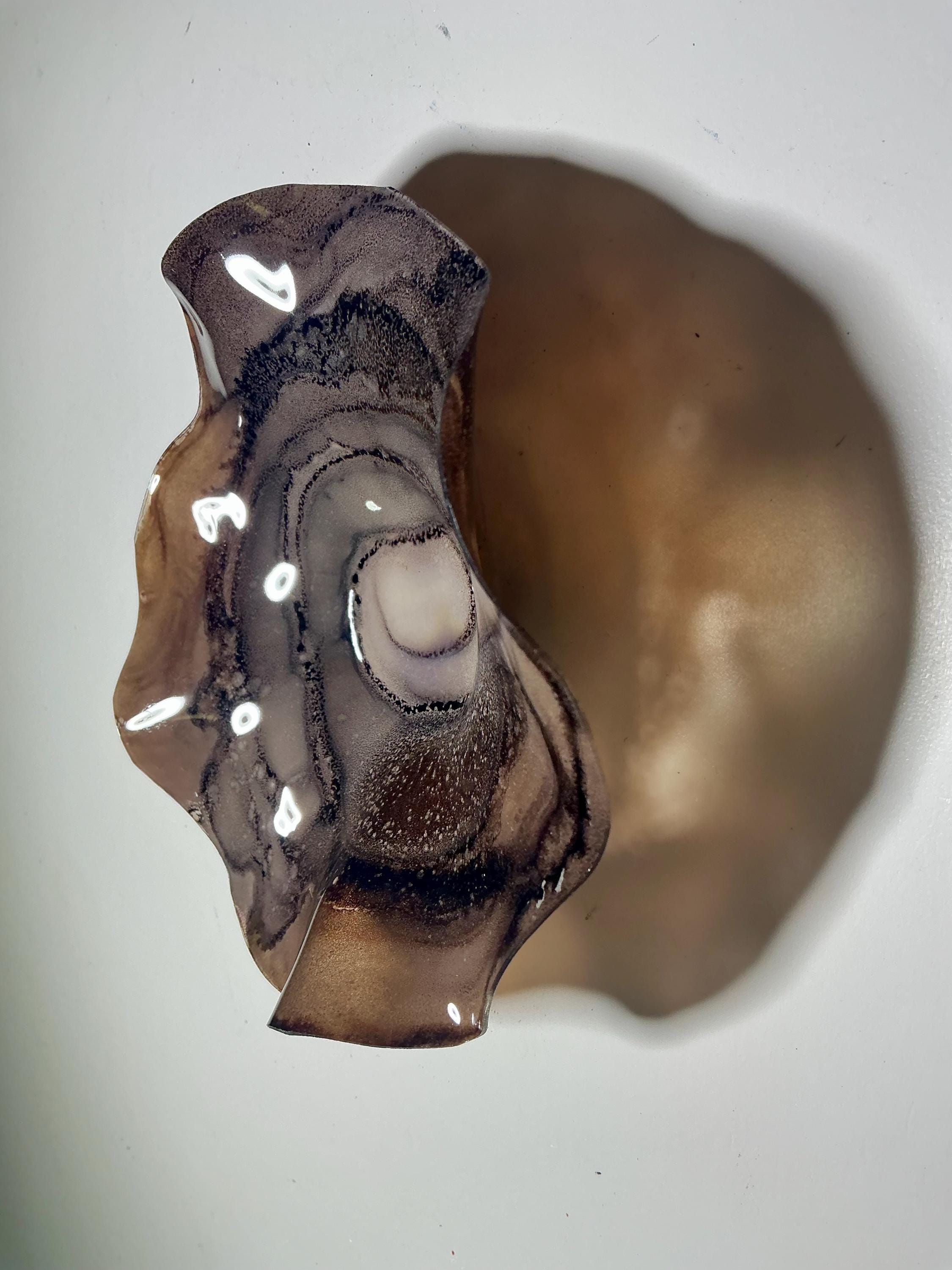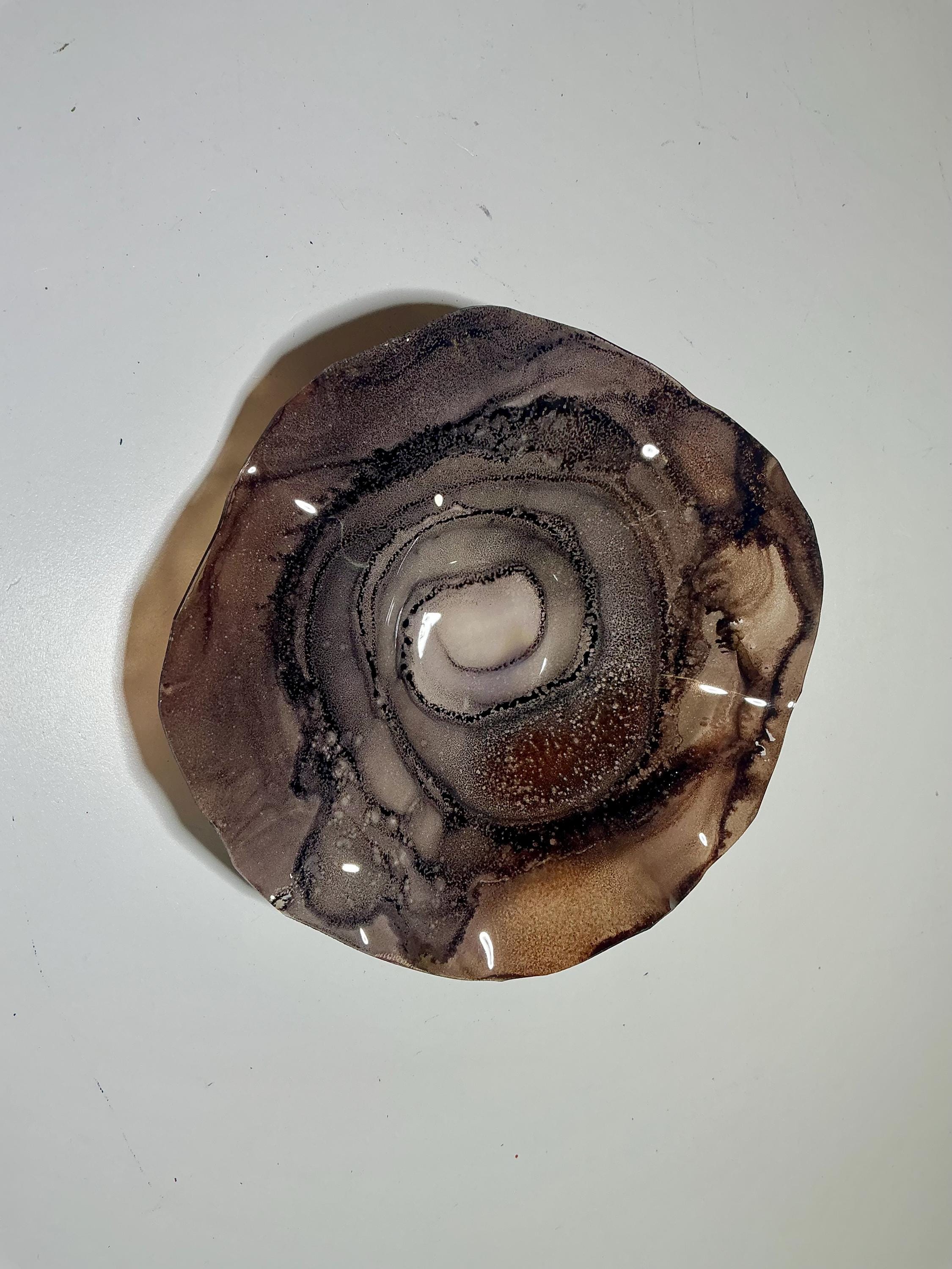 Eye catching wall flower brilliant earth tone blend of chocolate browns . The light filters through casting a colorful glow to the hanging surface.