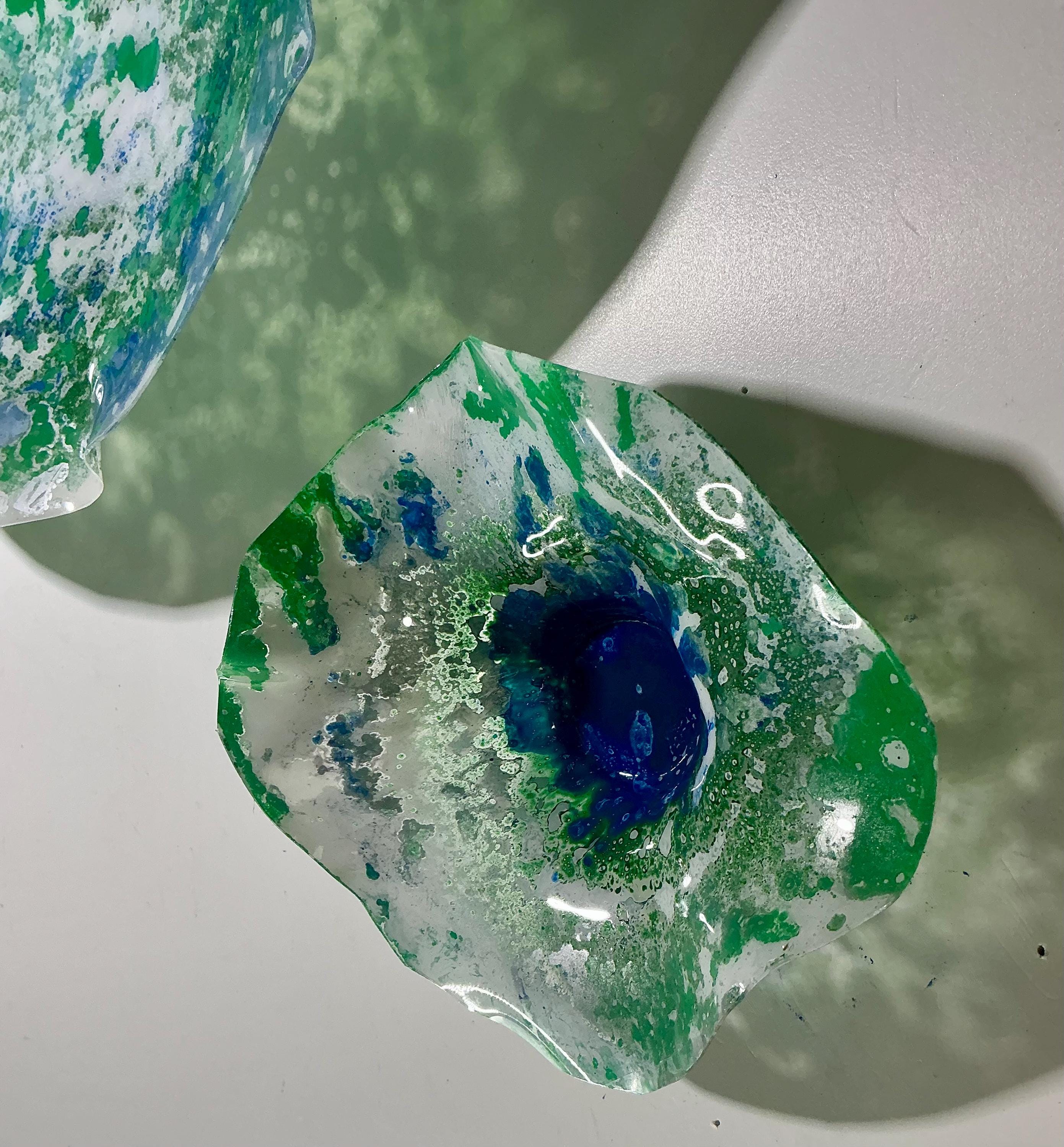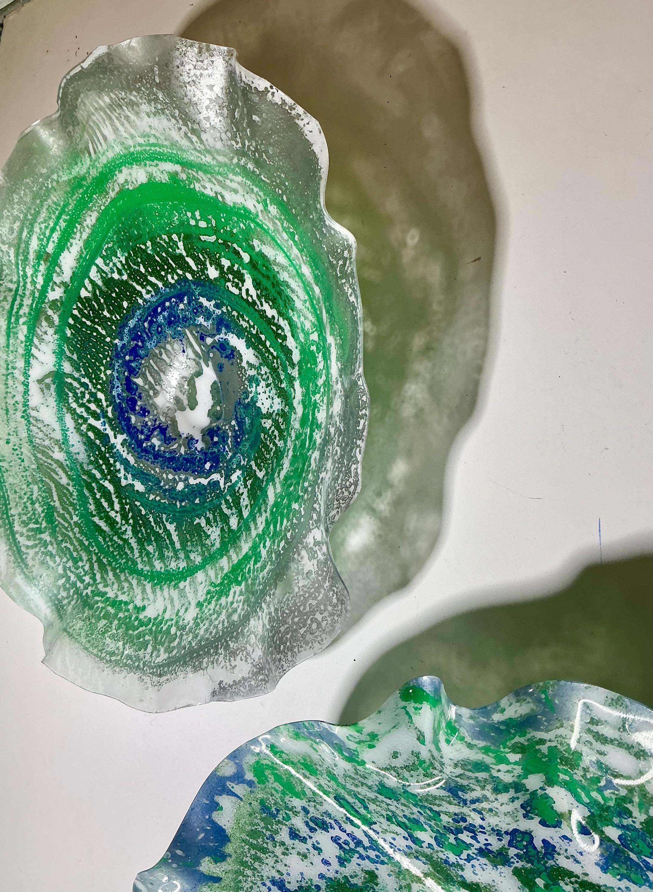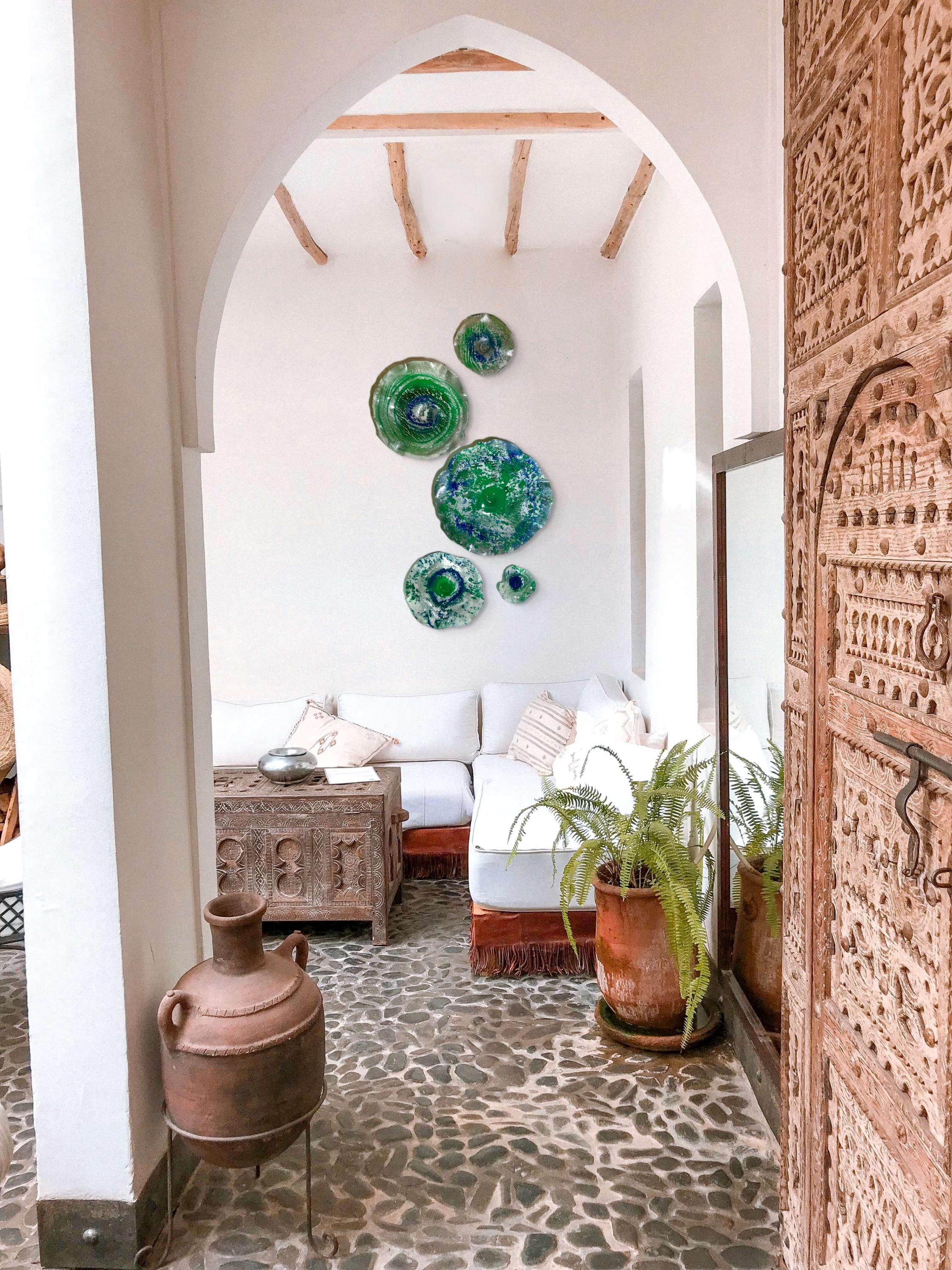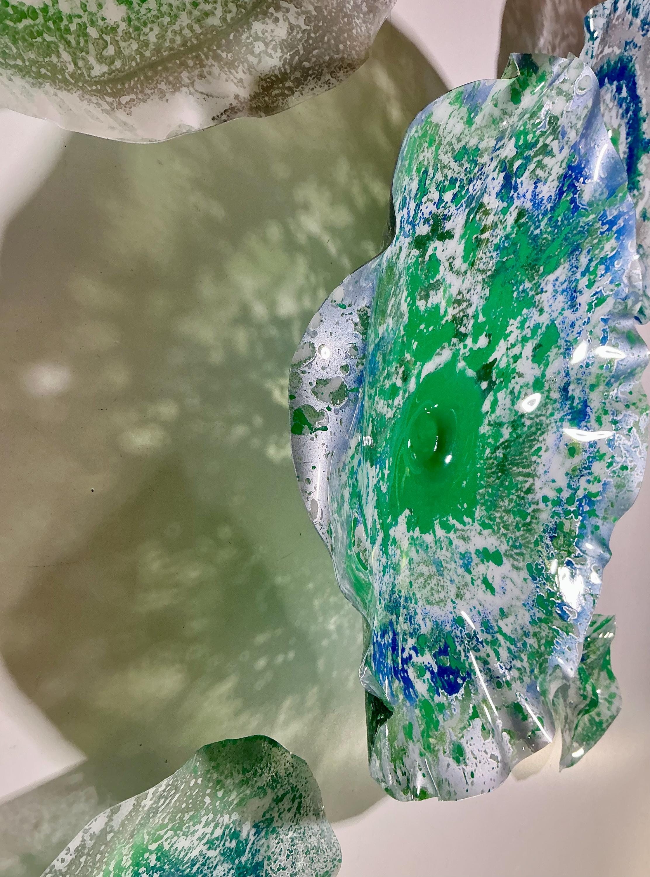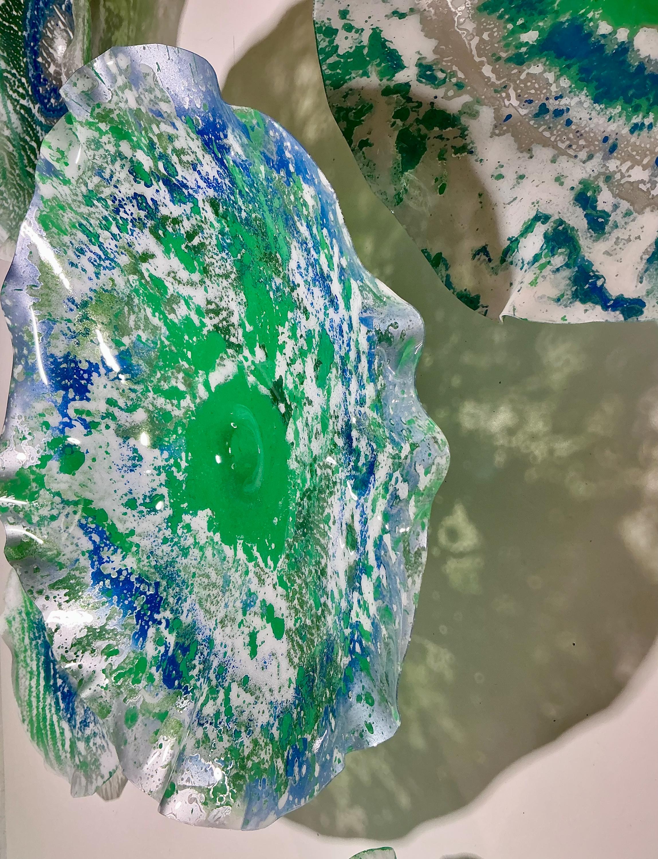 Transform your space with this unique Set of Five Wall Murals, showcasing stunning shades of green, silver, blue, and white. Handmade from upcycled polymer, each piece embodies a beachy decor vibe, making them perfect for adding a touch of coastal charm to any interior. These one-of-a-kind murals are not just art; they're easy to hang and will surely be a conversation starter. Elevate your home decor with this eco-friendly, artistic statement today!