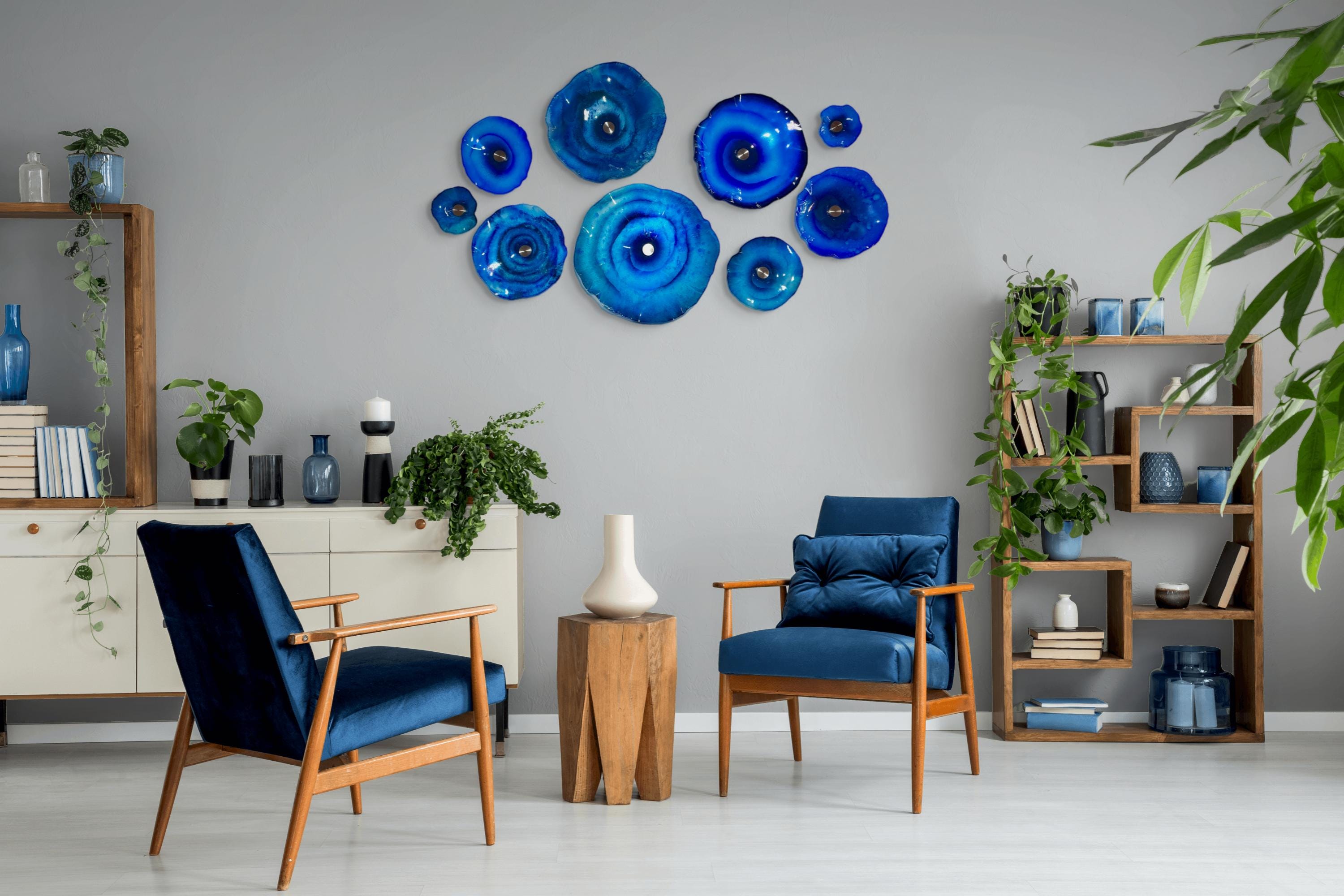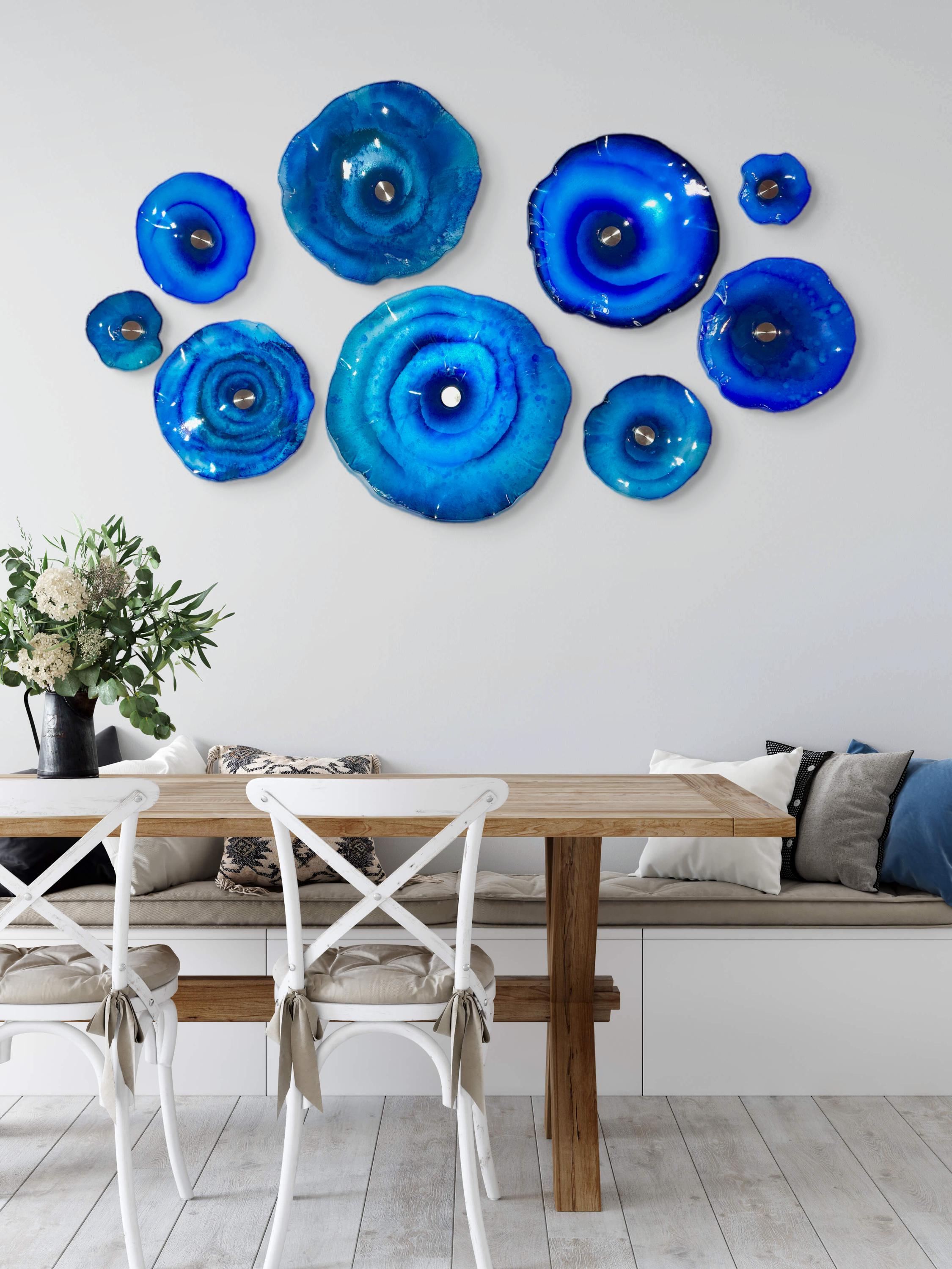 Transform your space with a stunning cobalt blues wallflower mural—designed to shimmer like glass and bring a fresh coastal feel to any room.