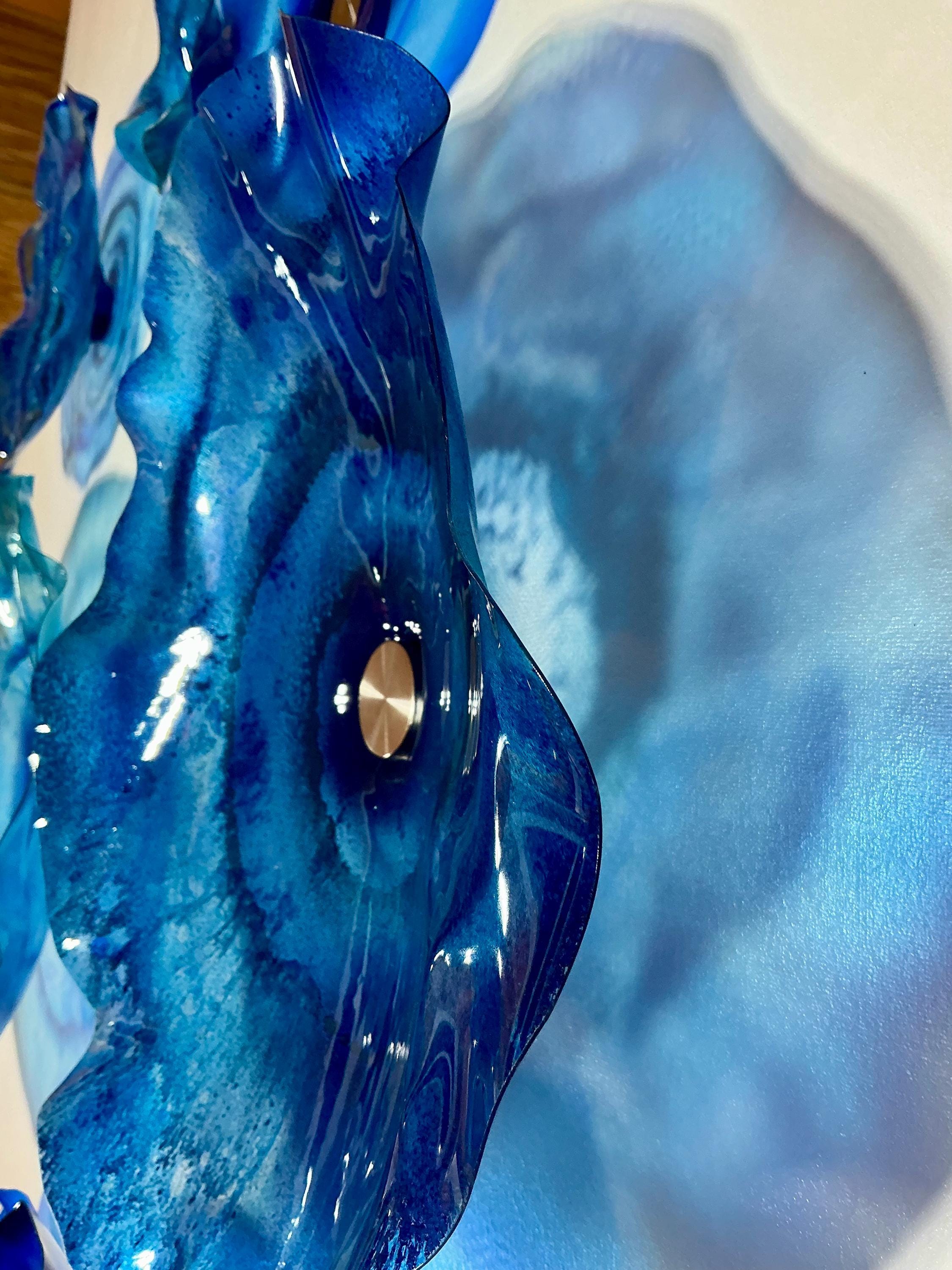 Each piece is handcrafted from recycled PET polymer (like water bottles), giving you the beauty of glass without the weight or fragility. From a distance, they look like glass—but they’re lightweight, unbreakable, eco-friendly, and easy to hang. All hardware included with purchase.