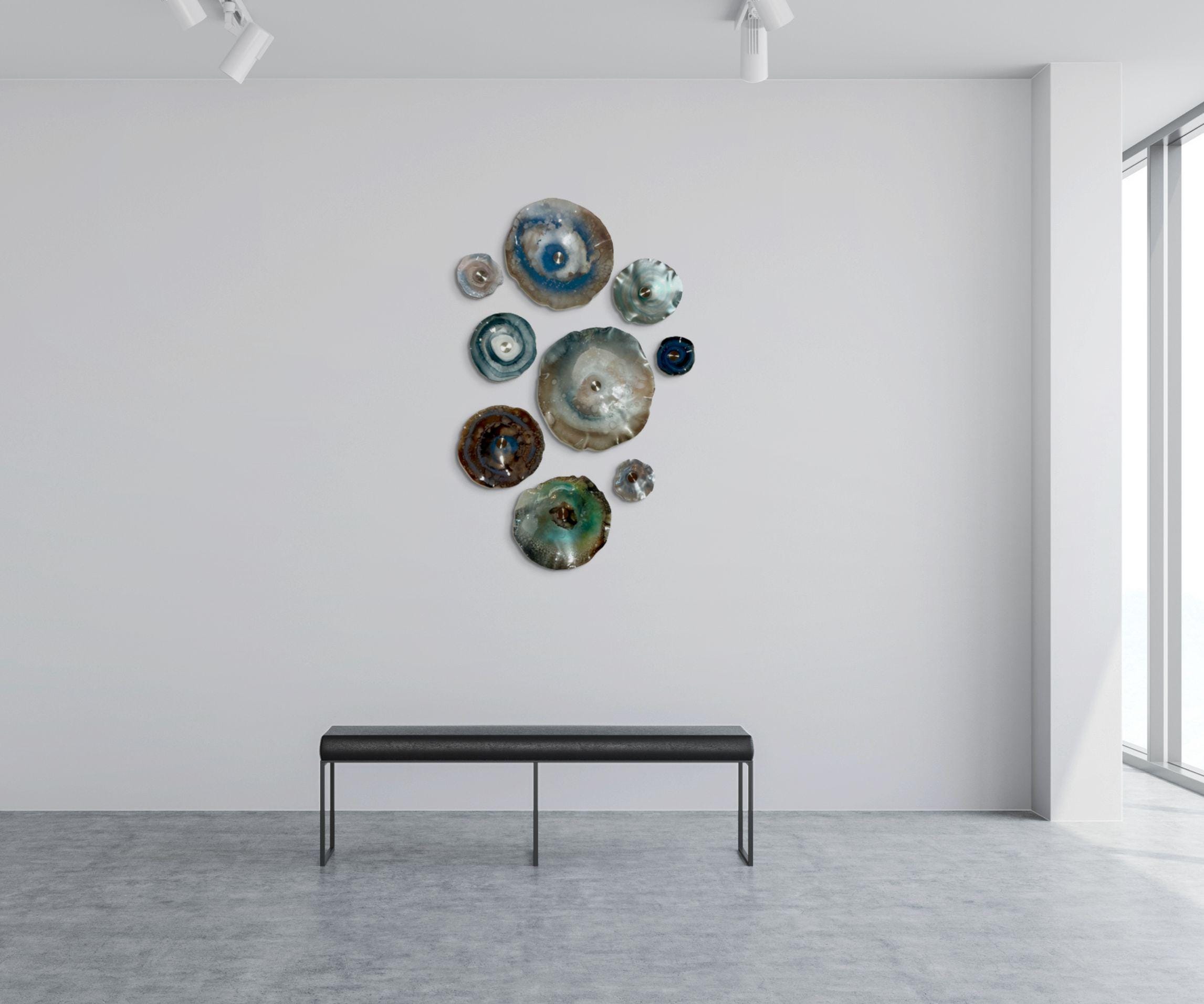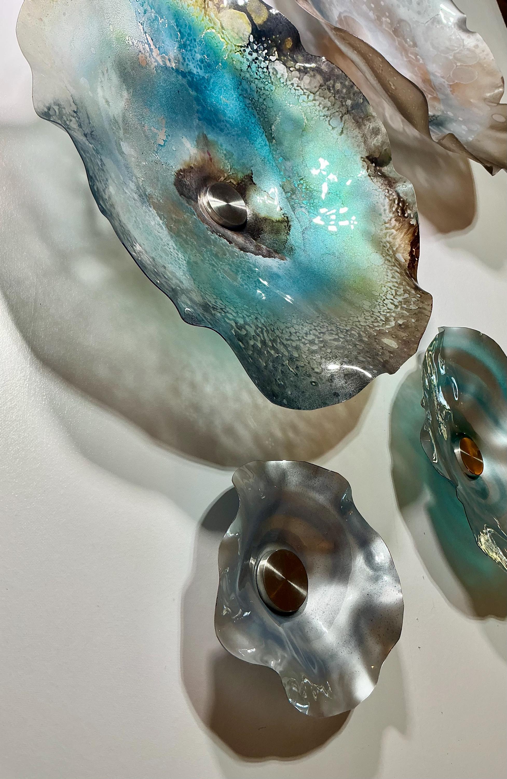 Each piece is handcrafted from recycled PET polymer (like water bottles), giving you the beauty of glass without the weight or fragility. From a distance, they look like glass—but they’re lightweight, unbreakable, eco-friendly, and easy to hang. All hardware included with purchase.