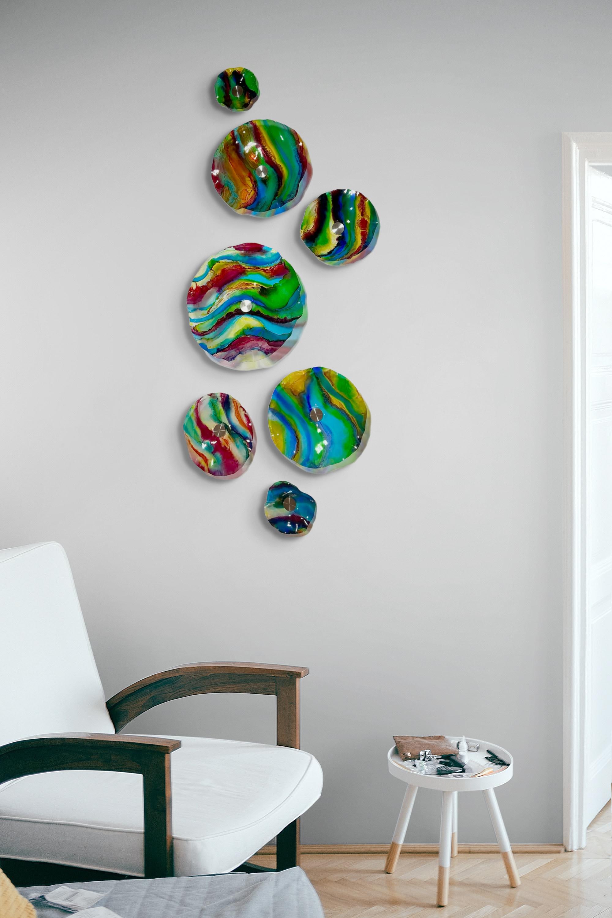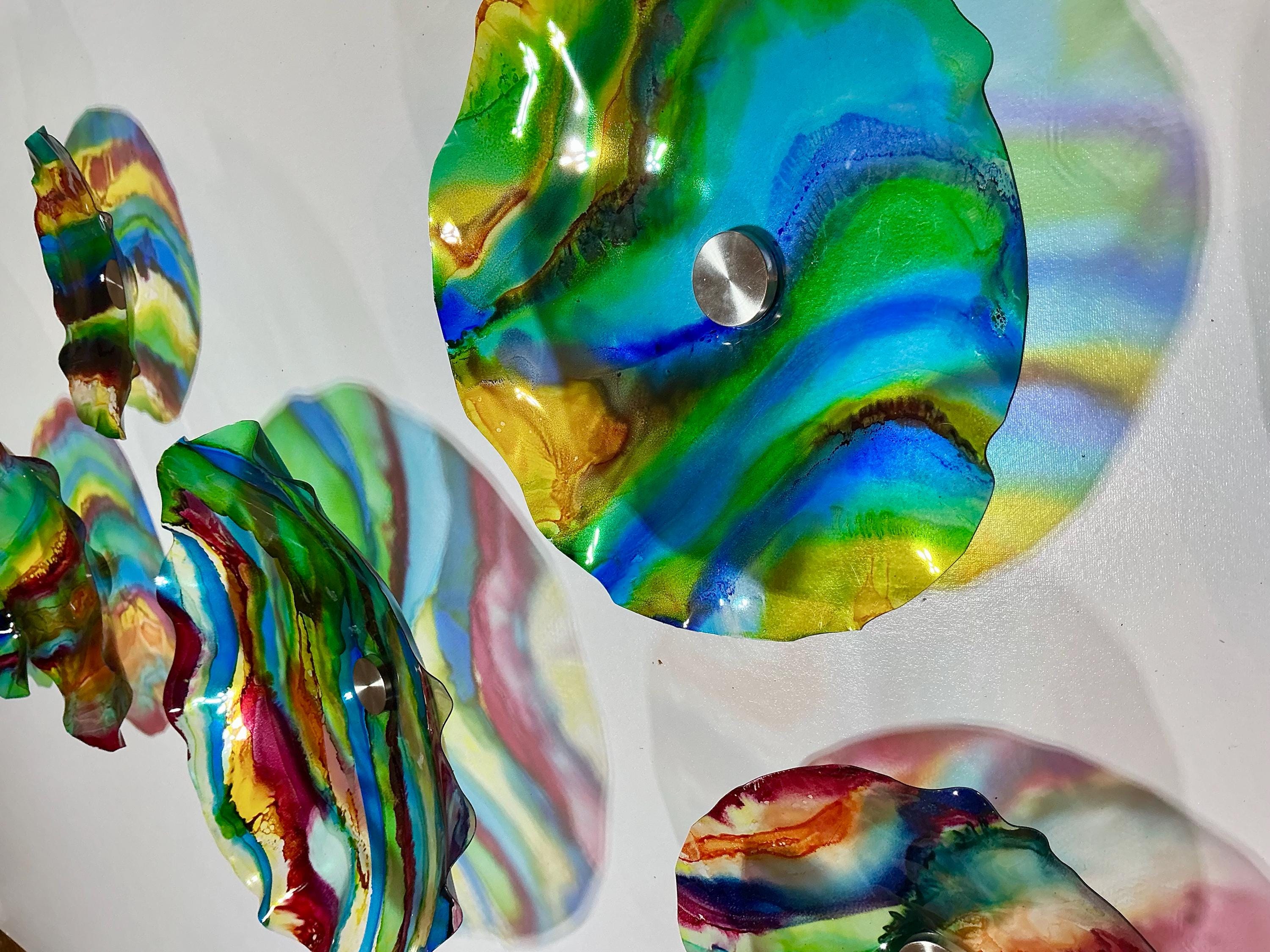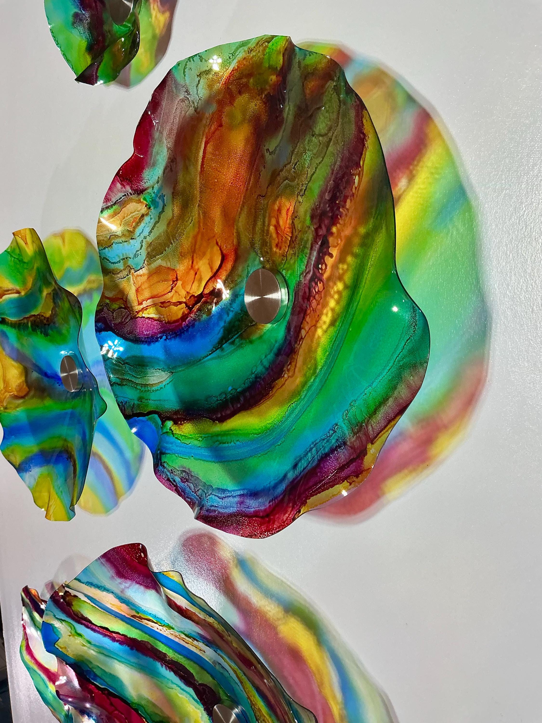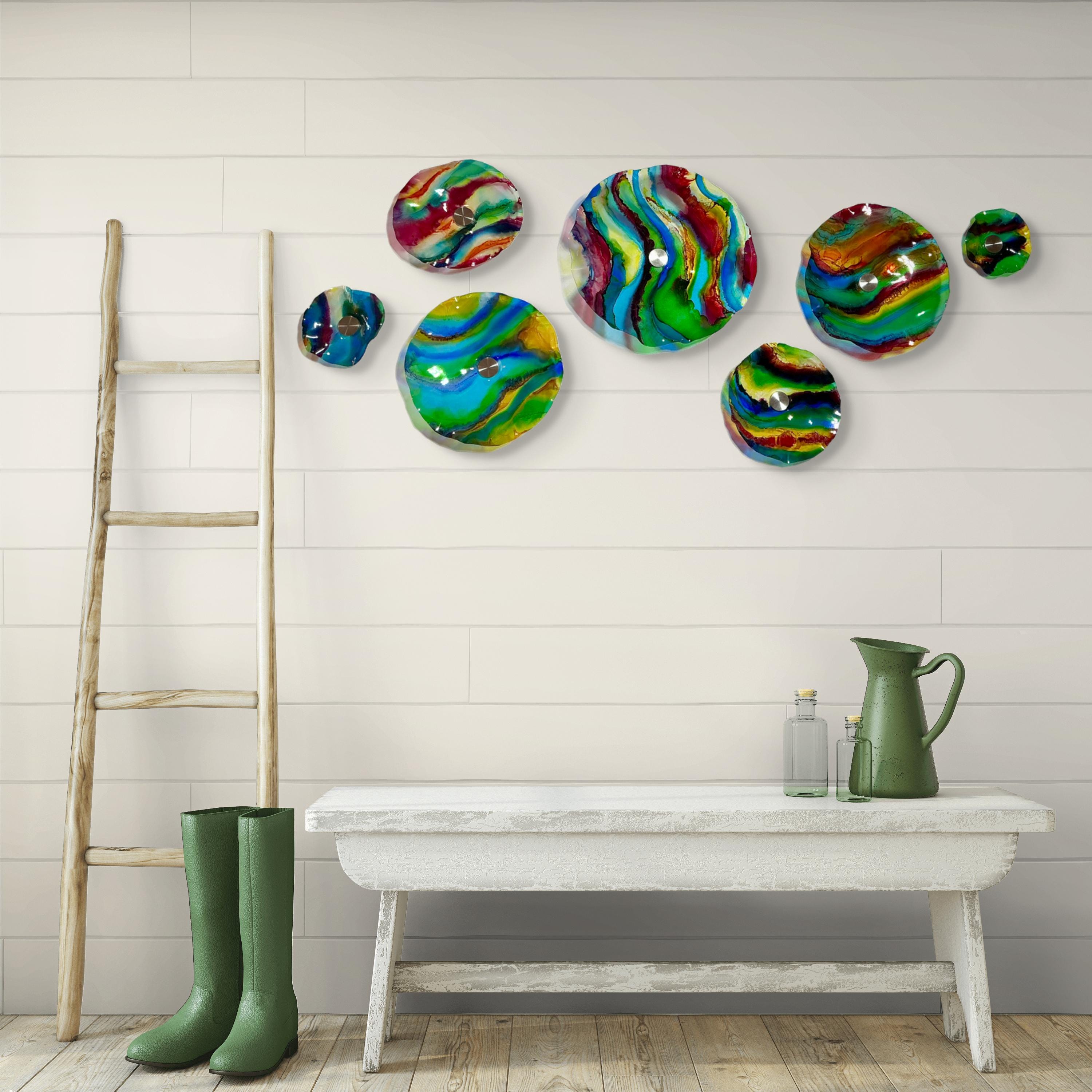 Transform your space with our vibrant, handmade wall art mural that looks like sea glass! Crafted from upcycled polymer materials, this eye-catching piece features 7 colorful segments that effortlessly enhance any home or commercial decor. Easy to hang, these striking designs bring a fresh vibe to your walls. Perfect for adding a unique touch to your living room, office, or storefront. Elevate your decor with this sustainable and stunning artwork today!