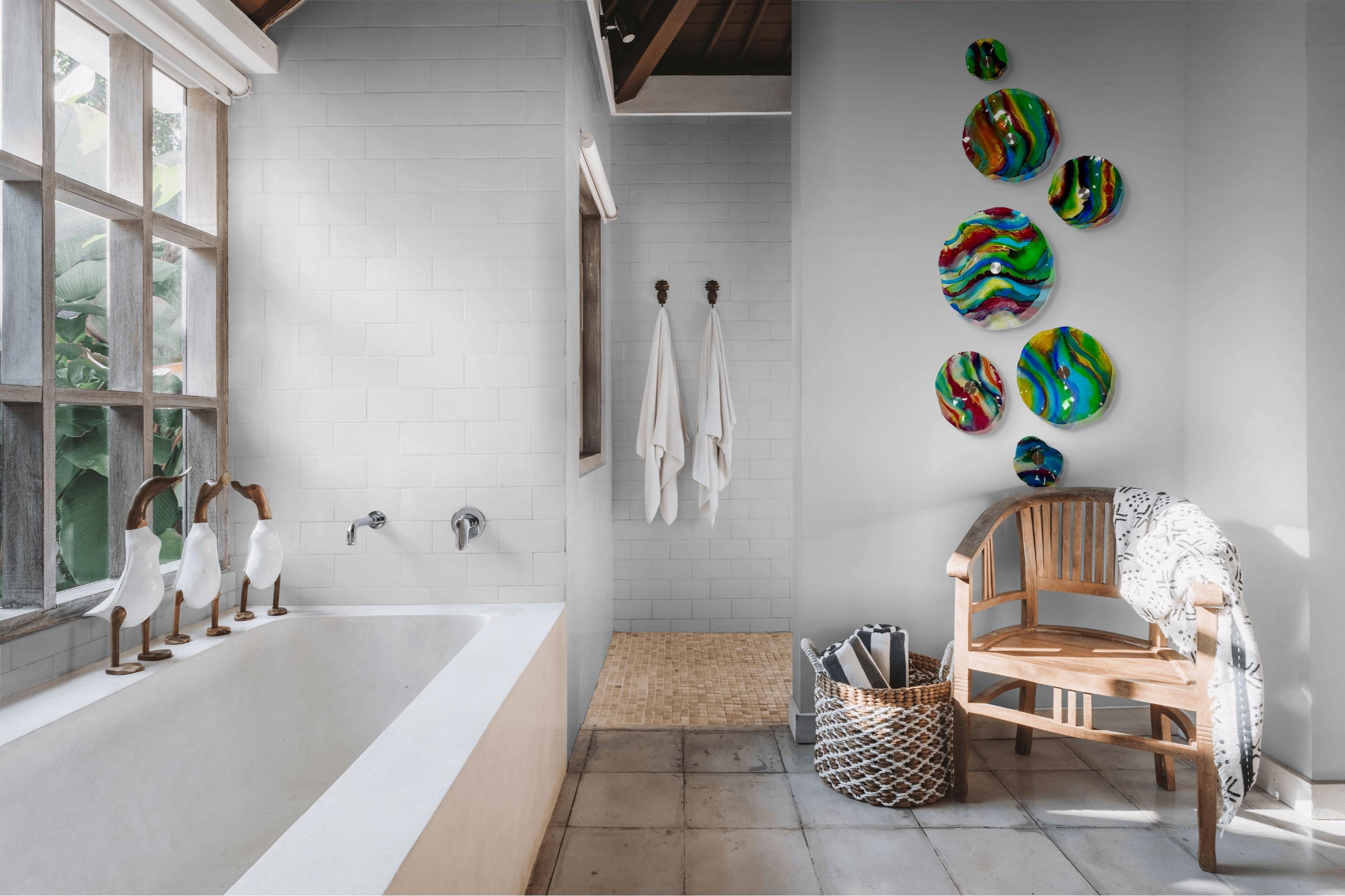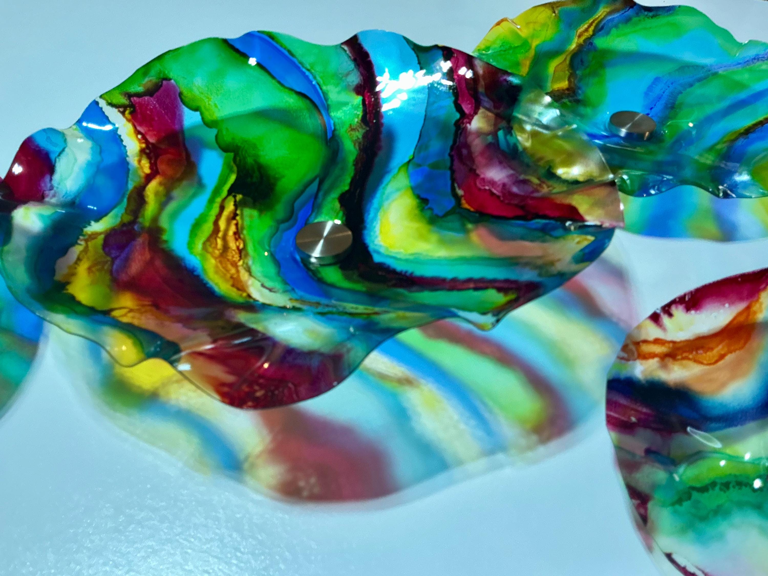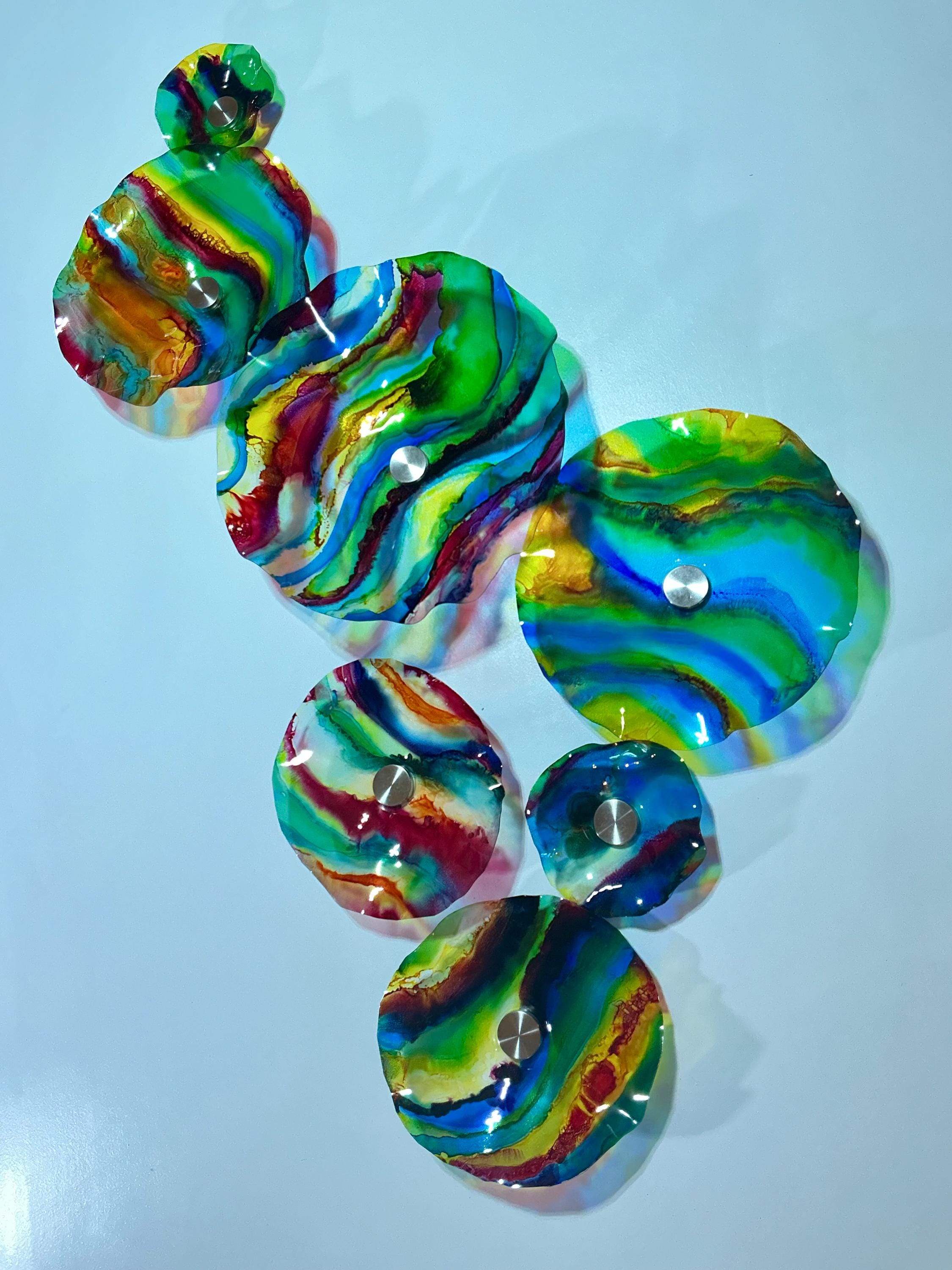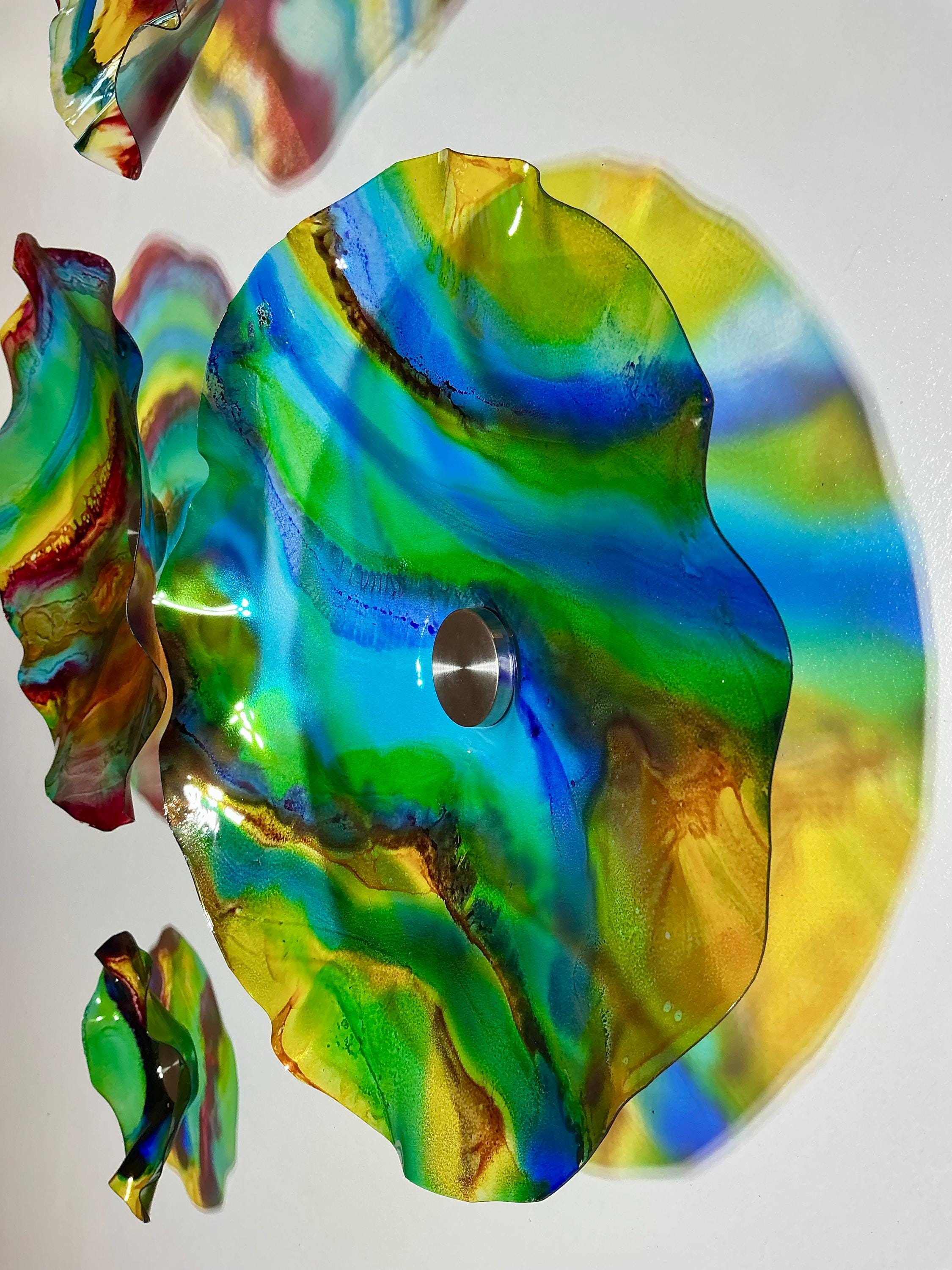 Transform your space with our vibrant, handmade wall art mural that looks like sea glass! Crafted from upcycled polymer materials, this eye-catching piece features 7 colorful segments that effortlessly enhance any home or commercial decor. Easy to hang, these striking designs bring a fresh vibe to your walls. Perfect for adding a unique touch to your living room, office, or storefront. Elevate your decor with this sustainable and stunning artwork today!