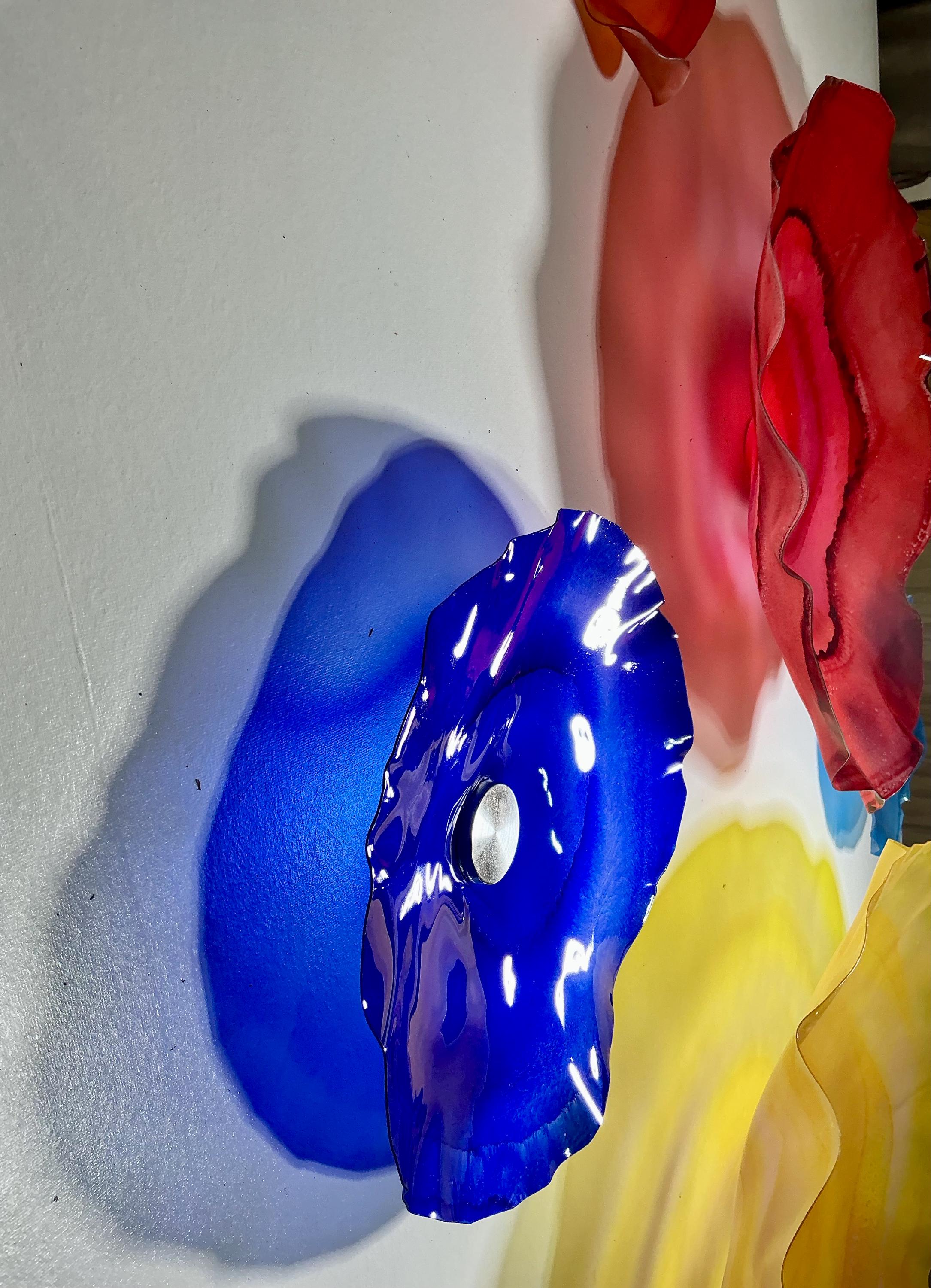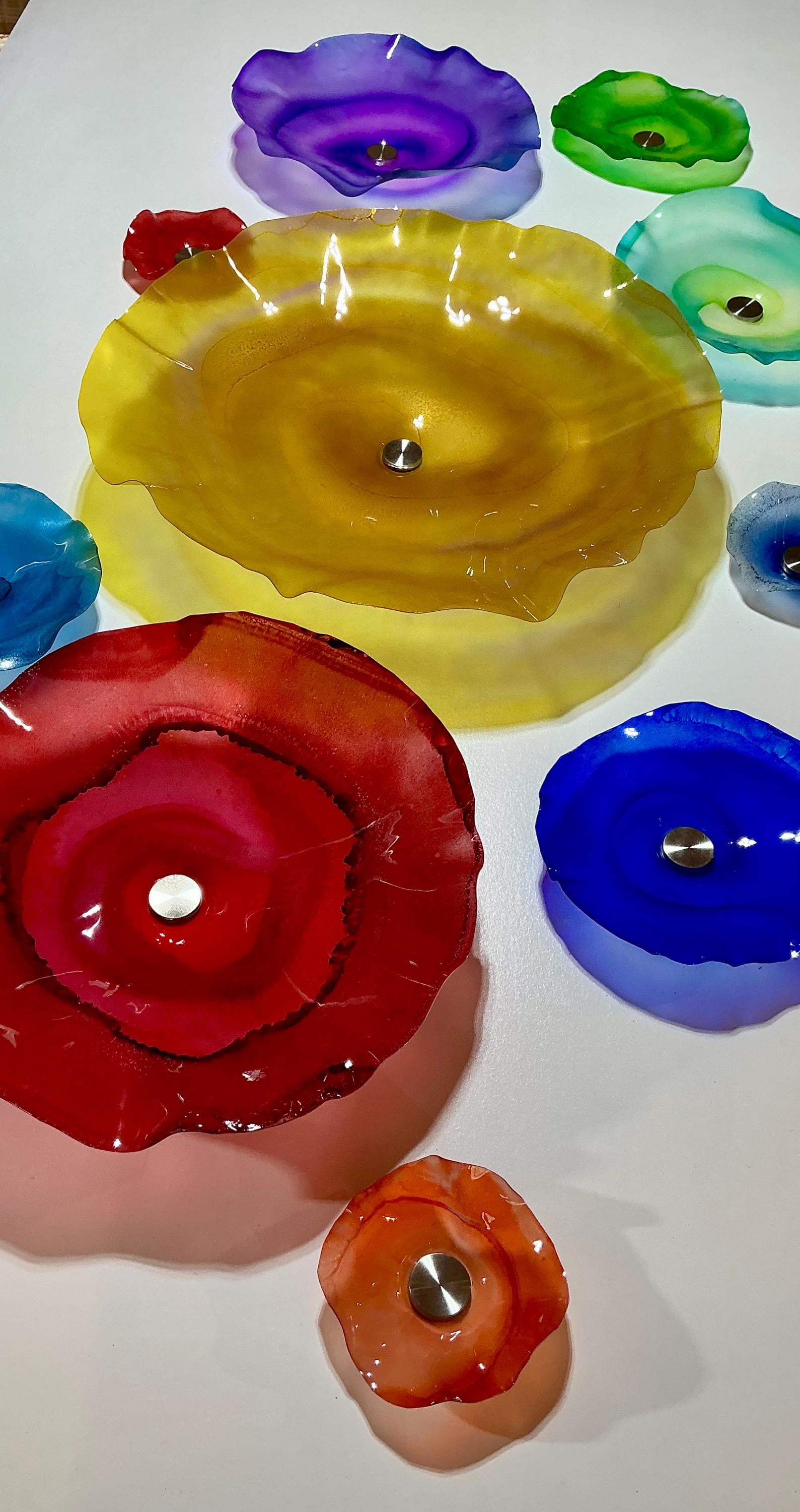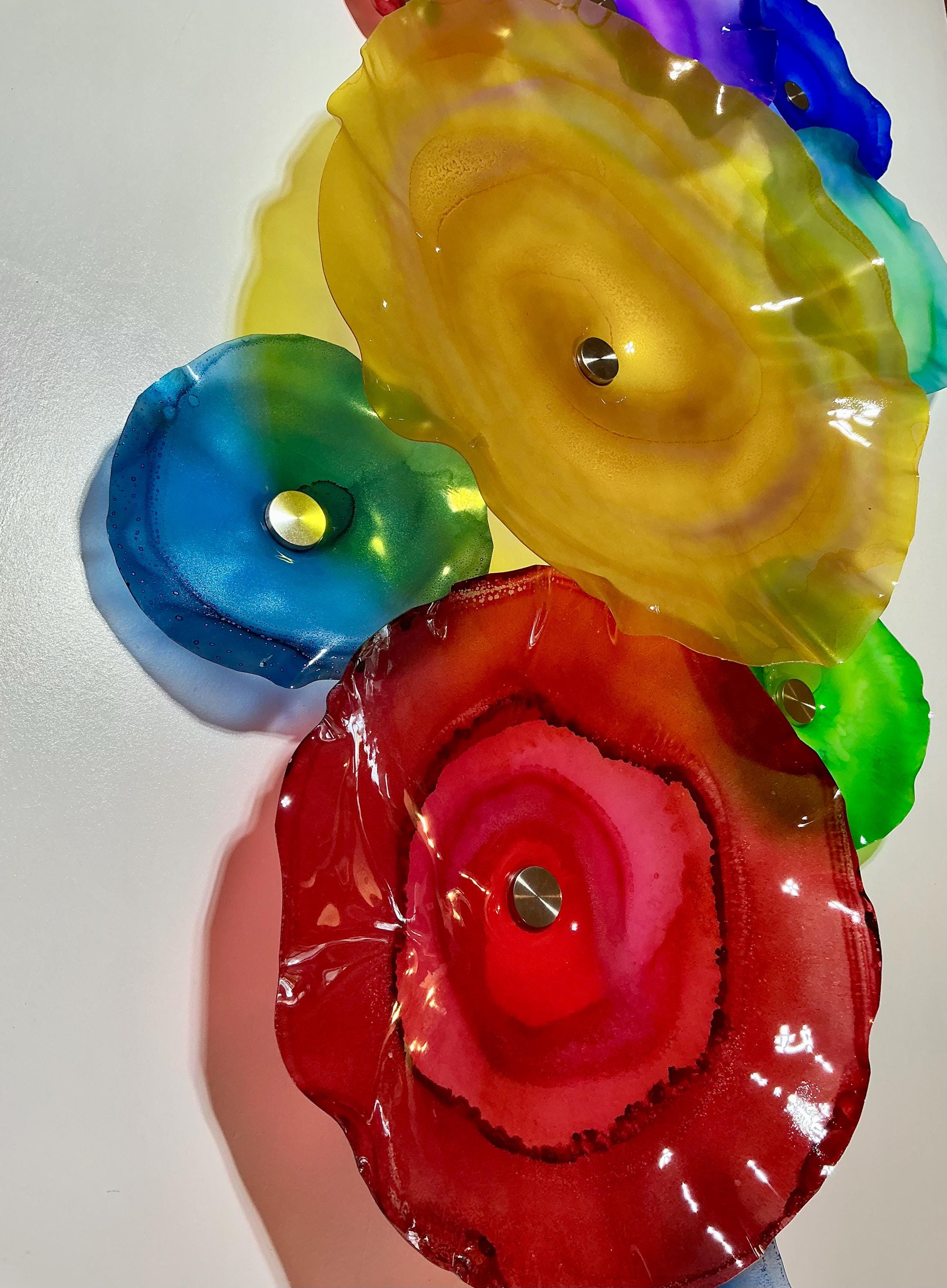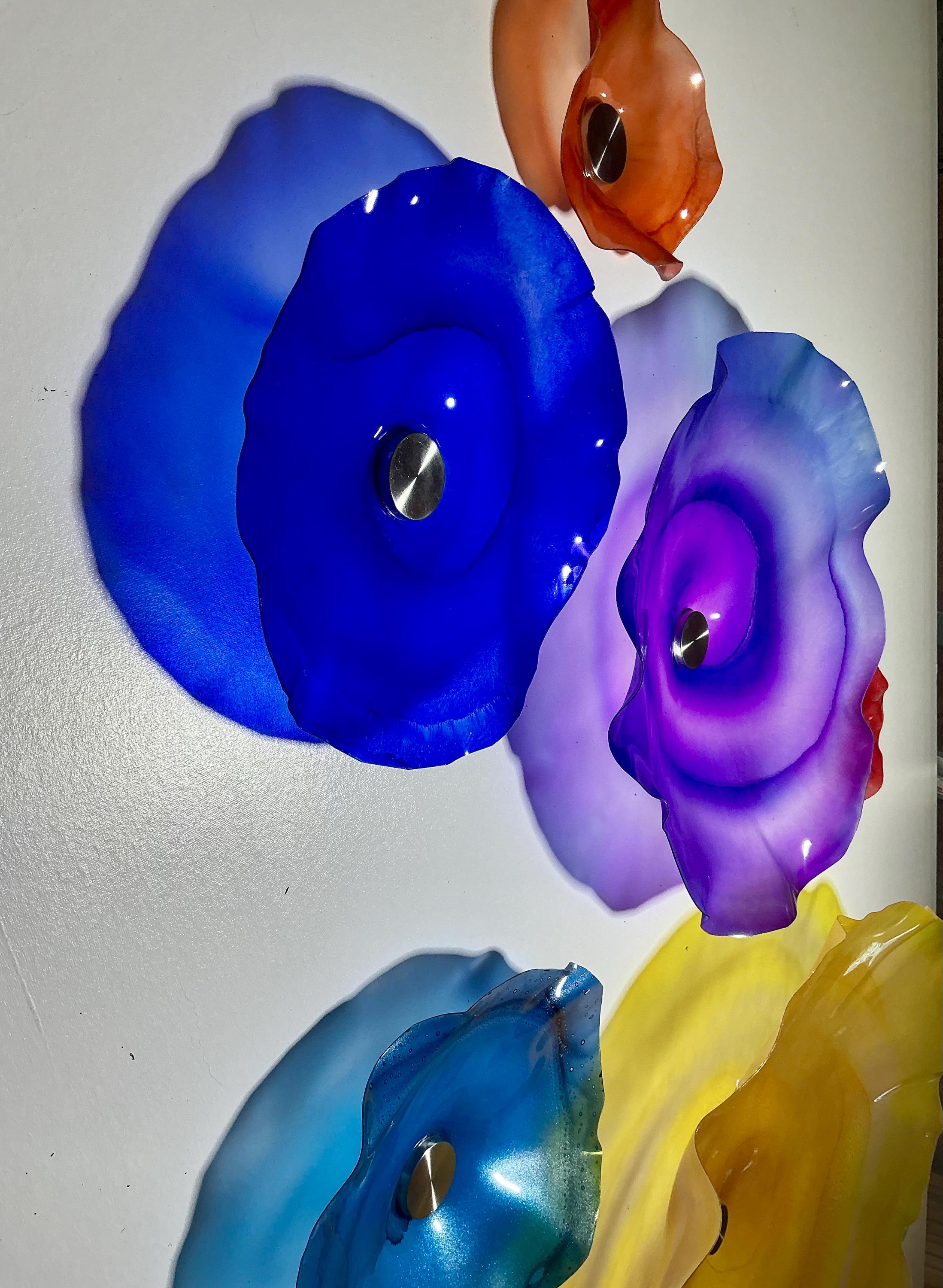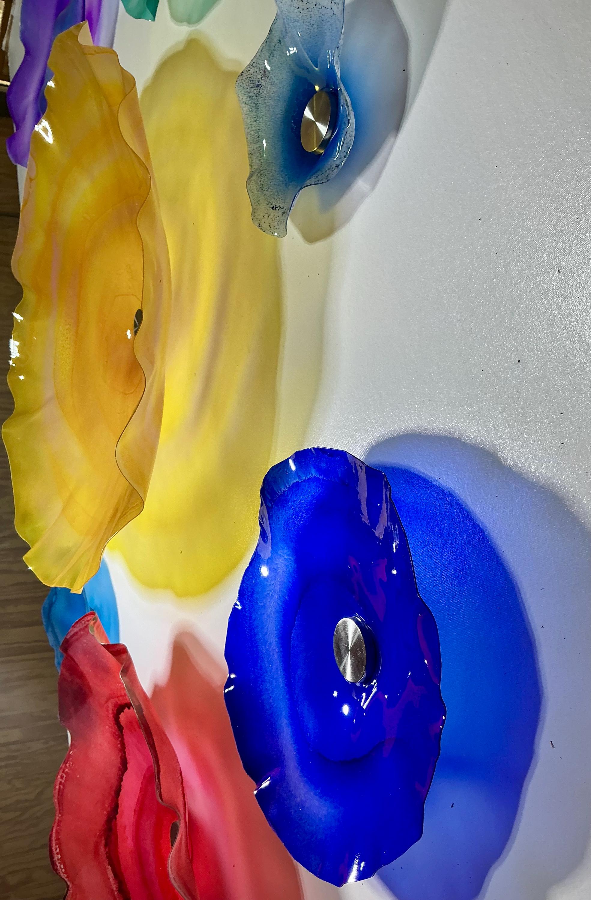 Created by professional artist Todd Lynd, each flower is carefully formed using high heat to fold color into clear recycled material—resulting in vibrant, eye-catching art that truly stands out.
