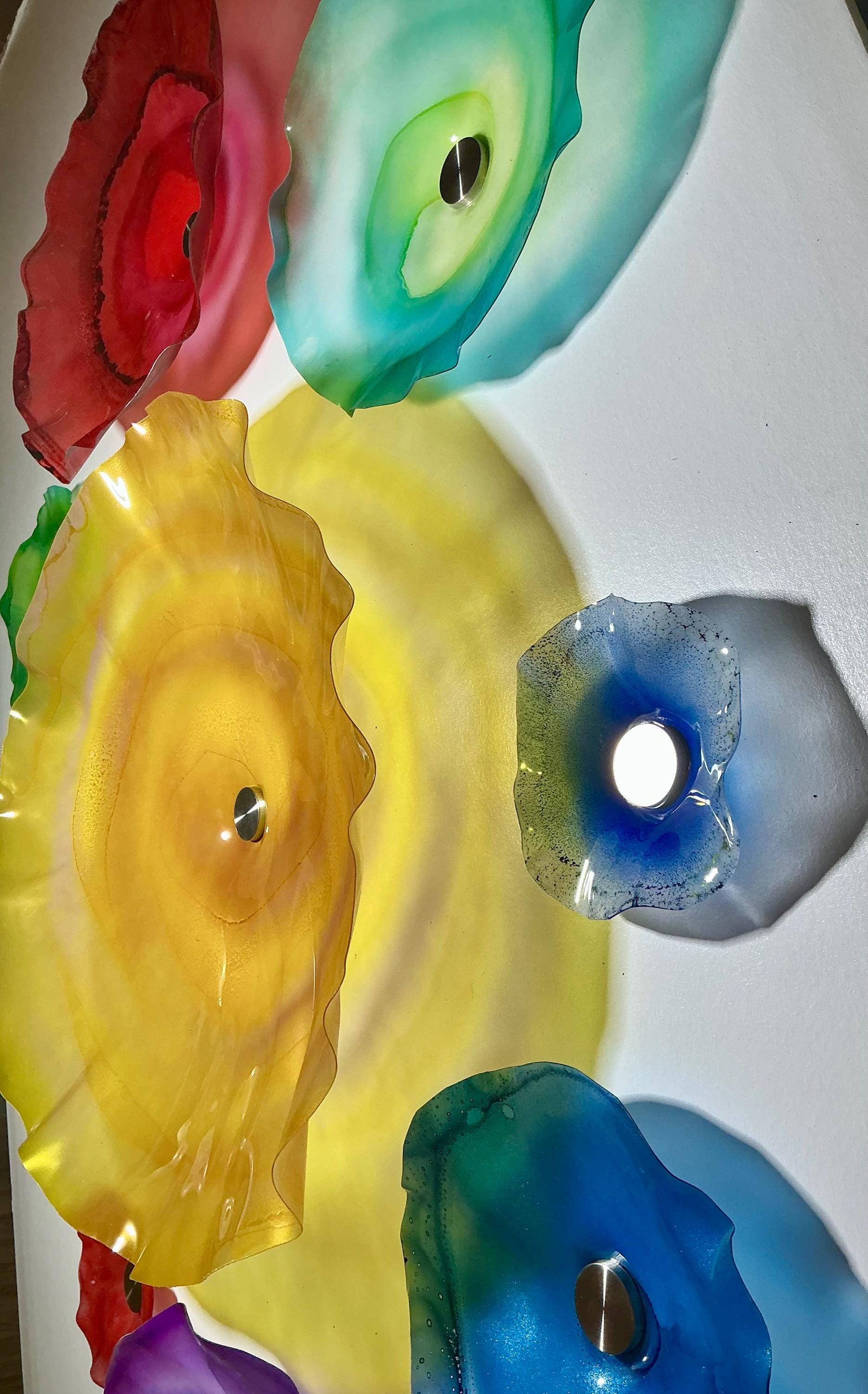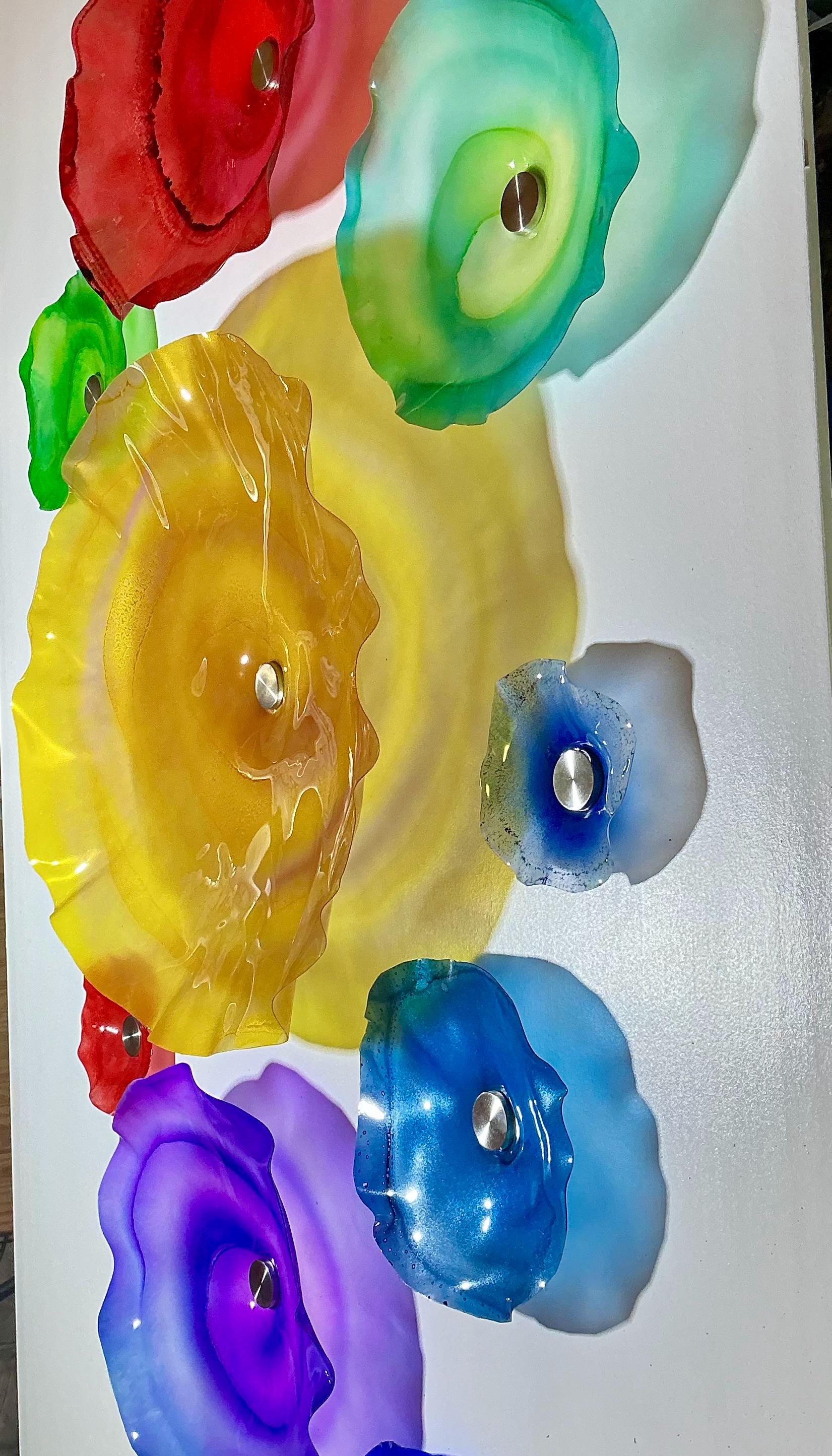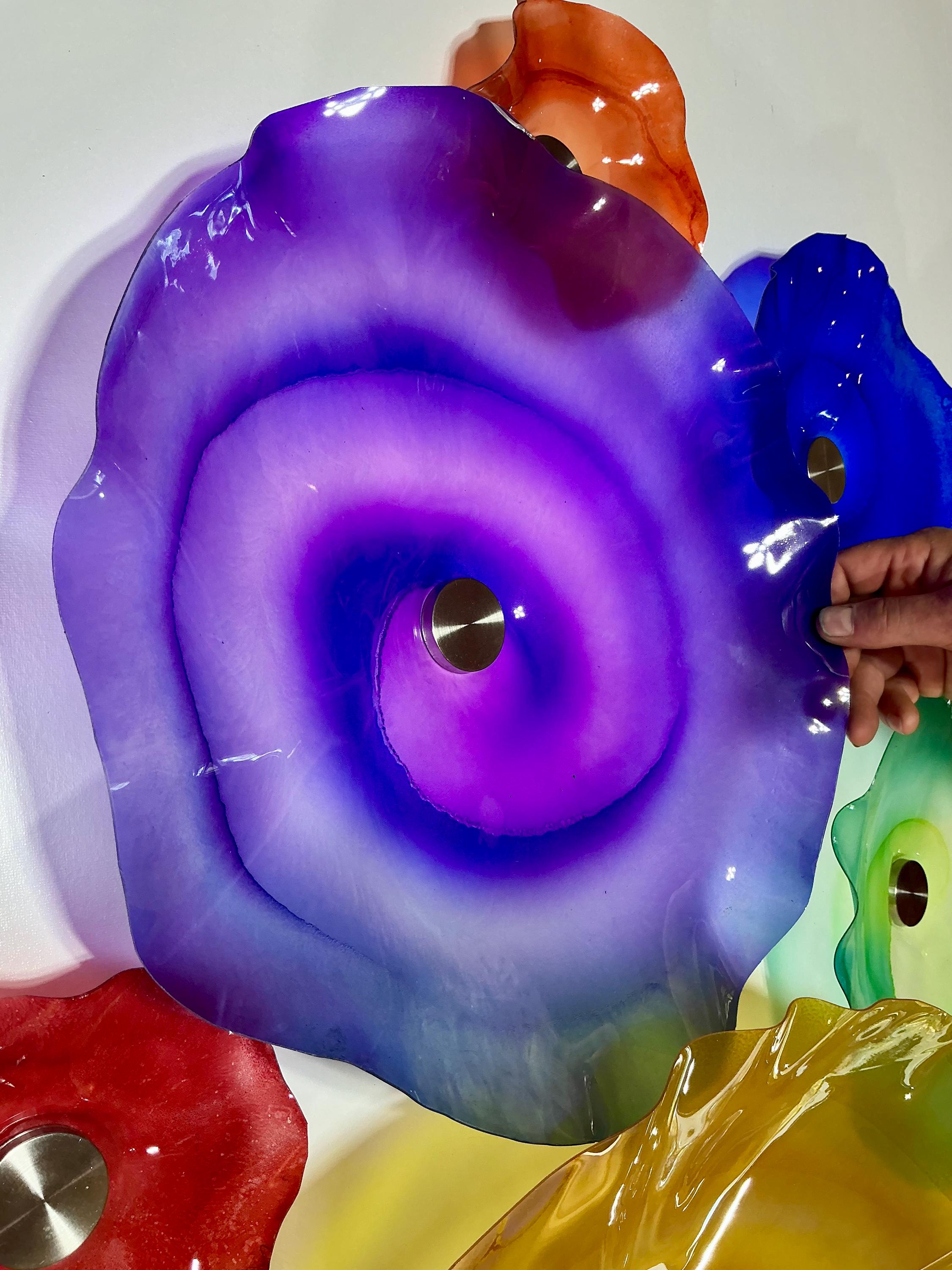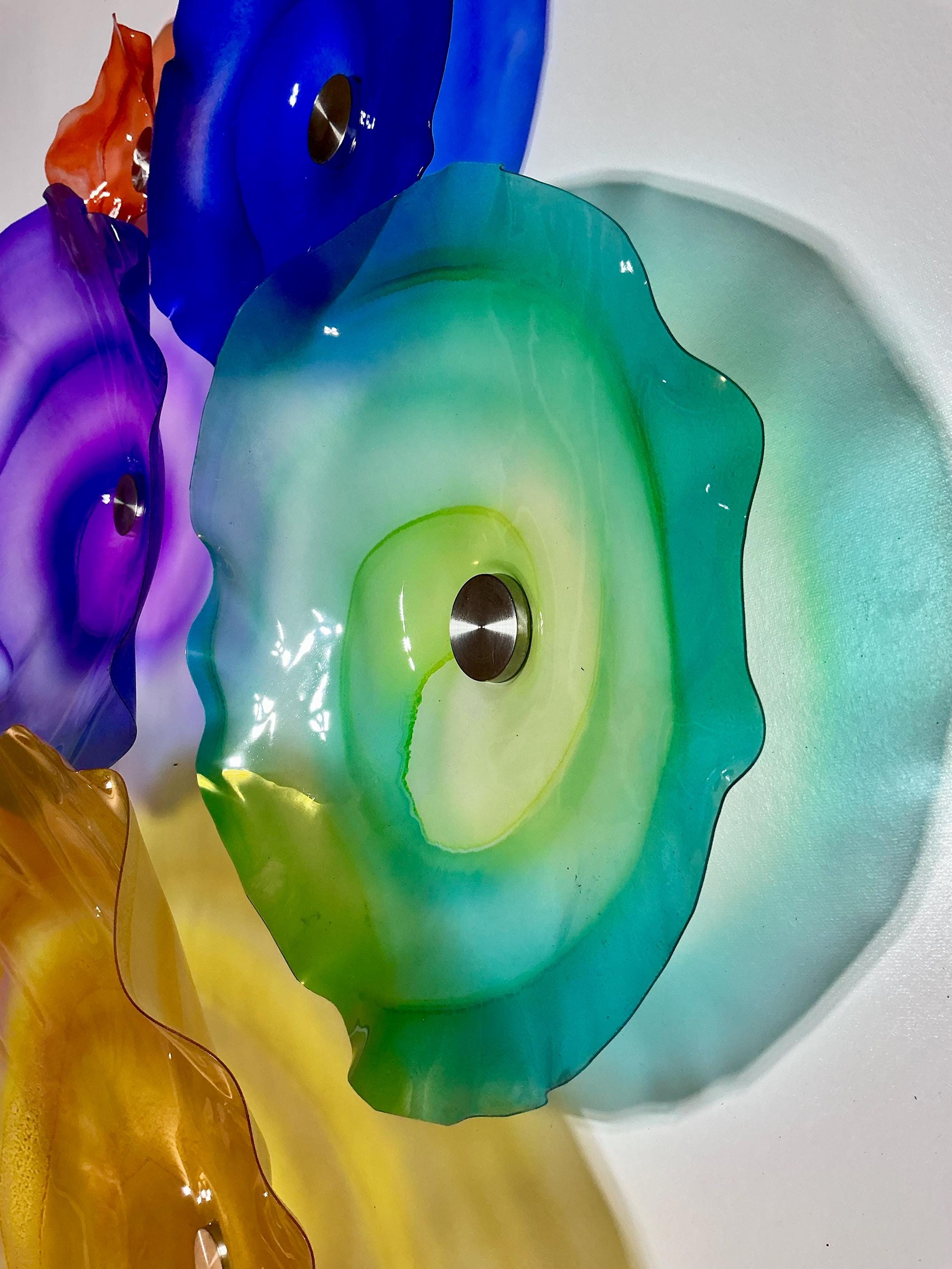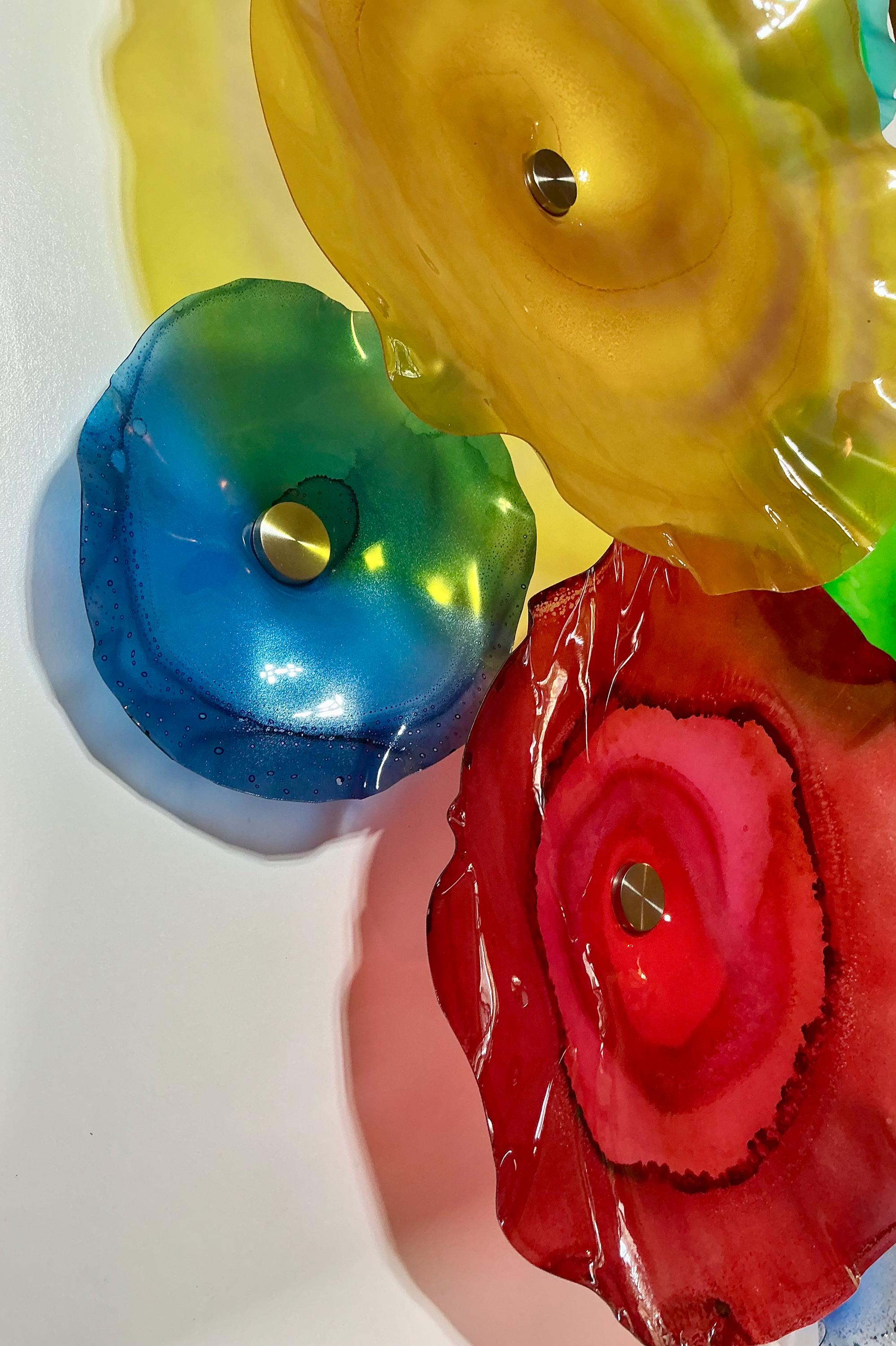 Created by professional artist Todd Lynd, each flower is carefully formed using high heat to fold color into clear recycled material—resulting in vibrant, eye-catching art that truly stands out.