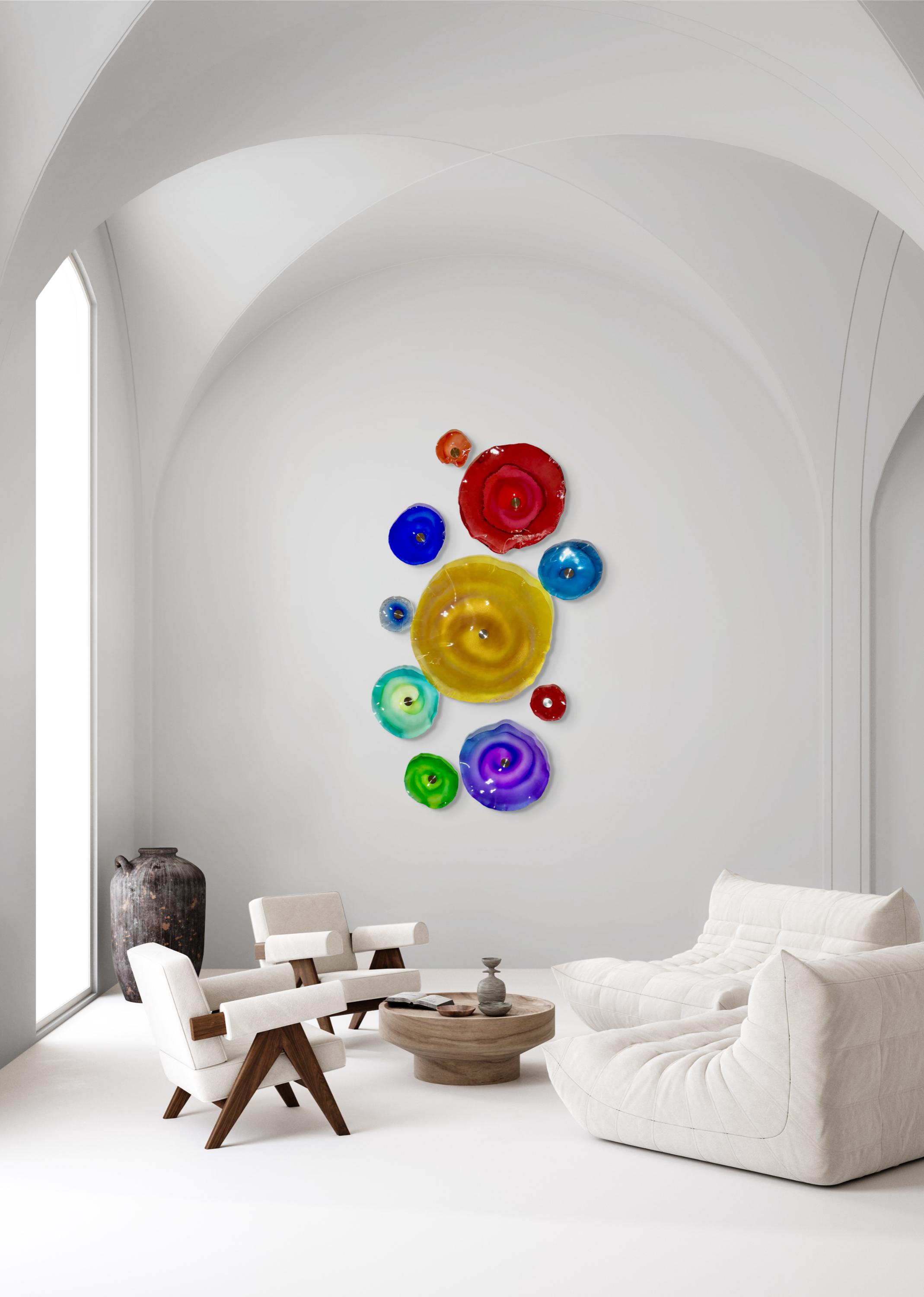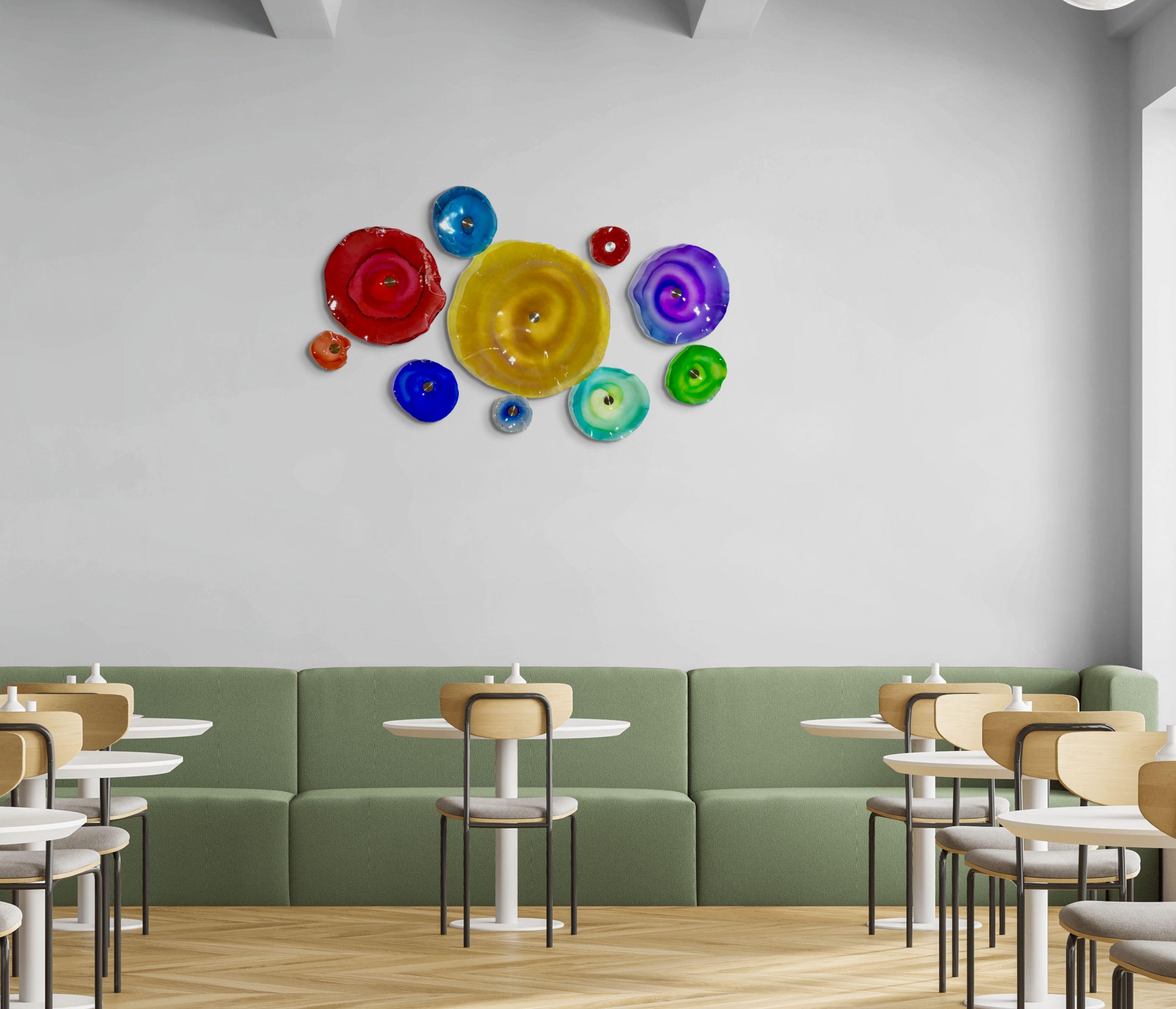 Transform your space with our vibrant, handmade wall art mural that looks like sea glass! Crafted from upcycled polymer materials, this eye-catching piece features 10 colorful segments that effortlessly enhance any home or commercial decor. Easy to hang, these striking designs bring a fresh coastal vibe to your walls. Perfect for adding a unique touch to your living room, office, or storefront. Elevate your decor with this sustainable and stunning artwork today!
